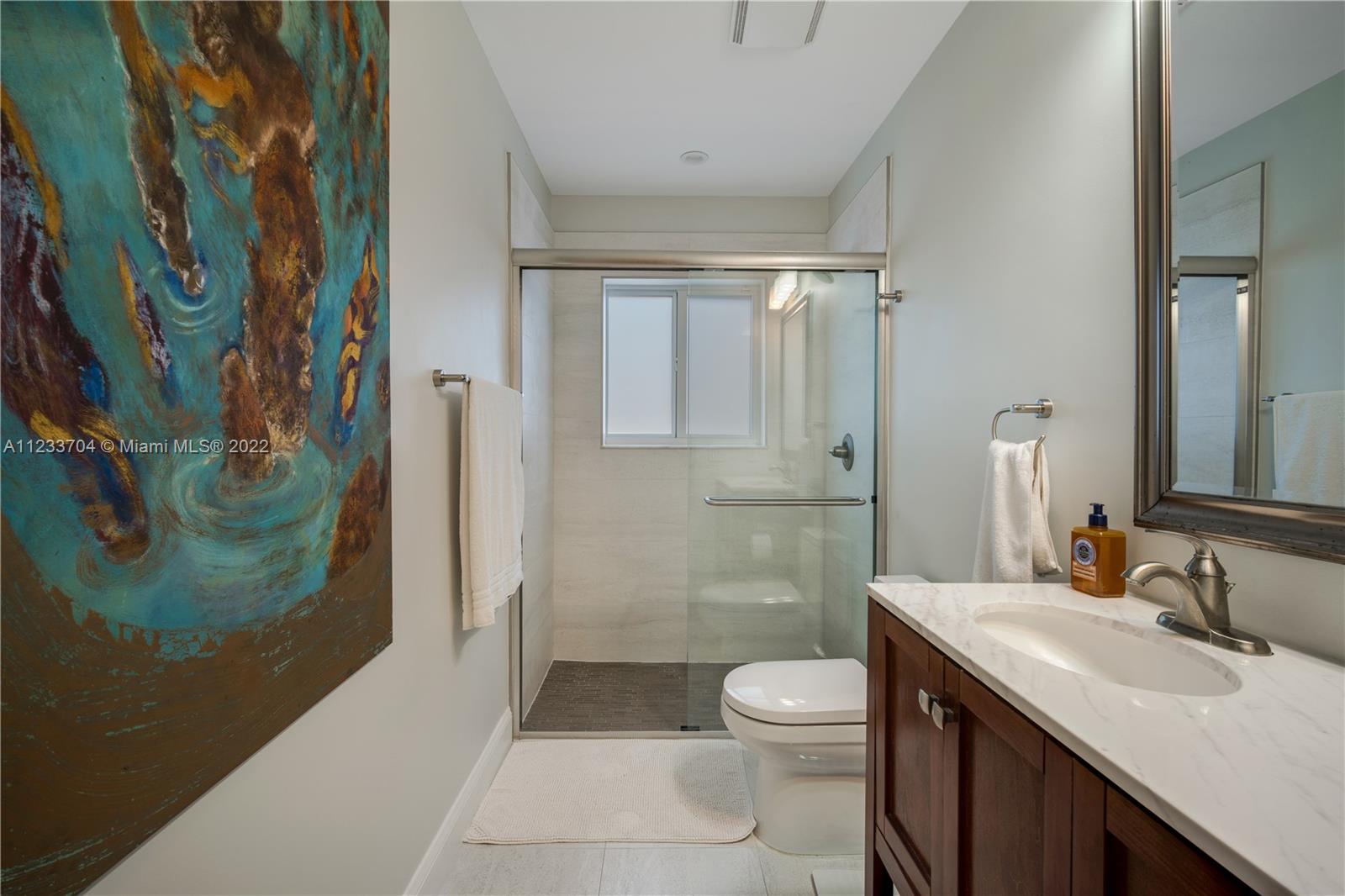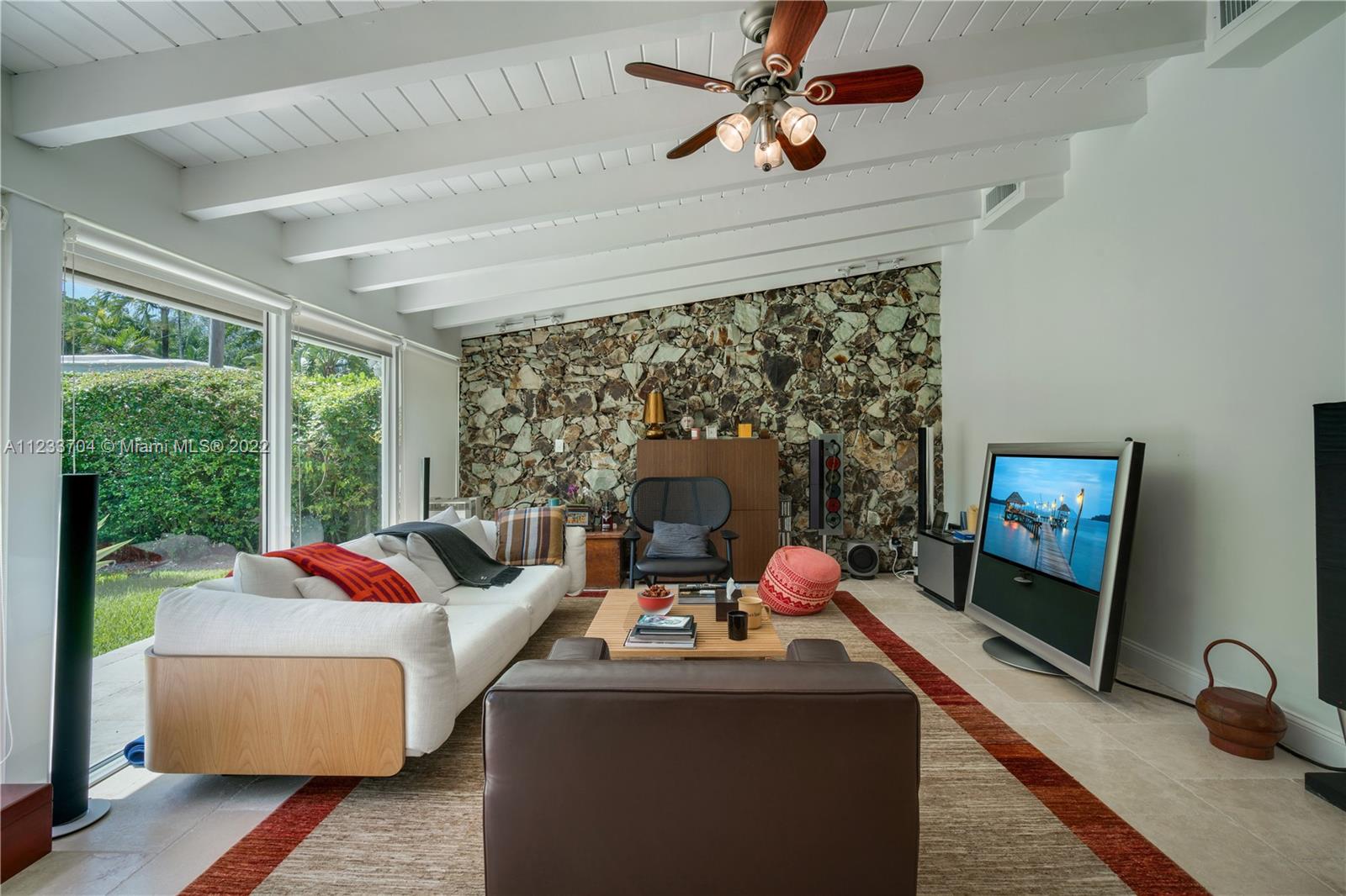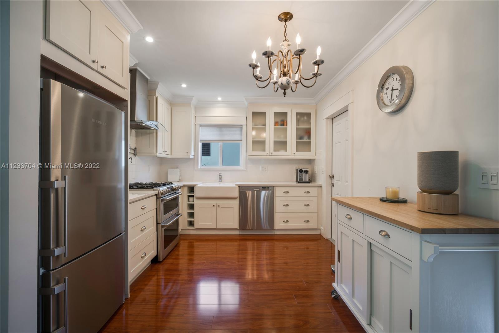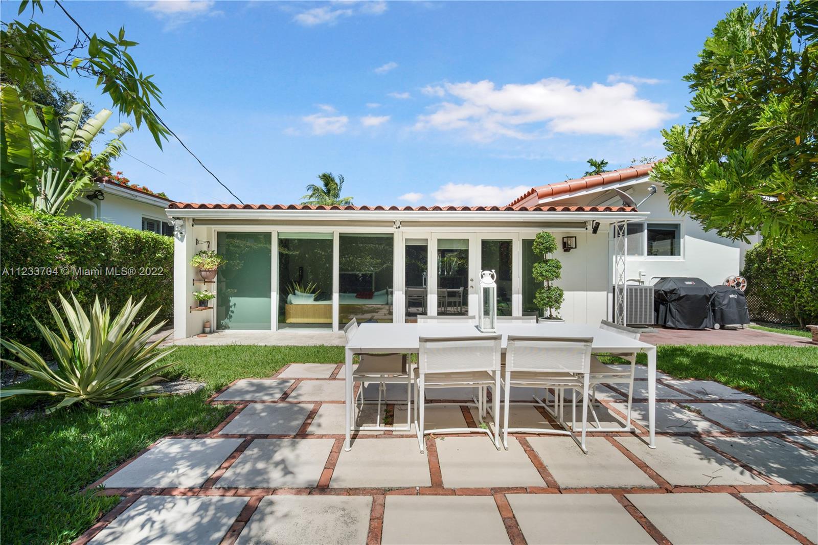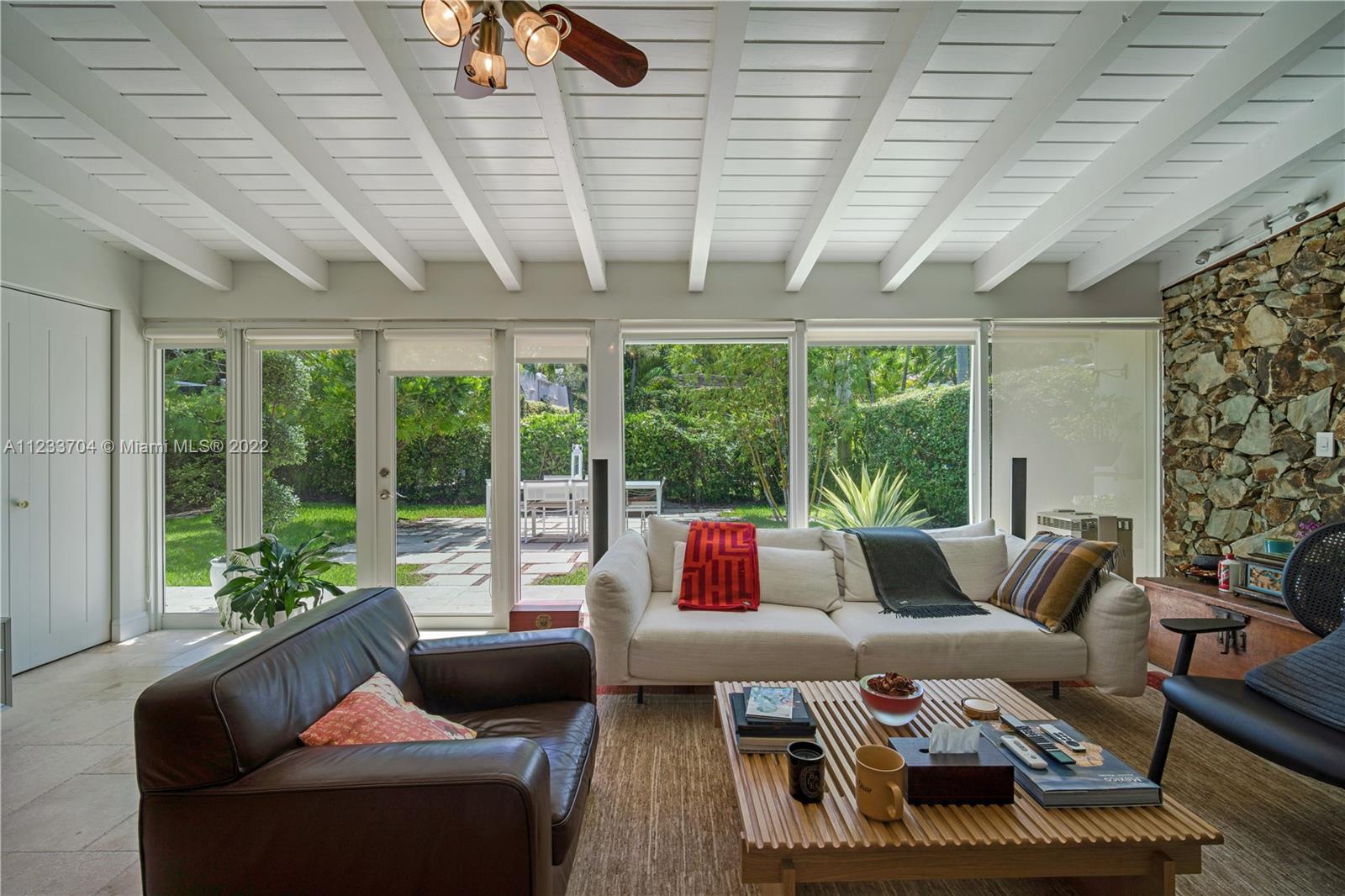 Gorgeous 2 bed, 2 full bath house located in North Coral Gables has been completely remodeled w/ the most exquisite touches. The kitchen comes equipped w/ stainless steel appliances. Elegant wood floor flows throughout the main living areas & bedrooms. The stone patio creates an elegant addition & requires very low maintenance since it is designed w/ fewer grassy areas to care for. Some other great features of this home are the hurricane impact windows, alarm, security camera & a 1 car garage, a true Florida Room ideal for entertaining.