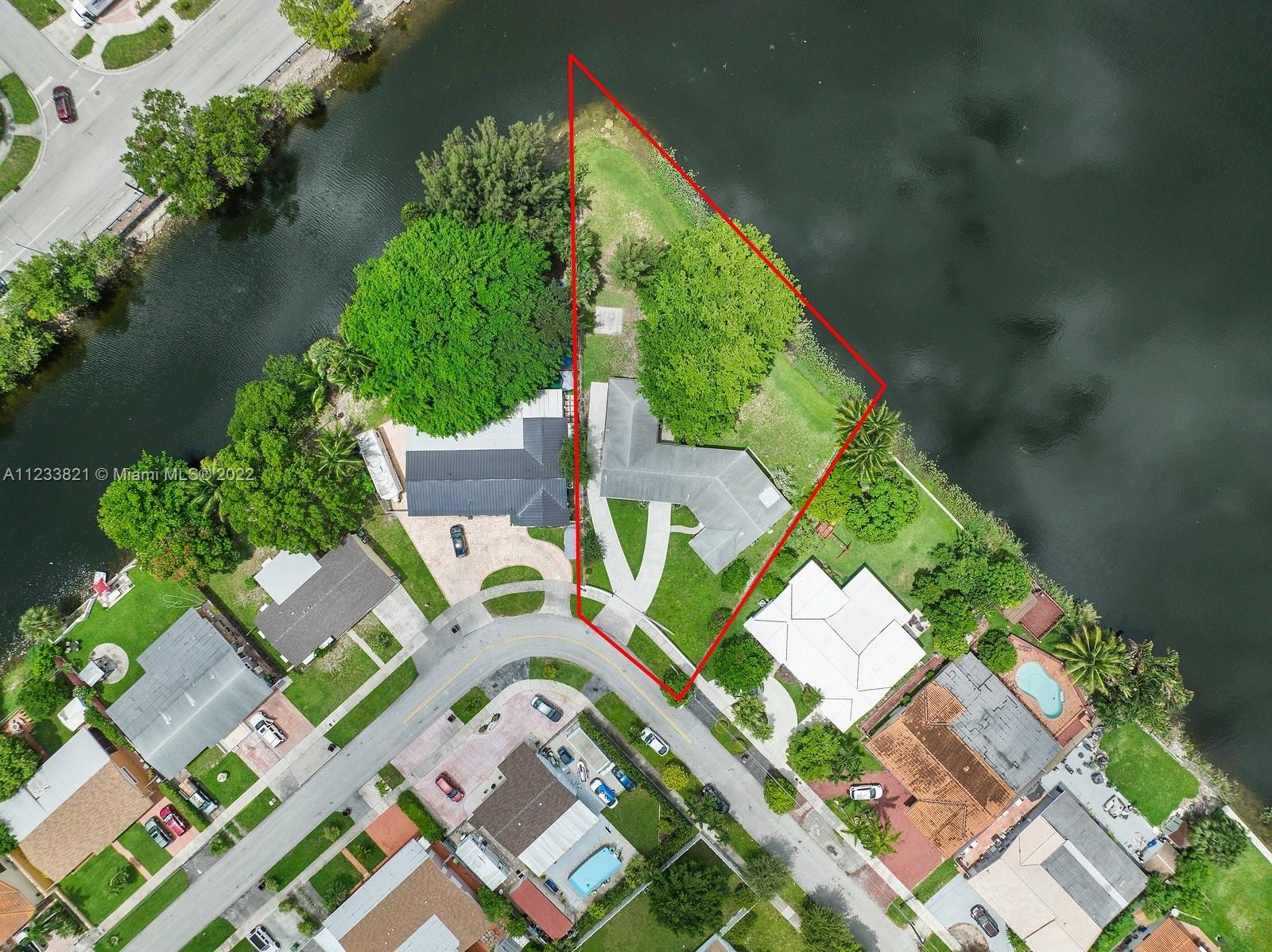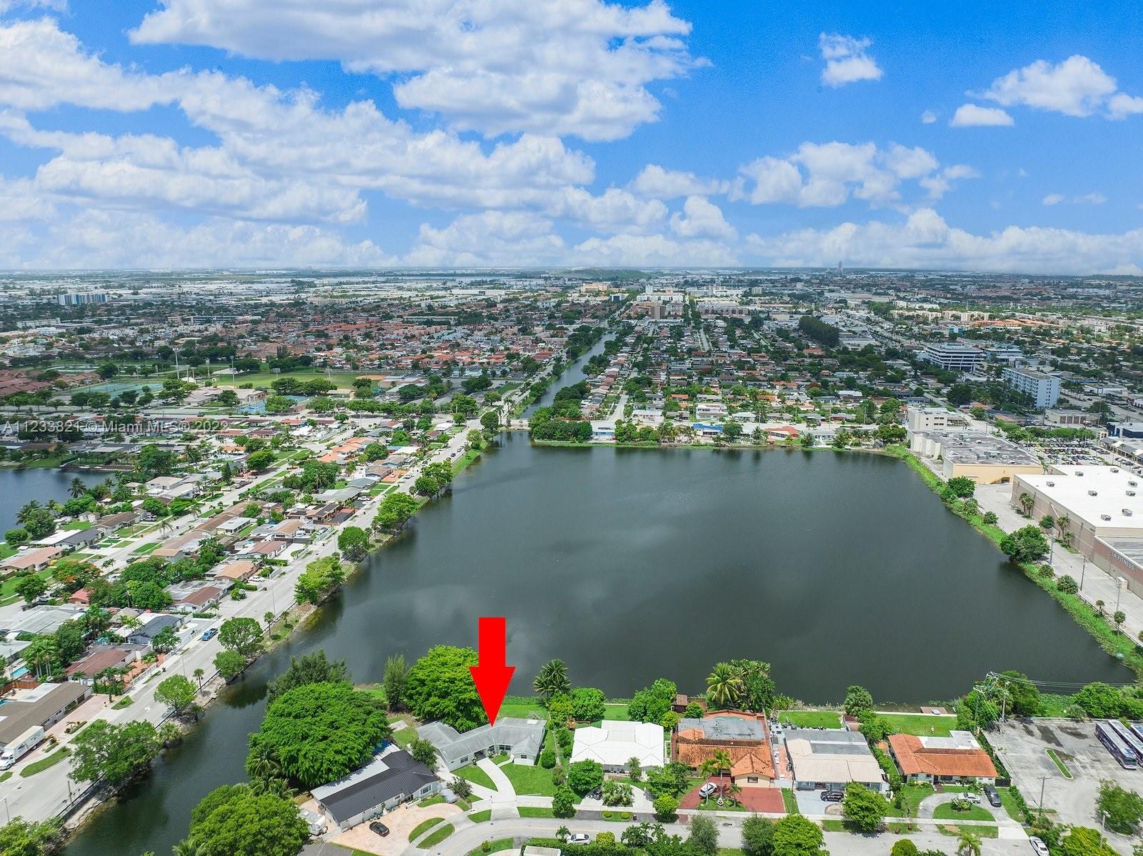 Incredibly rare lakefront home on oversized corner lot totaling nearly 16,000 ft. The main residence consists of a two bedroom and two bathroom mid century design with expansive views of the lake to take advantage of the stunning sunsets. For added privacy, there is a separate guest quarter with and additional 2 bedrooms and 1 bathroom. This property has great expansion and development possibilities. It is centrally located in the heart of Hialeah and just minutes from the 49th St commercial district and main highways. Please note the property is only sold AS-IS.