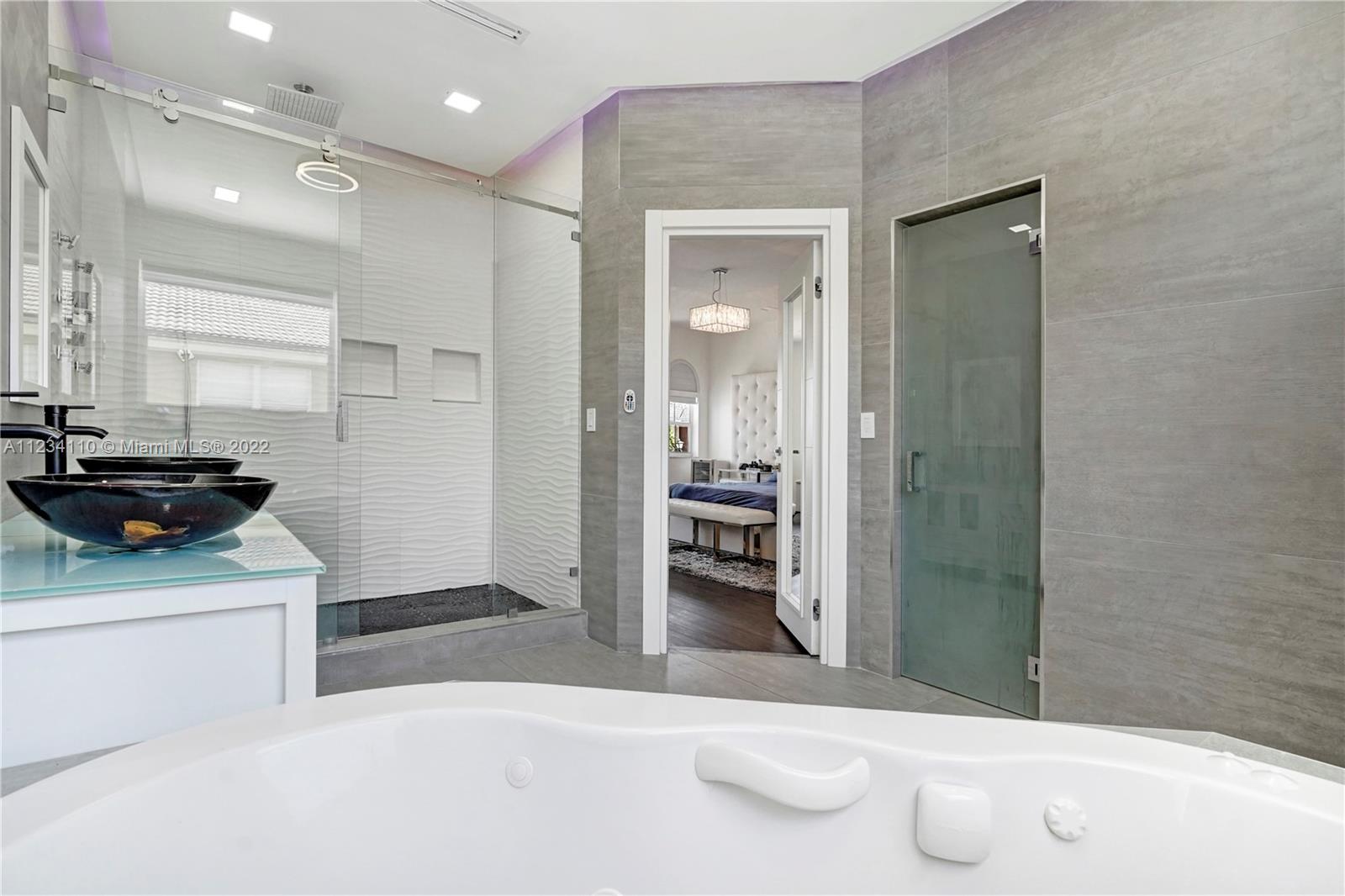 Gorgeous & fully renovated smart home in the sought-after gated community of Mapleridge! When you step into this home you truly feel like your on a vacation, with a built in wet bar, open concept chefs kitchen with two sinks, induction cooktop, wall oven/ microwave. This home is an entertainers paradise, with beautiful glass bannisters leading upstairs and custom zebra shades throughout the house! Boasting 3 bedrooms, 3 full bathrooms plus a bonus room with a en-suite bathroom that can be used as you see fit! Ample closet space in every room and through out the house! Outside features a custom made pergola and fish pond perfect for a backyard party! All doors are Italian solid wood, new Italian porcelain flooring, new tankless water heater, new gutter system, security system. A MUST SEE!!!