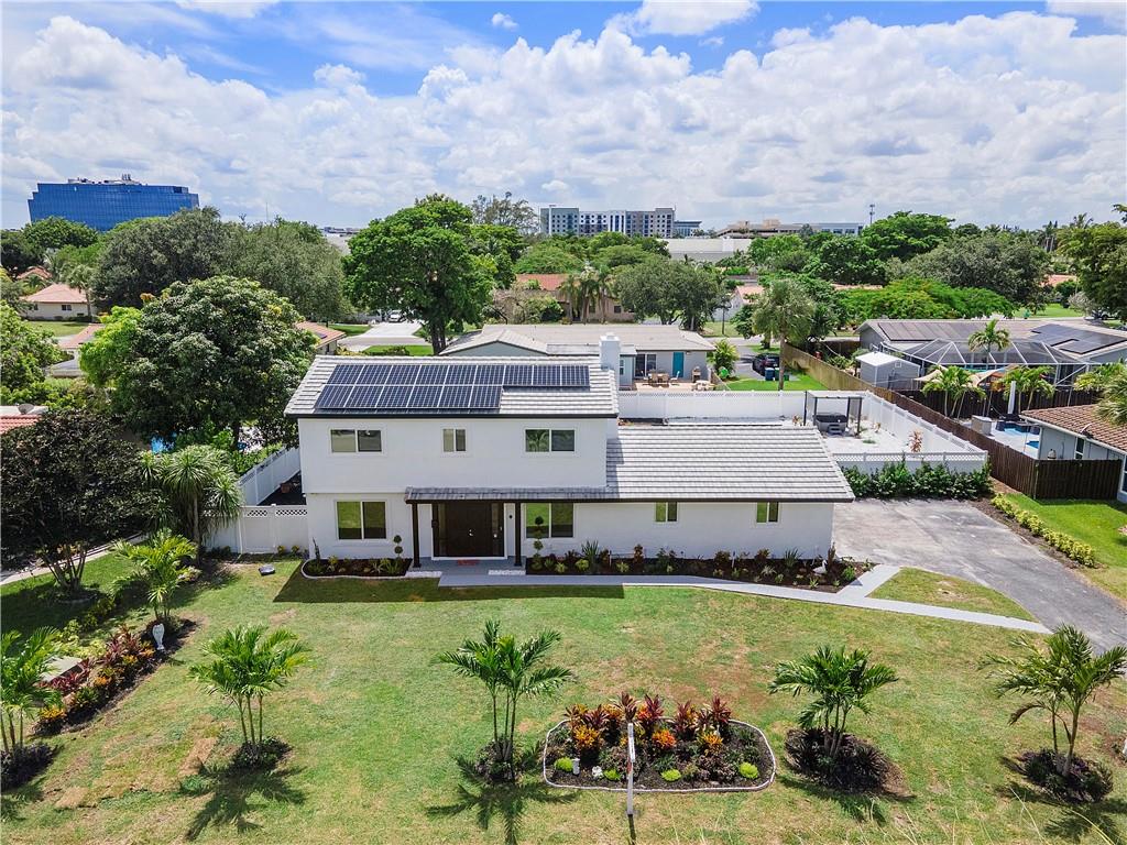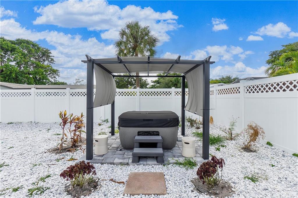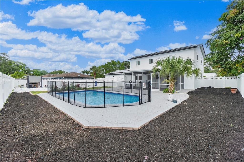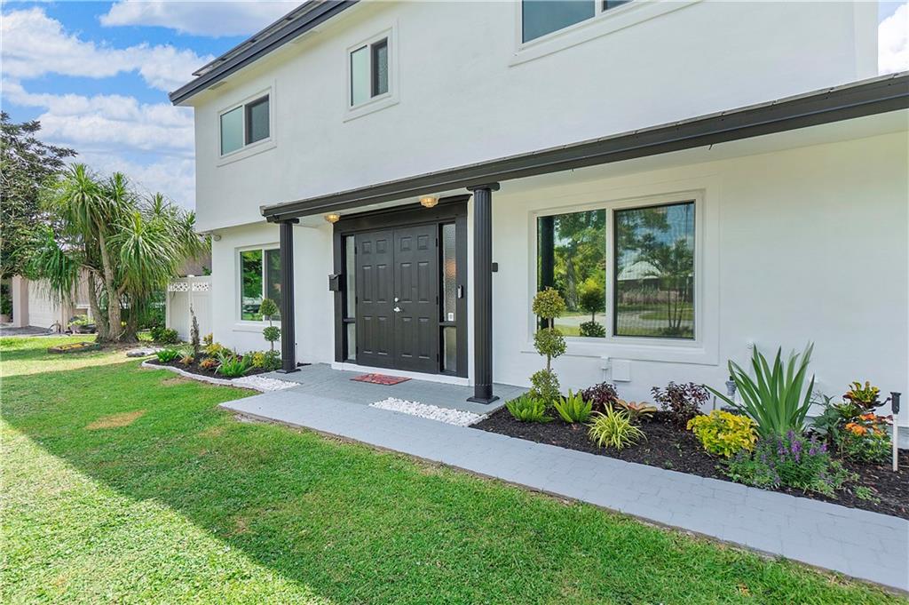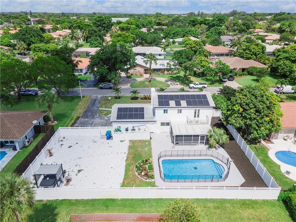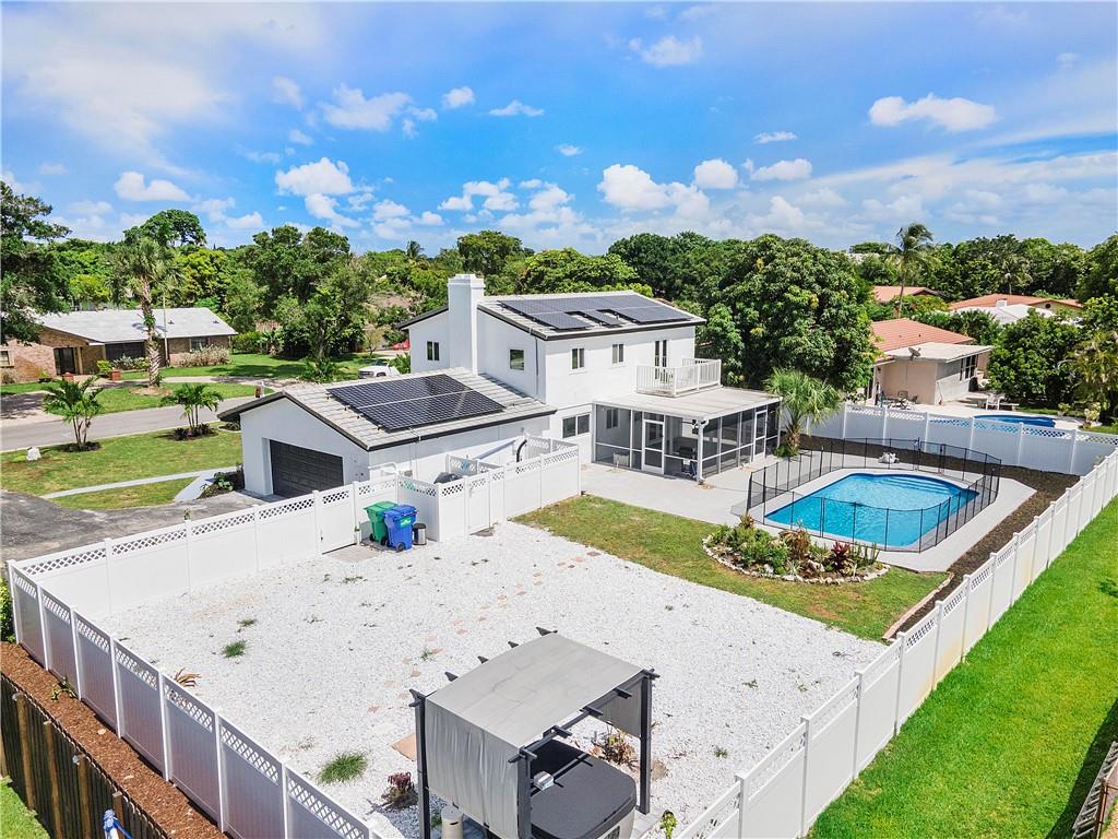 Welcome to a modern redesign in Village Green! This spacious property boasts: freshly painted exterior & new landscaping, New Roof (2021), New impact windows/doors, New solar panels (2022), New A/C, New PVC Fence w/4 gates & storage. Tropical & low maintenance back yard complete w/private outdoor pool shower, pool safety fence, New Hawaiian blue pool surface w/salt-water system, pergola w/brand New hot tub! New spray foam insulation in attic, New water heater, new top of the line high efficiency LG washer/dryer w/self-adjust timing. Top of the line Magic Glass hurricane windows that provide insulation, protection from storms & security. All windows are double tinted for energy conservation and privacy. NO hoa! Walk to CS Charter School & NW Regional library 1 block away.