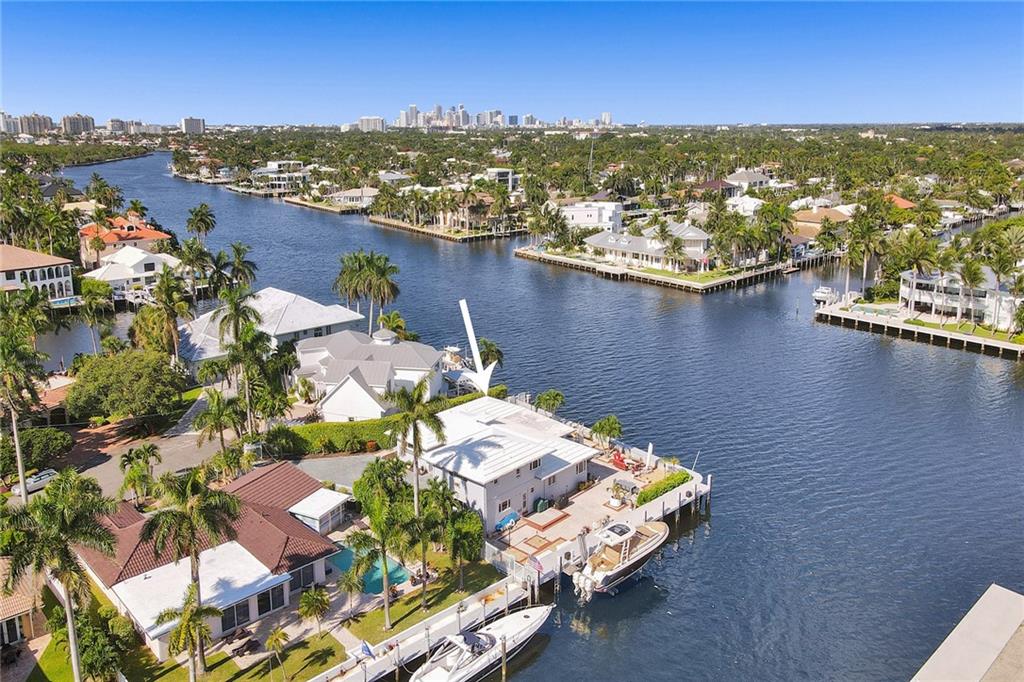 This amazing point lot has over 200 feet of waterfront with 100+ on the intracoastal. Brand new seawall upgraded to existing standards surrounds the property and includes a 27,000 pound boatlift. Existing Three bedroom, 4 bath home is lovely with a mid century design and gorgeous Ketchum/Cuban tile floors, recently updated with fresh paint and modern lighting. Completely renovated guest suite includes one bedroom /one bath above the garage, two bedrooms and two baths in the existing house. Ready for your custom designed home or live in the existing charming home. Amazing views, amazing potential!
