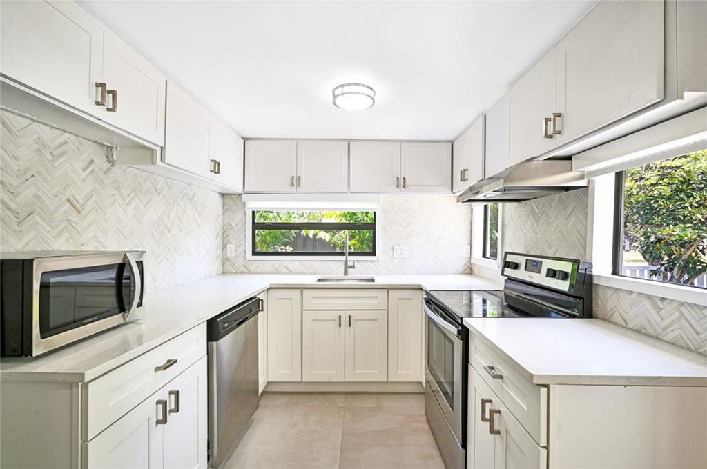 Fully updated 2/1 home located on a corner lot in highly desirable Pompano Beach! Features include an open floor plan w/oversized bedrooms; new modern kitchen w/quartz countertops, stainless steel appliances, & porcelain tile flooring; new bathroom; new washer & dryer, impact windows & doors, custom window shades, interior & exterior lighting, tankless water heater, & electrical panels; Miami-Dade pine wood floors; private fenced yard w/new sod & lush landscaping. Walking distance to the up-and-coming Downtown Innovation District, Old Town Untapped, Pompano Green Market, Library, Bus stations, Parks, & Pompano Middle School. Easy access to Dixie, Atlantic, Federal Highway, & I-95. Located on a quiet street 2.5 mi from the beach & the newly redeveloped Pompano Pier! No Restrictions/HOA.