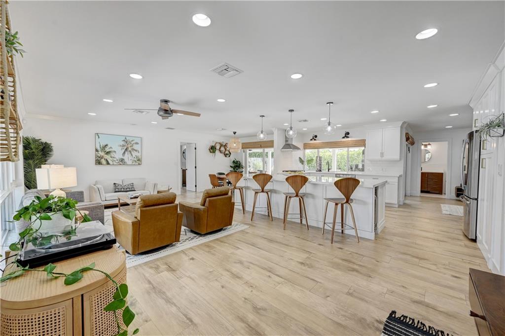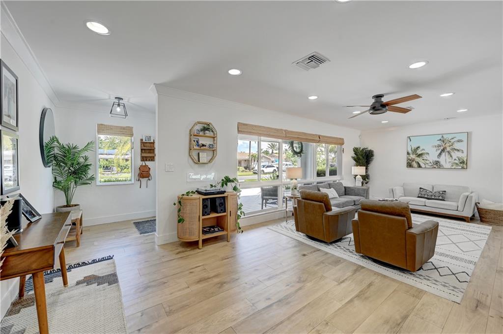 Immaculate and Fully renovated 4/2, with an oversized 2-car garage In East Fort Lauderdale, just a few mins from the ocean. This Mid-Mod & Contemp design flows perfectly out to the open patio and summer kitchen, which is overlooking the pool. The open layout, along with a true split floor plan, creates the perfect balance of entertaining and practical function. Features include: Custom Kitchen, Impact windows/doors, Custom bathrooms, Porcelain tile throughout, AC and Duct Work 2018, Roof 2013, All updated electric, updated trim, solid interior doors, crown molding. Custom built outdoor kitchen with almost 400Sq.ft of covered patio, Newly built in 2018 salt water and heated pool w/hot tub, New travertine, New paver driveway, and much more..