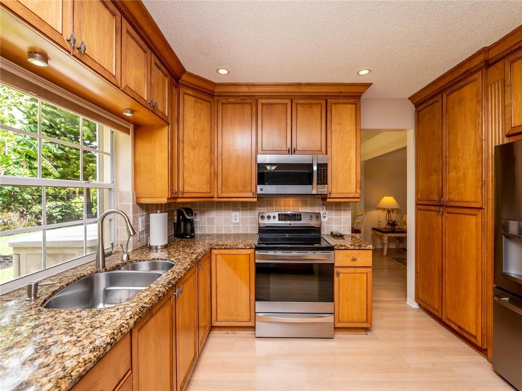 Beautifully maintained 2 story home located guard gated community The Preserve. Community known for its tranquil nature preserves. Popular York model features Grand foyer entrance with volume ceilings & custom built-ins. Formal living & dining room & separate family room. COMPLETELY UPDATED kitchen custom wood cabinetry, granite counters & stainless steel appliances. Laminate wood flooring, recessed lighting & crown moldings. Bedrooms include closet organizers. Primary bedroom w/vaulted ceilings & gorgeous custom built-ins. Plantation shutter window treatments all windows & silhouettes on sliders. HOUSE GENERATOR, ACCORIDION, COLONIAL & PANEL SHUTTERS & INSULATED HURRICANE GARAGE DOOR. Expanded driveway & walkway. Screened patio & FENCED yard. Roof 2013, TRANE AC 2007 & water heater 2020.