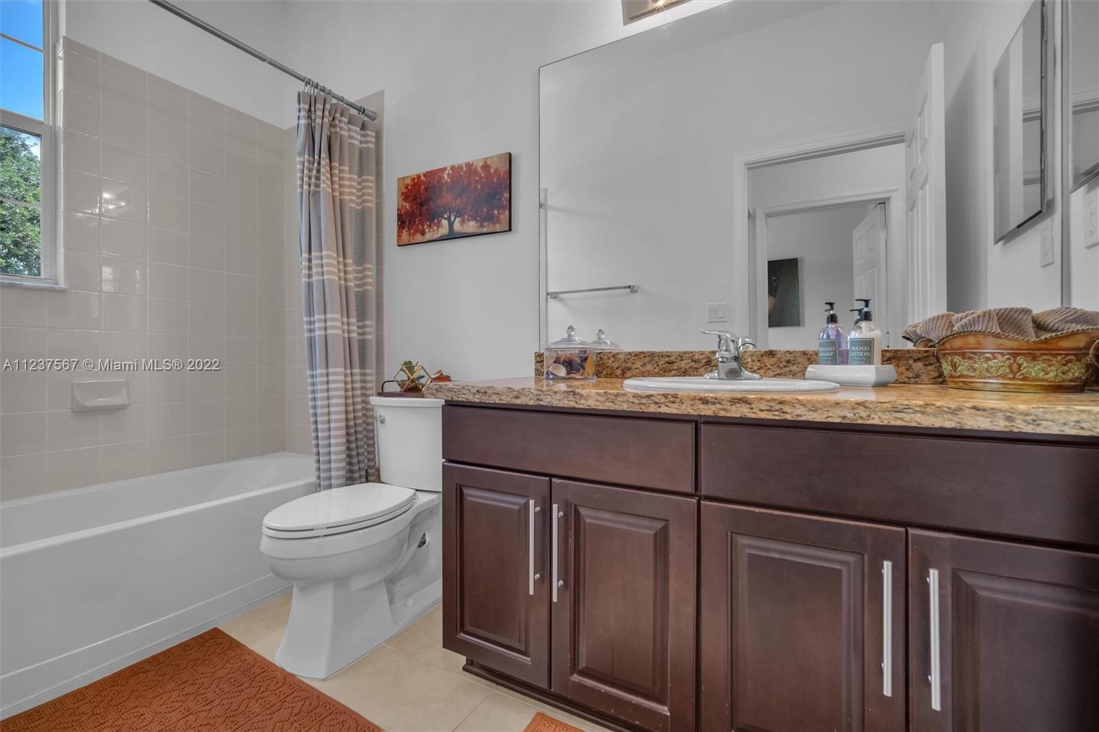 Extremely clean and luxurious Mediterranean tri-level townhouse with a full 3 beds / 3.5 baths / 2-car garage. Upgraded kitchen with granite counter tops, dark wood cabinets + stainless steel appliances. Spacious primary suite on 3rd floor has dual closets and a primary bath with dual sinks, along with a separate tub and shower. Gorgeous white plantation shutters + REAL wood floors throughout the home. HURRICANE IMPACT WINDOWS with FULL SIZE WASHER AND DRYER. Playground in courtyard steps away- visible from multiple windows and patio. Community boasts a gated entrance, clubhouse with full kitchen, pool, gym, and over 1 mile of scenic paths that wraps around the lake. Montclair is conveniently located near Turnpike, I-75, restaurants and shopping.