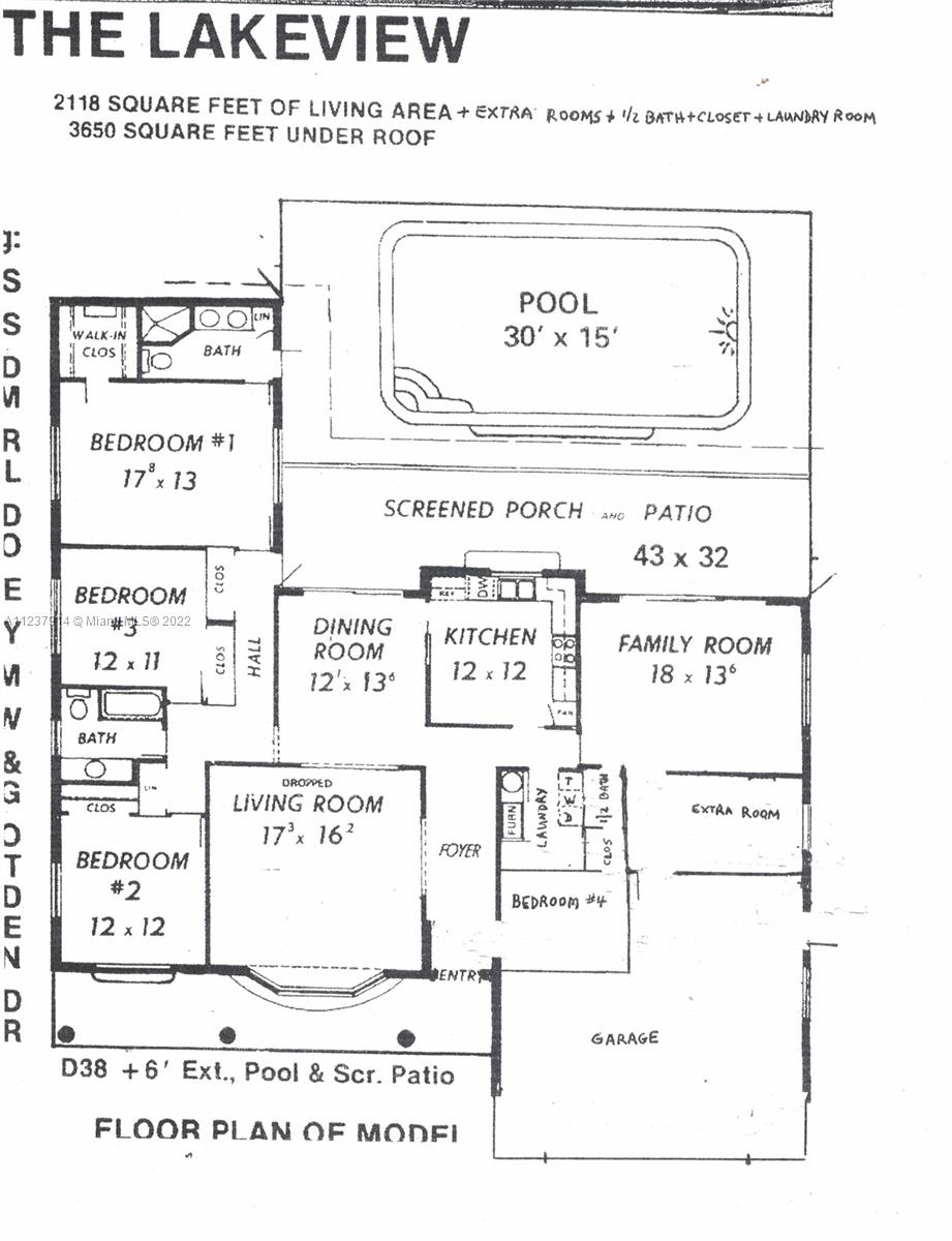 OPEN HOUSE SAT 7/30 & 7/31 12:00-2:00...Move in ready, original owner pool home in desirable Pembroke Lakes…The floor plan for this 4 bedroom 2 ½ bathroom home was customized by the builder, Pasadena Homes, which makes this home unique & one of a kind…Per builders floor plan the home is 2466 sq ft under air...Recently painted/Roof 2007/AC 2014…Circular driveway was just resurfaced…Front & primary bedroom have new carpet…Bonus flex room & family room are great for entertaining…Primary bedroom, dining room, kitchen, & family room have full views of the pool and opens out to a screen-enclosed patio for entertaining...Within 2 blocks from Publix, restaurants, stores, & Pembroke Lakes Elementary...Less than a 5 minute drive to Pembroke Lakes Mall & CB Smith Park