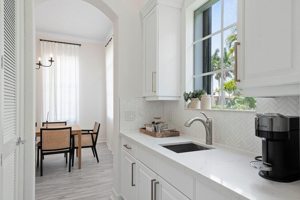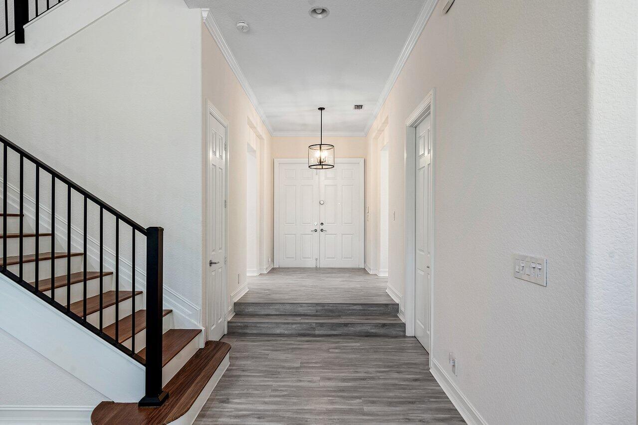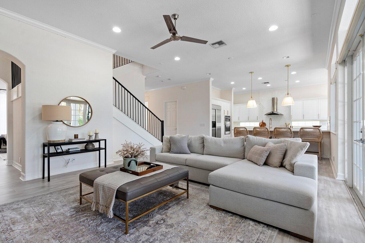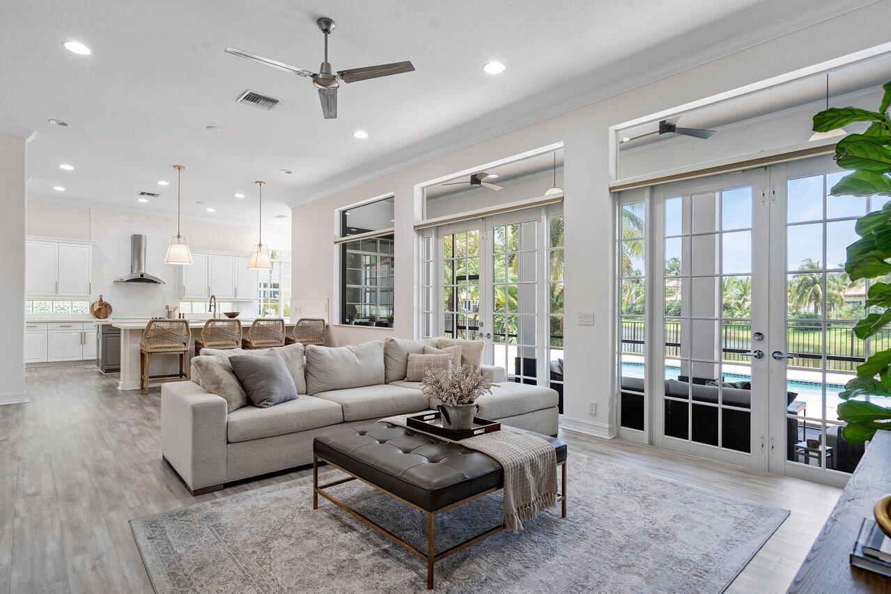 This gorgeous, upgraded lakefront pool home is situated on a 0.37 acre lot with huge side yards. 5 bedrooms, 4.5 bathrooms and 3 garages, (one two car and one one car) with long driveways and many other great features included. Sizeable custom white open modern kitchen complete with butler's pantry and eat-in dining. A heated pool surrounded by lake views and lush landscaping and a screened in patio makes for enjoyable outdoor living. The main level also offers a large family room, formal living area and formal dining room, wet bar, mud room, and a junior suite with a fully remodeled bath. On the upper level you'll find a generously sized owner's suite with sitting room, dual walk in closets and balcony access with pool and lake views. Laundry room with extra storage is upstairs.