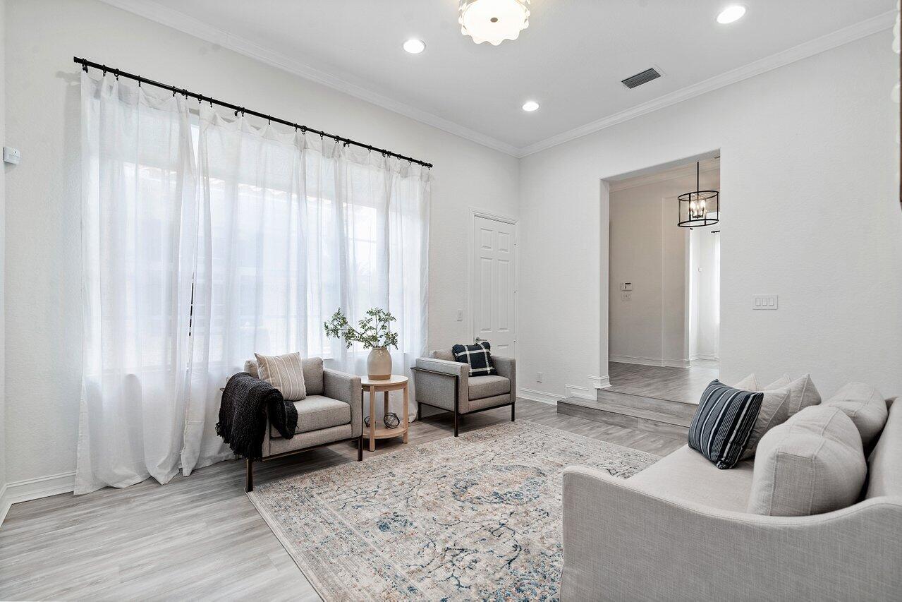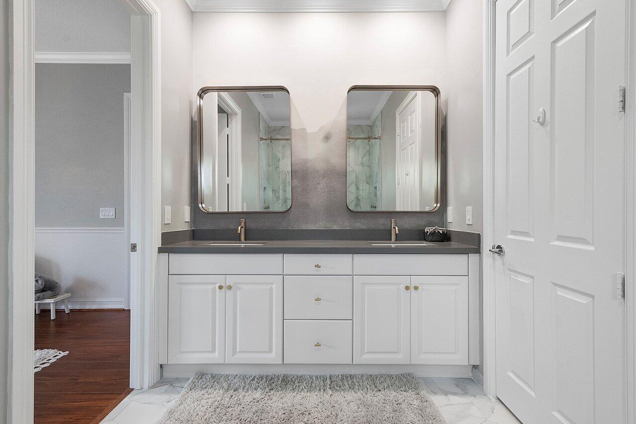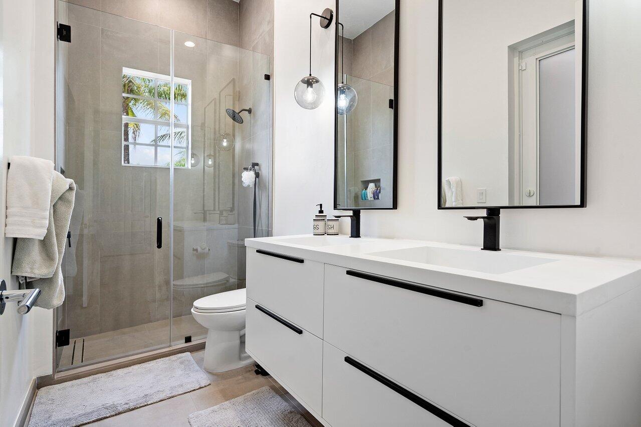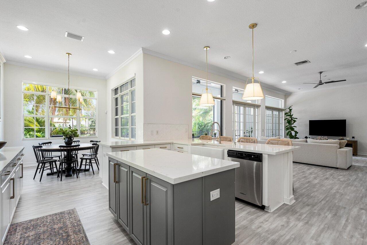 This gorgeous, upgraded lakefront pool home is situated on a 0.37 acre lot with huge side yards. 5 bedrooms, 4.5 bathrooms and 3 garages, (one two car and one one car) with long driveways and many other great features included. Sizeable custom white open modern kitchen complete with butler's pantry and eat-in dining. A heated pool surrounded by lake views and lush landscaping and a screened in patio makes for enjoyable outdoor living. The main level also offers a large family room, formal living area and formal dining room, wet bar, mud room, and a junior suite with a fully remodeled bath. On the upper level you'll find a generously sized owner's suite with sitting room, dual walk in closets and balcony access with pool and lake views. Laundry room with extra storage is upstairs.
