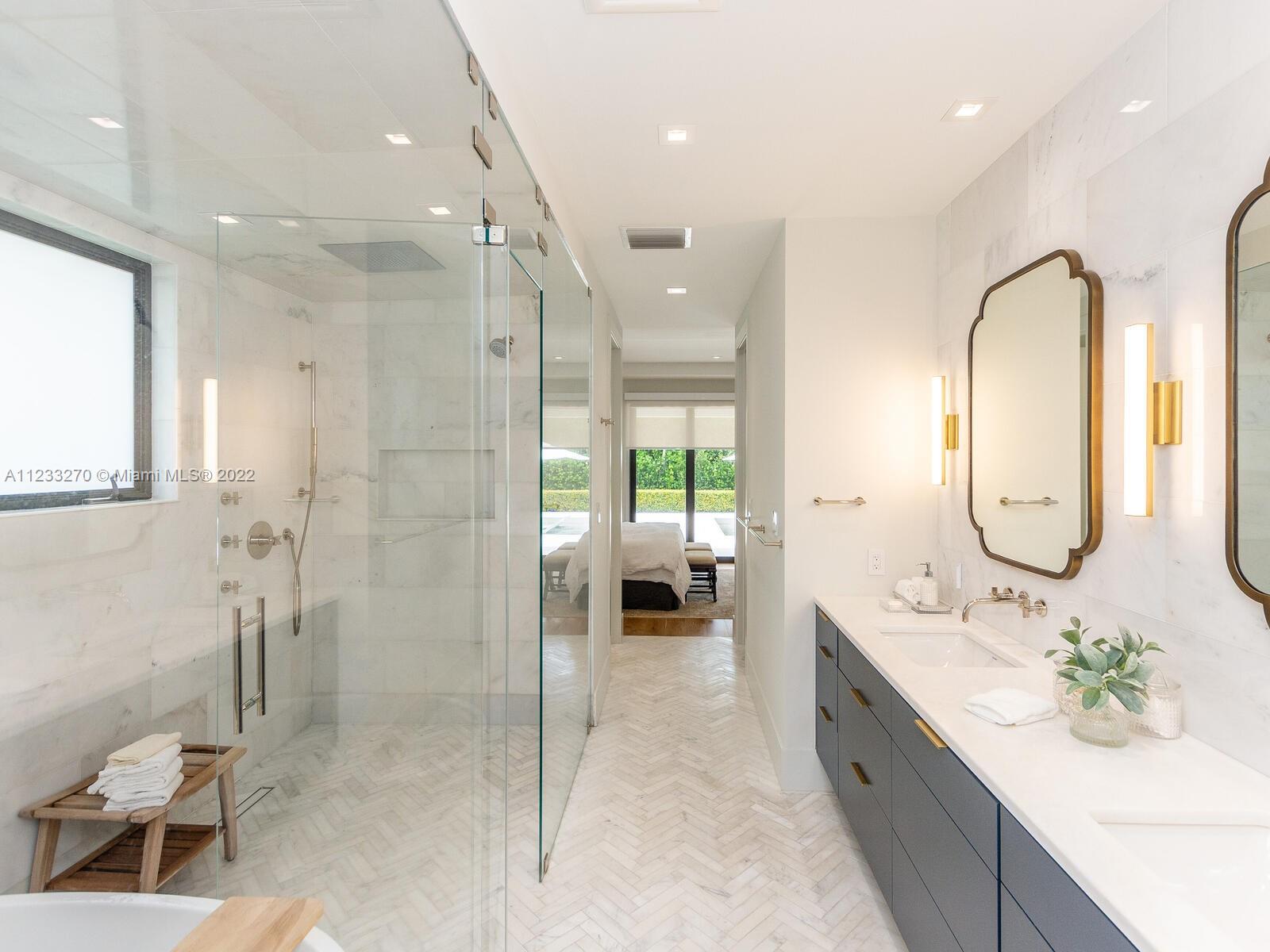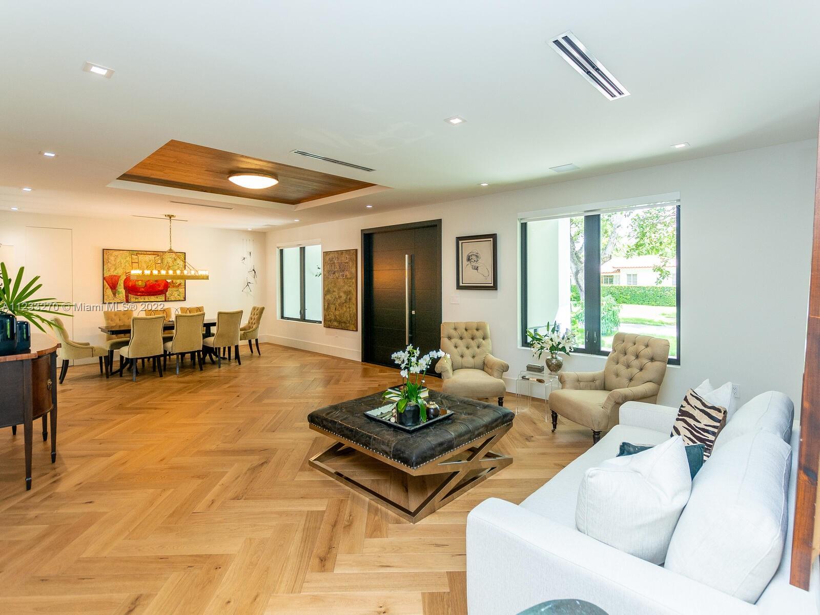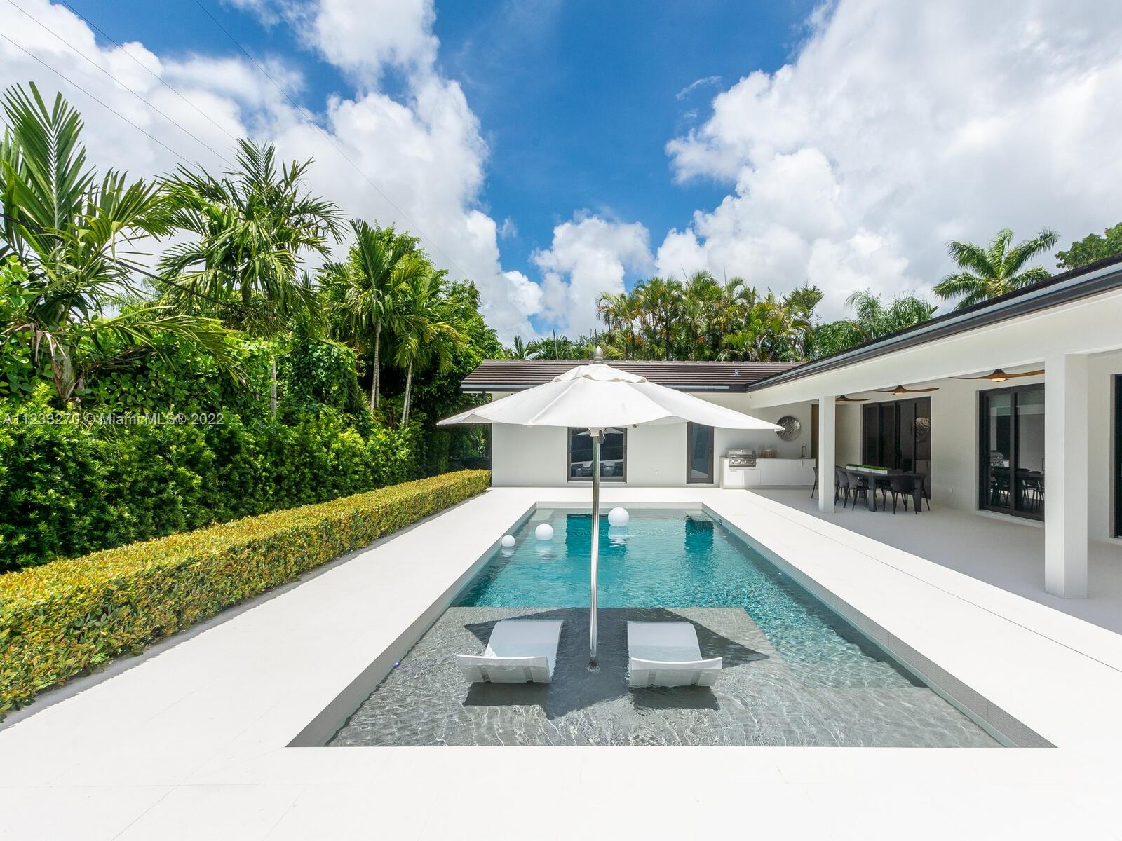 New Construction, built in 2020 with high-end finishes and unique features, located in the beautiful South Gables. Stunning Smart-House with 6bed/5.5bath, 9ft ceilings, Chef’s kitchen with top of the line Wolf and SubZero appliances, large island with prep sink, ice maker and wine cooler, great for entertaining. Custom iron glass door and wall unit. Integrated sound system. Master bedroom with large spa and steam, his and hers walk-in closets, detached guest suit and staff quarter. Beautiful backyard with turf grass, large cover terrace, outdoor kitchen and salt-water pool. 1,000-gal underground propane tank. A 38KW Generator large enough to run the entire house for 2 weeks without power. 2 car garage with an electric charging station. Surveillance system, impact windows/doors, & much more