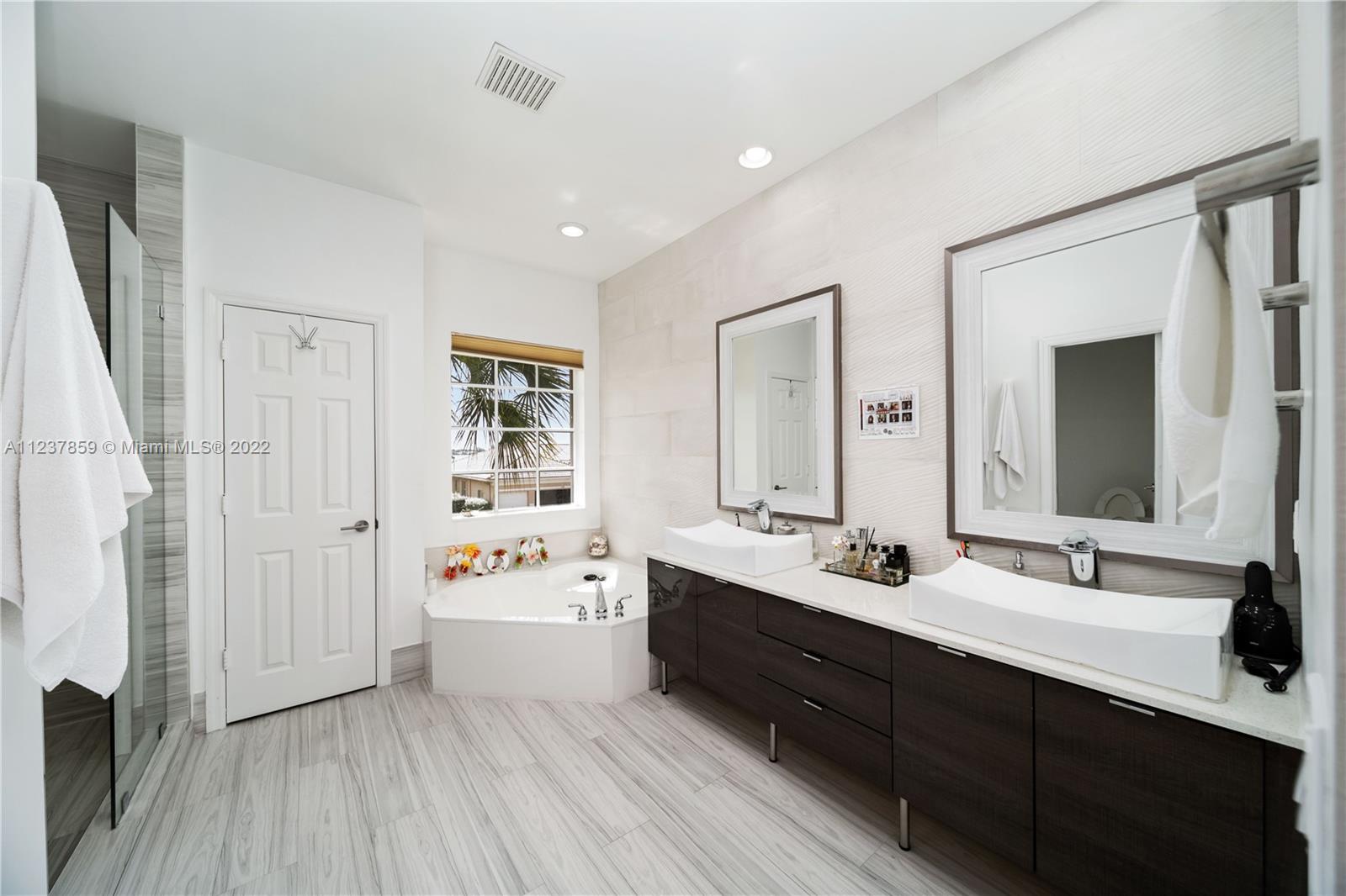 Fall in love with immaculate 6 bedroom and 5.5 baths in the gated community of Harbour Lakes State! Home was remodeled less than 5 years ago. Features porcelain tiles, modern double stairs with glass, more than 20 ft high ceilings, plenty of natural light, two master suites, T Shower with jets, custom closets, quartz countertop, self closing cabinet drawers butler's pantry, smart garage and more. Patio is very inviting and perfect for entertainment with extra size pool, jacuzzi and covered terrace.