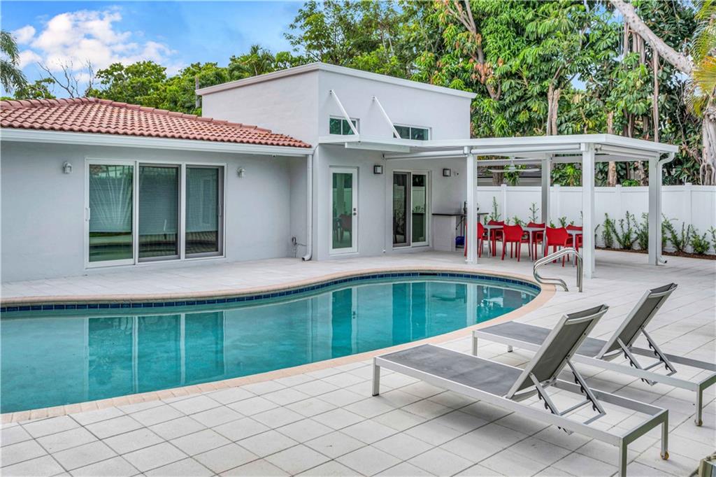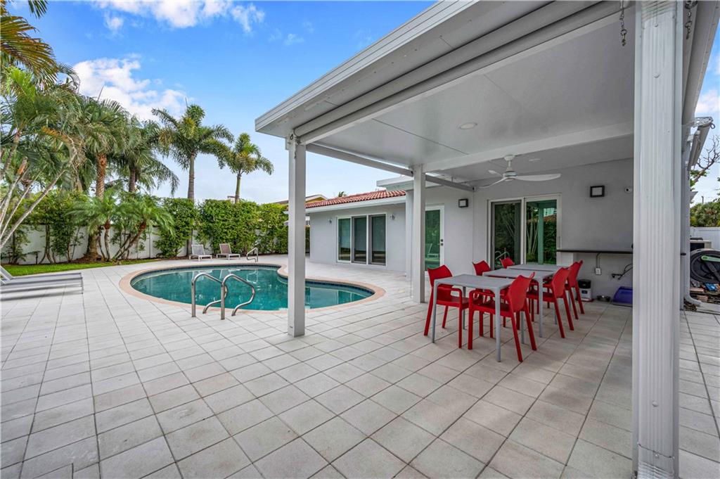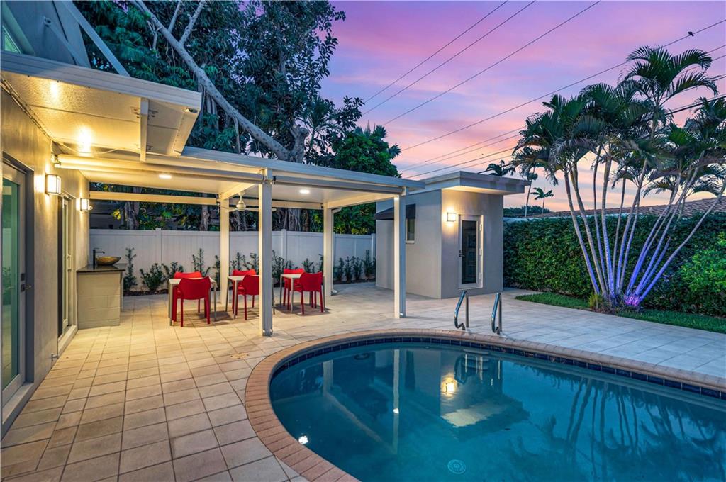 Move-In Ready - Harbor Inlet is a quiet beach neighborhood east of the Intracoastal. This bright, modern home has been completely renovated from windows and doors, to baths and the kitchen. A foyer and small office greet you as you enter. A new kitchen, walk-in pantry and cabana bath were added in 2020. Sliders from the kitchen open to a canopied patio and new out building perfect as an art studio. The owner’s suite features two walk-in closets, a luxury bath and sliders to the pool and patio area. Driveways, walkways and terrace are all newer as well as the PVC fences and gates. The oversized two car garage leads to a bright and spacious laundry room with storage and a wash sink. Public beach access is a few blocks away. Multiple shopping and dining options are just over the bridge.