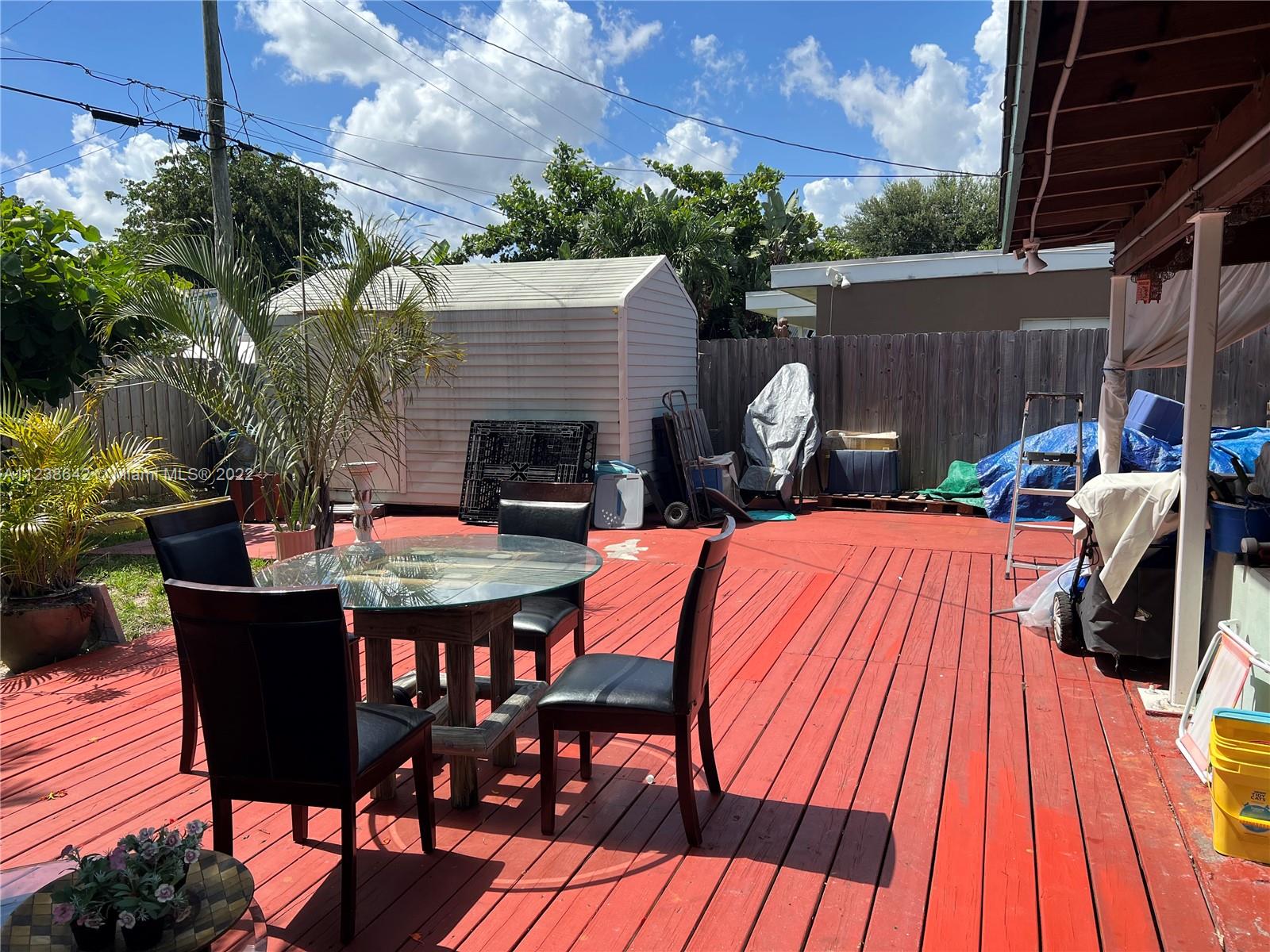 Comfortable 3 Bdrm 1 Bath home with Brand New Roof (2022), covered patio with Deck and storage unit included. Central AC is only 7 years new! parking for 6 cars and for Boat in the back with plenty room for a pool. Inside Bathroom & kitchen not original with all ceramic tile floor inside. Bahama Shutters for shade year round and Hurricane protection. Walk to the market or Movie Theater or Restaurants. Owner willing to rent back for short term possible. No Homeowners Association to deal with. Architect Plans for 2nd Bathroom are available.