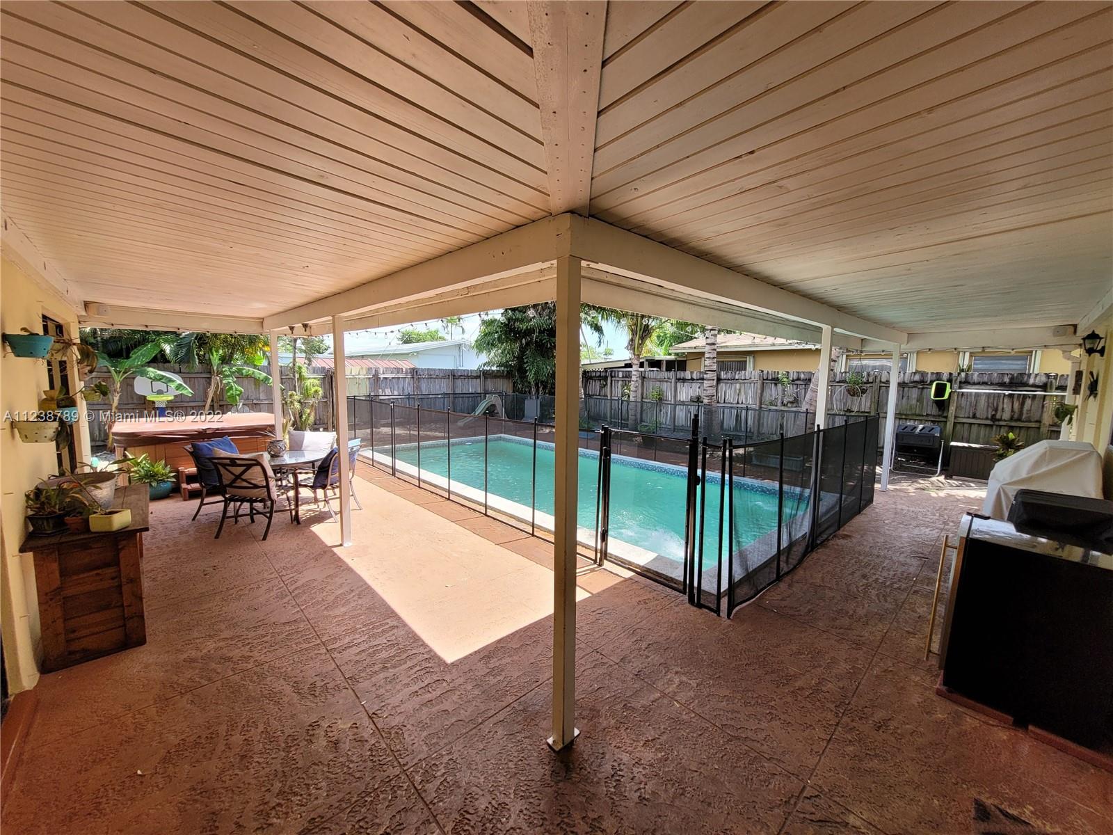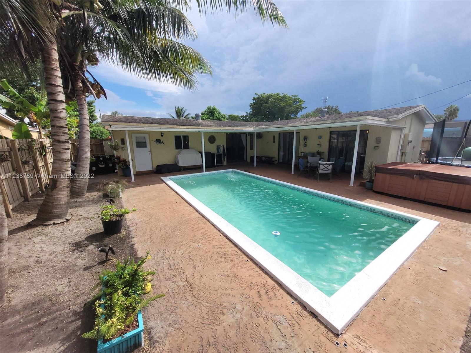 West Hollywood single-story, split-floor plan home, w/backyard oasis, on a dead-end street. Actual Sq Ft 1340. This 3 bed (or 4 bed), 2 bath has tile throughout & ceiling fans in every room. Master has wood floors & walk-in closet. Kitchen w/granite counter tops, large pantry/utility room & SS appliances. The bonus room features a large walk-in closet & new mini-split AC unit, which can be a bedroom or FL room. Bathrooms & windows updated with faux wood blinds! Large covered patio, 6ft privacy fence, palm & fruit trees, and pool. Beautiful landscaping & double driveway. No HOA, septic tank & stove/Large water heater (replaced 2021) on natural gas. Hurricane shutters for all openings, roof straps & on hospital’s power grid. Termite, 4 pt, & wind mit inspections done & passed Jan 22.