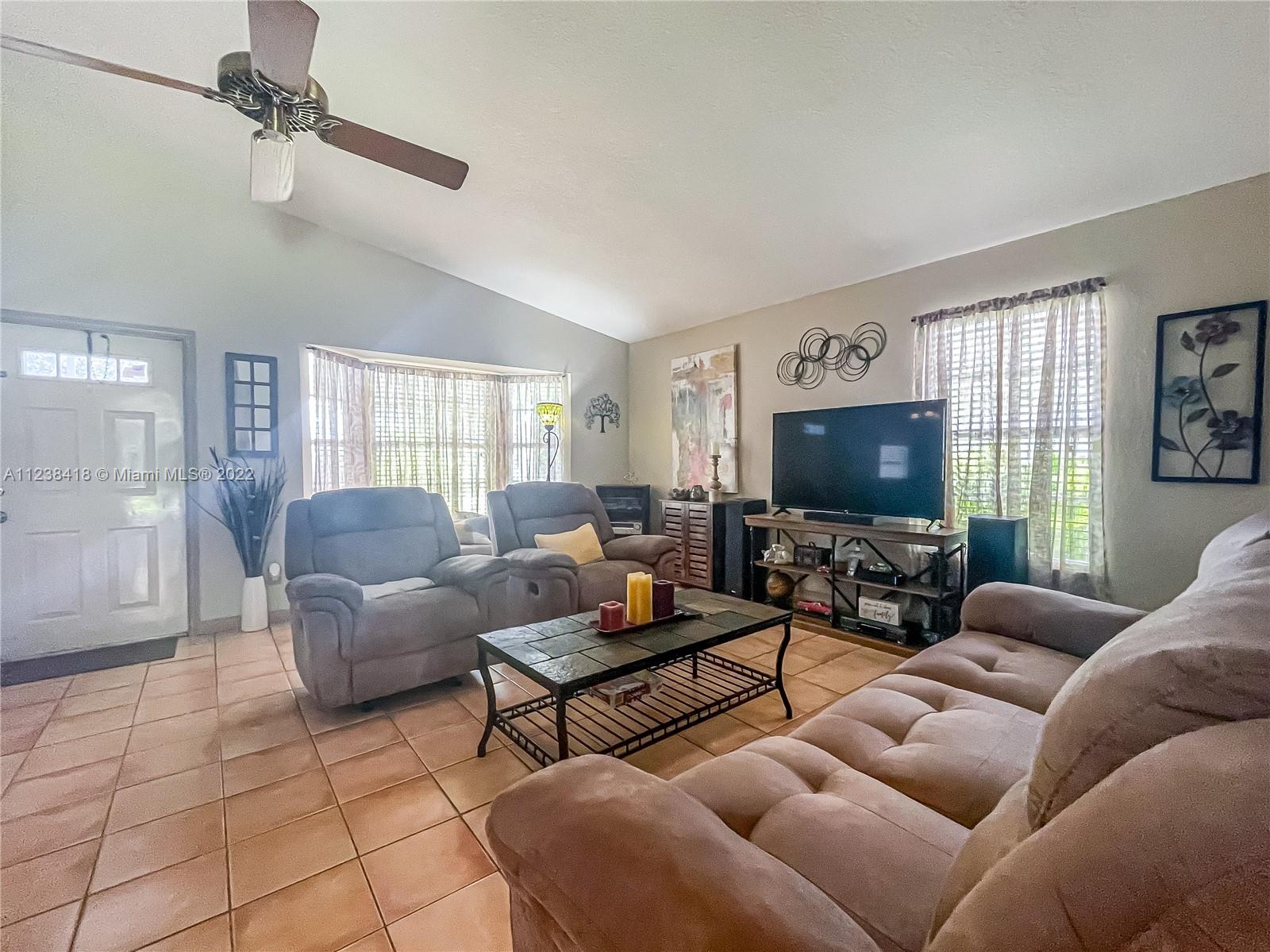Welcome to this beautiful well-sought-after home in Summer Lake Community in Davie. The large manicured yard leads to a screened front porch entrance. You are greeted with a large open floor plan living/ dining area. The upgraded kitchen has a granite countertop & Stainless Steel appliances. This is the perfect home to raise a family in this fabulous quiet neighborhood. A large fenced backyard with a shed backs up to a private canal. Lots of room for a pool or swing set. Easy access to I75, 595. Minutes to shopping, place of worship, and much more. Large manicured exterior front and back yard with shutters. Property sold "AS IS" without repair or warranty.
