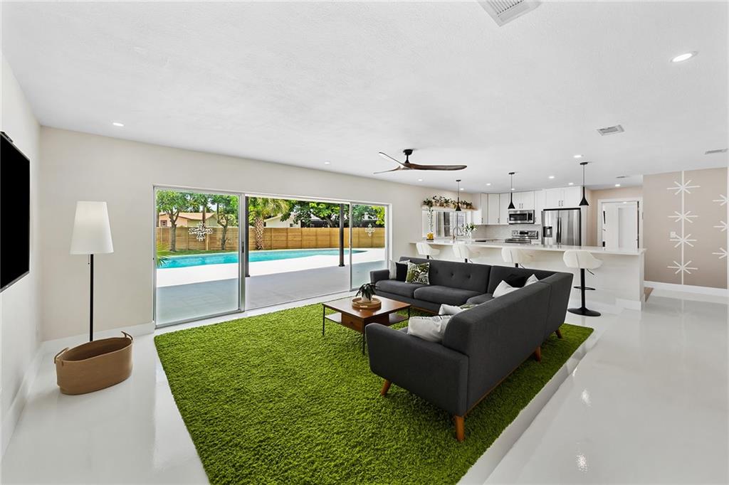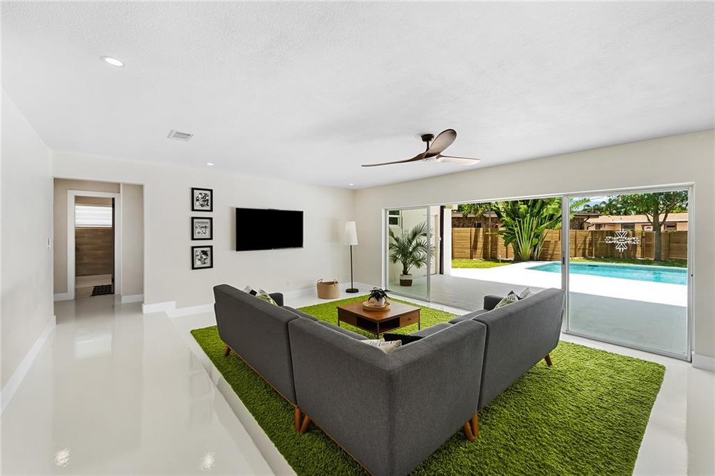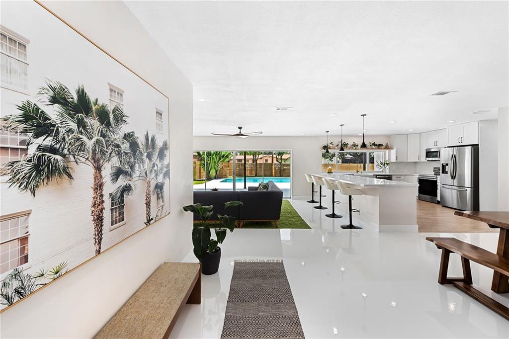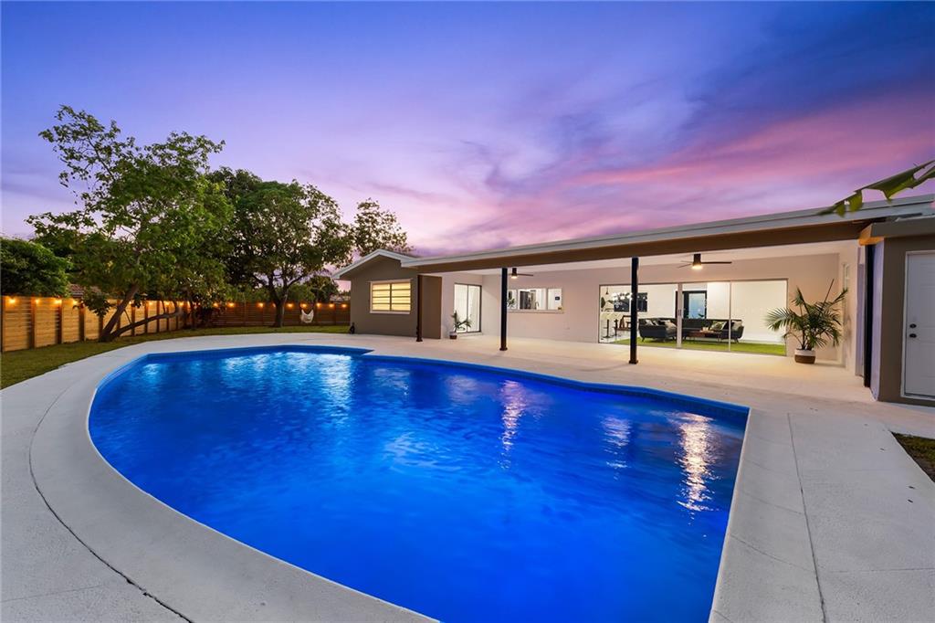 Fabulously updated 4/3 pool smart home now available in highly sought-after Hollywood Hills! FEATURING: 2,257 SQFT under air, partial impact, brand new kitchen (2021), fully remodeled baths, 2014 roof, new electrical panel, "single pour" epoxy flooring throughout, recessed lighting, 2-car garage (with impact rated door) & more! Oversized (14,868 SQFT) corner lot! Enjoy your fully fenced yard, giant covered patio, fruit trees and free form pool. No HOA, park your RV or boat on the east side of the property! Close to Hollywood beaches, downtown, TY Park, hospitals, restaurants and shops. Furniture is negotiable!