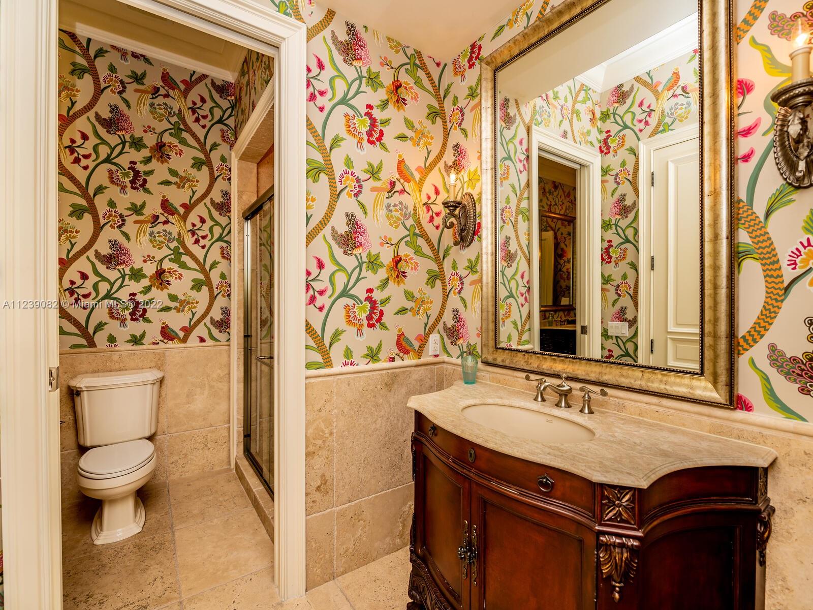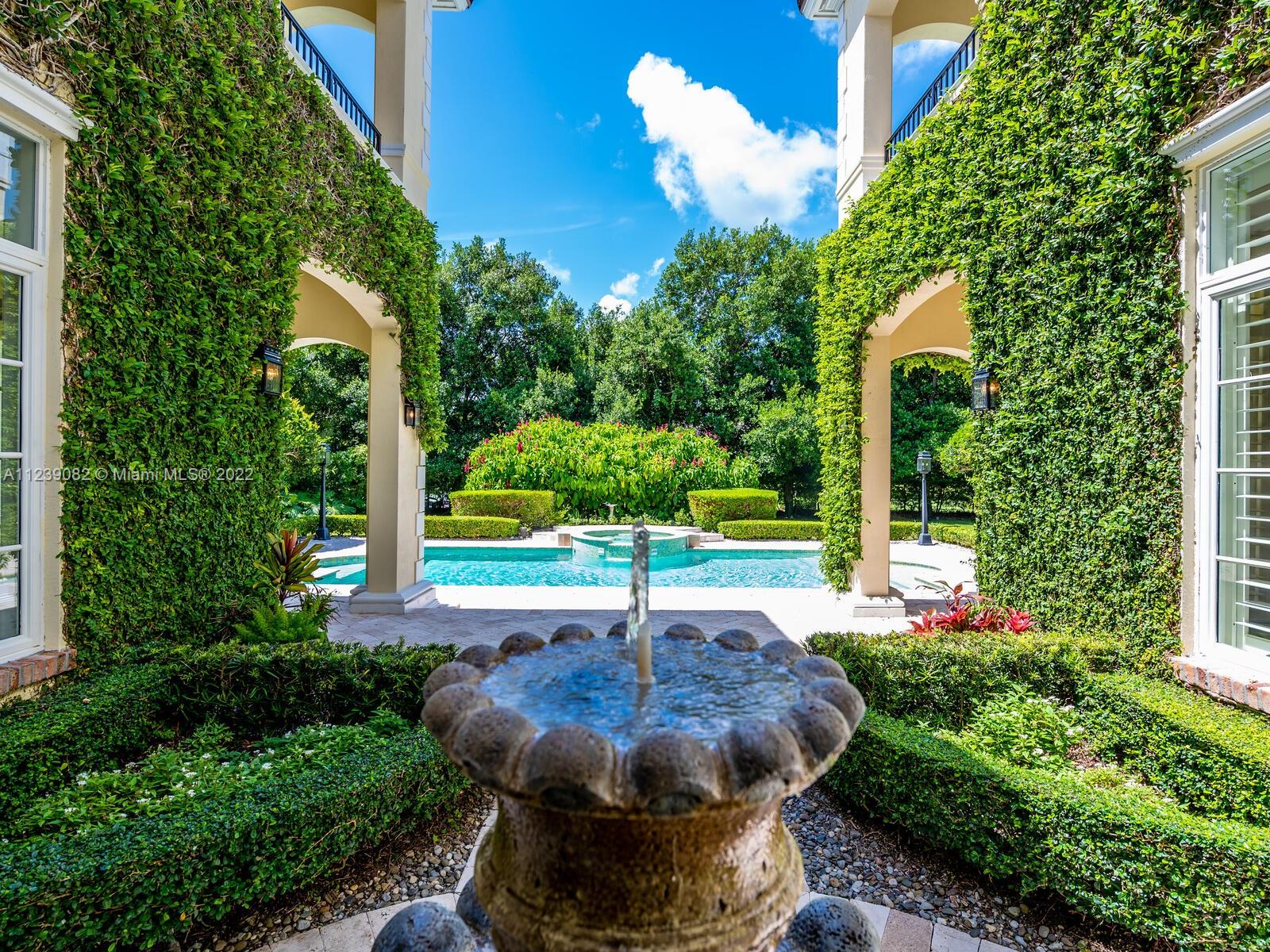 French Neoclassical Pinecrest Estate. Nestled in total privacy amid lush pristine landscaping, this sprawling residence is an extravaganza of indoor/outdoor architectural artistry. Vast marble terraces & covered columned balconies surround it. A stunning ivy-covered courtyard w/fountain divides the wings, fronting the designer pool & spa. An immense foyer introduces the grandeur w/2-stry ceiling, sky-hi windows, candelabra chandelier, creamy marble flrs & winding statement staircase w/wrought-iron rail & marble steps. Every room is brightened by banks of windows + recessed & artistic lighting. Entertain in formal + casual dining rms & living + family rms. The giant, dual-island kitchen is a chef’s dream! Wood flrs in bdrms. Roman tub in master bath. Room-size master closet. Generator, 3CG.