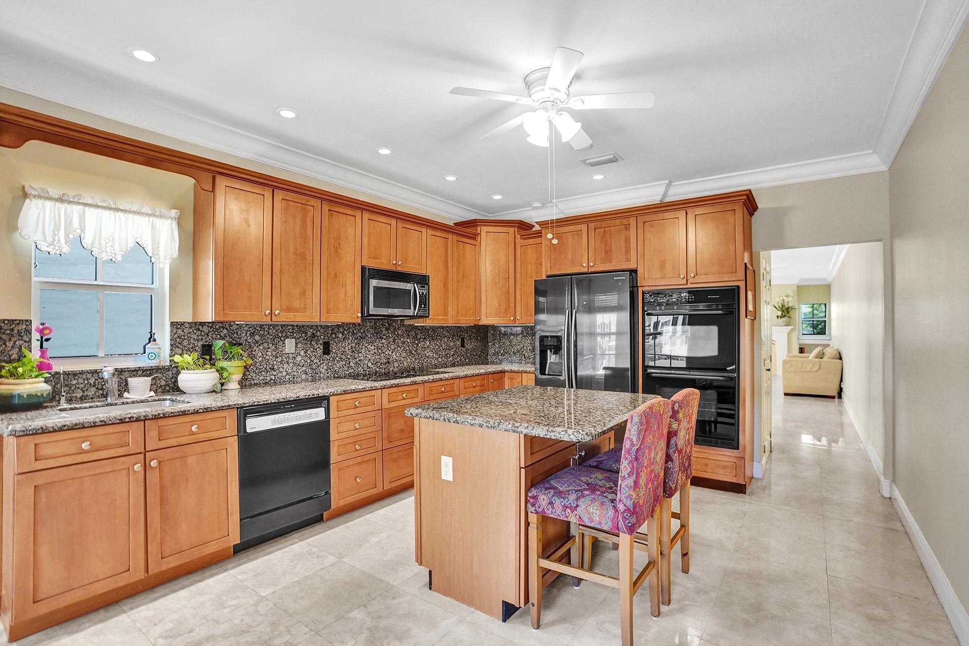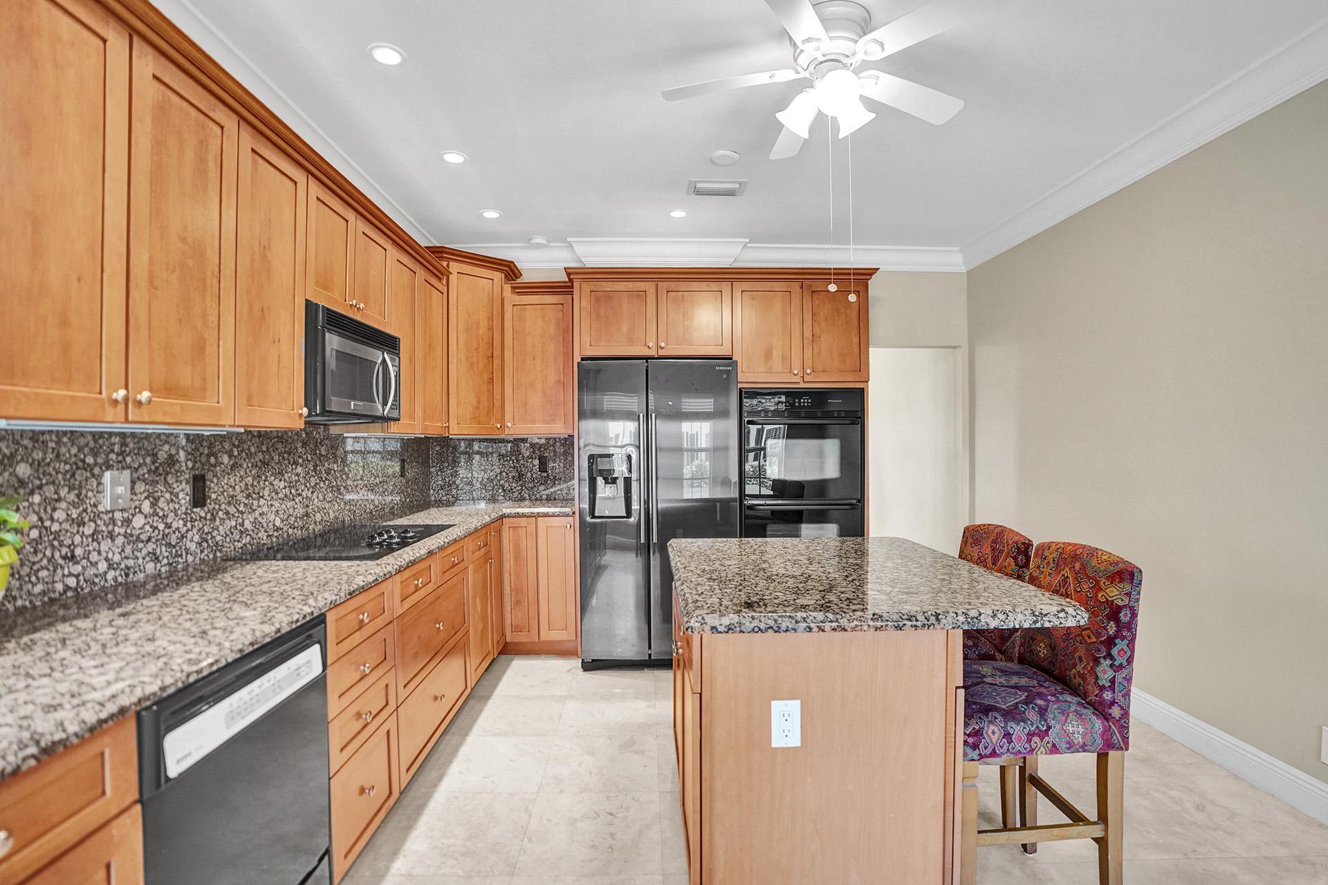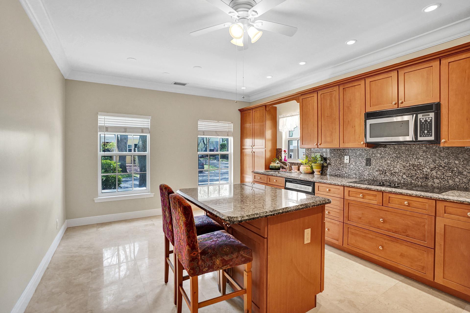 Stunning 2 bed / 2.5 bath corner lot townhome with ROOFTOP TERRACE & SPACIOUS WALLED-IN PATIO in the sought-after neighborhood of Charleston Place in A-RATED SCHOOL district in central Boca Raton. This home oozes character and charm and features neutral decor and crown molding throughout. Enter into the bright and airy great room with real fireplace, tile flooring and two sets of French doors leading to your private brick-paved patio, the ideal spot to enjoy both sun and shade. The kitchen features custom wood cabinetry, recessed lighting, granite countertop and backsplash, chefs island with high-top seating and large breakfast nook.