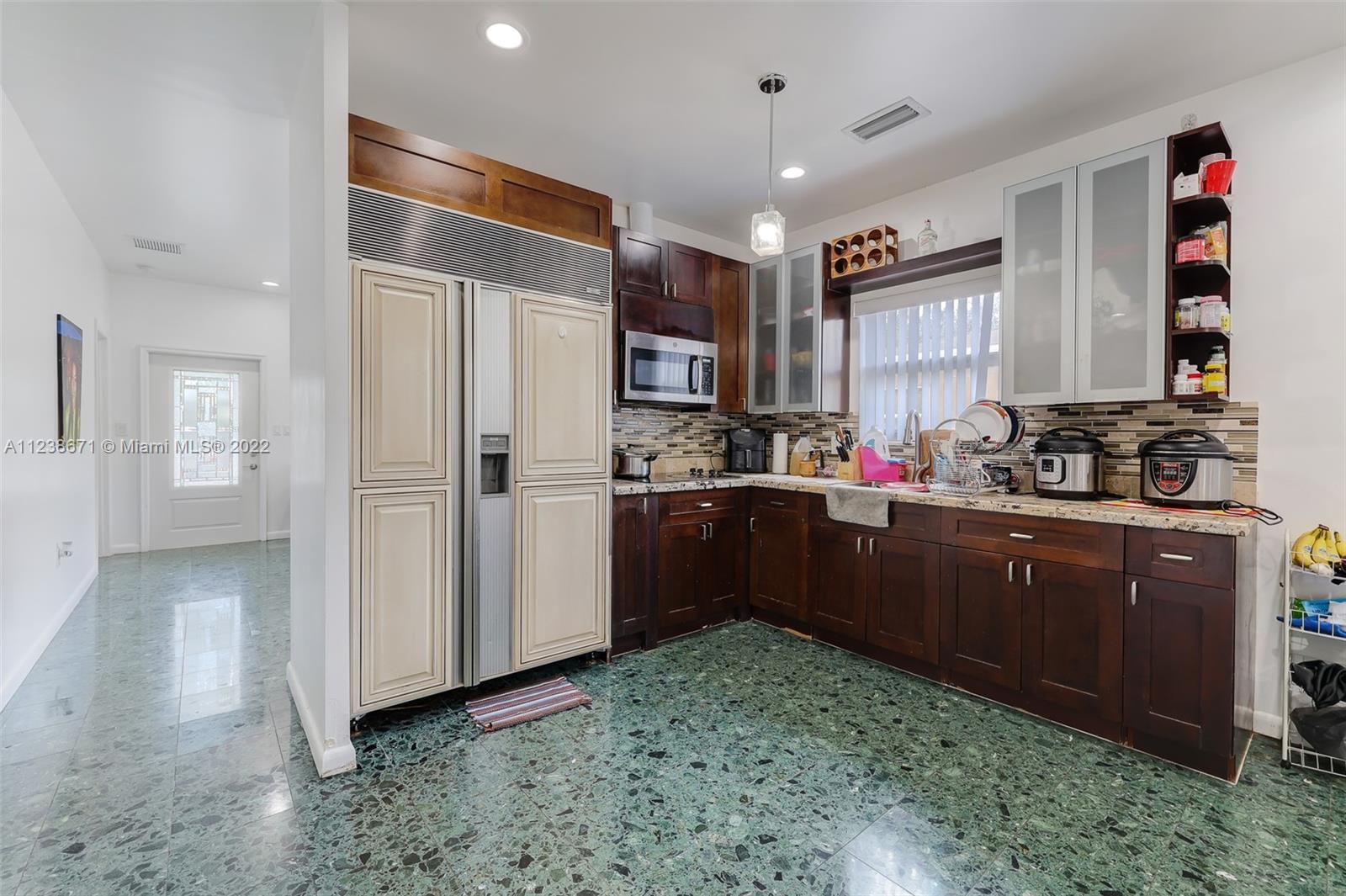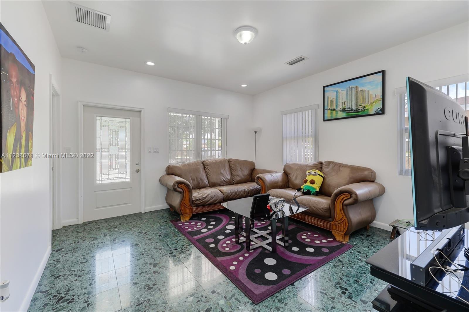 New house built in 2021 has 5 bedrooms 3 bathes, marble floors, wood cabinets, granite counter tops, Sub Zero Refrigerator, marble guest bath and marble master with jacuzzi tub, high ceilings with LED high hats through out, impact windows and doors, two tankless water heaters, 4 ton A/C with 2 electric meters and a rental income of $3600 a month. The original house which is in the back has approximately 469 sq. ft. with a 1-1. Front house which is 4-2 has approximately 1650 sq. ft. All dimensions must be confirmed.