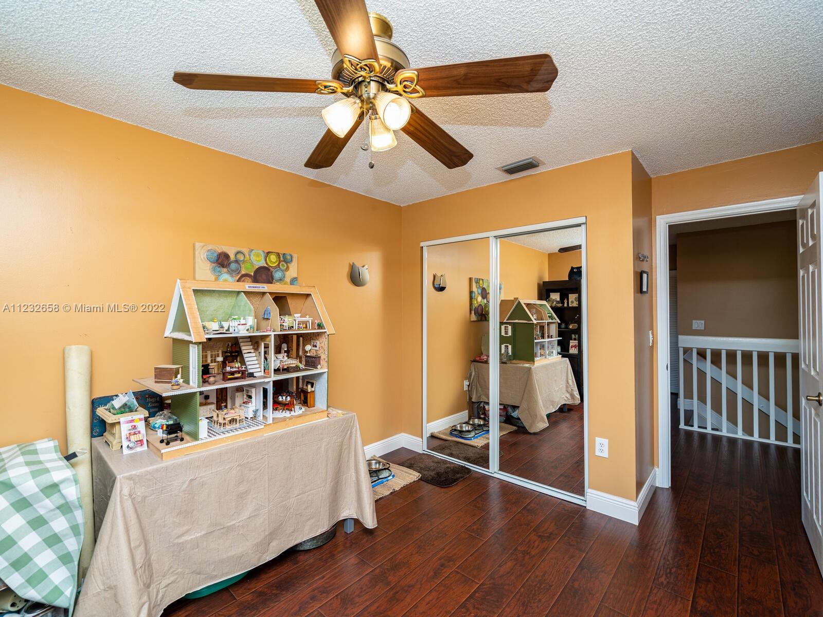 Beautiful well kept home featuring 4 bedrooms w/ 2.5 baths & 2 car garage. High end engineered wood flooring. Kitchen overlooks the family room. Newer S/S appliances. Gas water heater (2019) and dryer. all bedrooms on 2nd level featuring an oversized master suite with a double door entry & 2 walk in closets. Loft area on 2nd floor Attic flooring for extra storage. Master bathroom has separate shower plus a roman tub & double sinks. Alarm system with 2 motion detectors. The exterior has an above ground pool and the yard is totally fenced. Accordion shutters, tinted windows. Sprinkler system w/ separate water meter. 2 sheds. This home is walking distance to A+ schools plus a wonderful park with a splash pad! 5 minutes to Sawgrass Mills Mall. Centrally located for easy access to tri-county