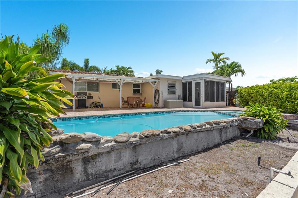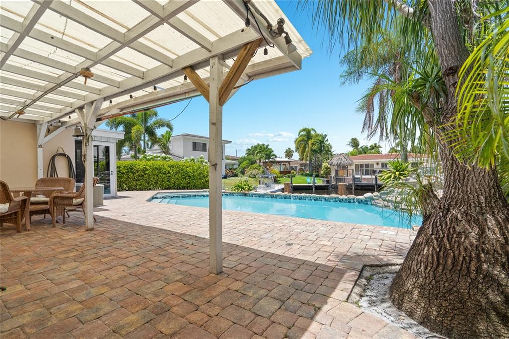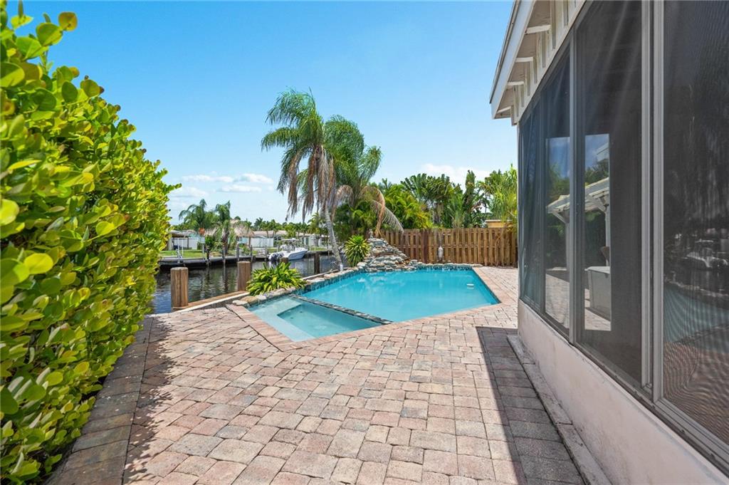 Million-dollar property without the million-dollar price tag! Lovely waterfront home in highly desirable Cypress Harbor with only one fixed bridge to the ocean! This 2 bedroom, 2 bath, pool home has a modern, open floor plan with renovated kitchen and baths. Tile throughout! A one car carport, with plenty of room for multiple cars. Pool has spa and waterfall! Seawall has new dock and batter pilings! Relax with a cup of coffee or wine on your oversized screened in patio. New A/C, washer & dryer! This lovely property is centrally located in hot, HOT Pompano Beach! Easy access to shopping, restaurants, 95, turnpike and the beaches!