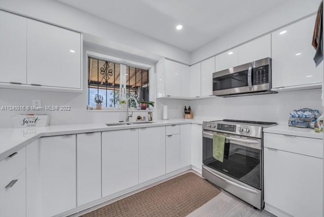 Beautifully remodeled single-family home with 3 bedrooms and 2 1/2 bathrooms. The property has new laminate floors throughout the first floor and stairs. A great new kitchen with lots of counter space and stainless steel appliances. Enjoy the covered terrace for family gatherings. There is plenty of parking in the front. The roof is 5 years, and AC is 1 year installed. The property has accordion shutters. Come make this your home.