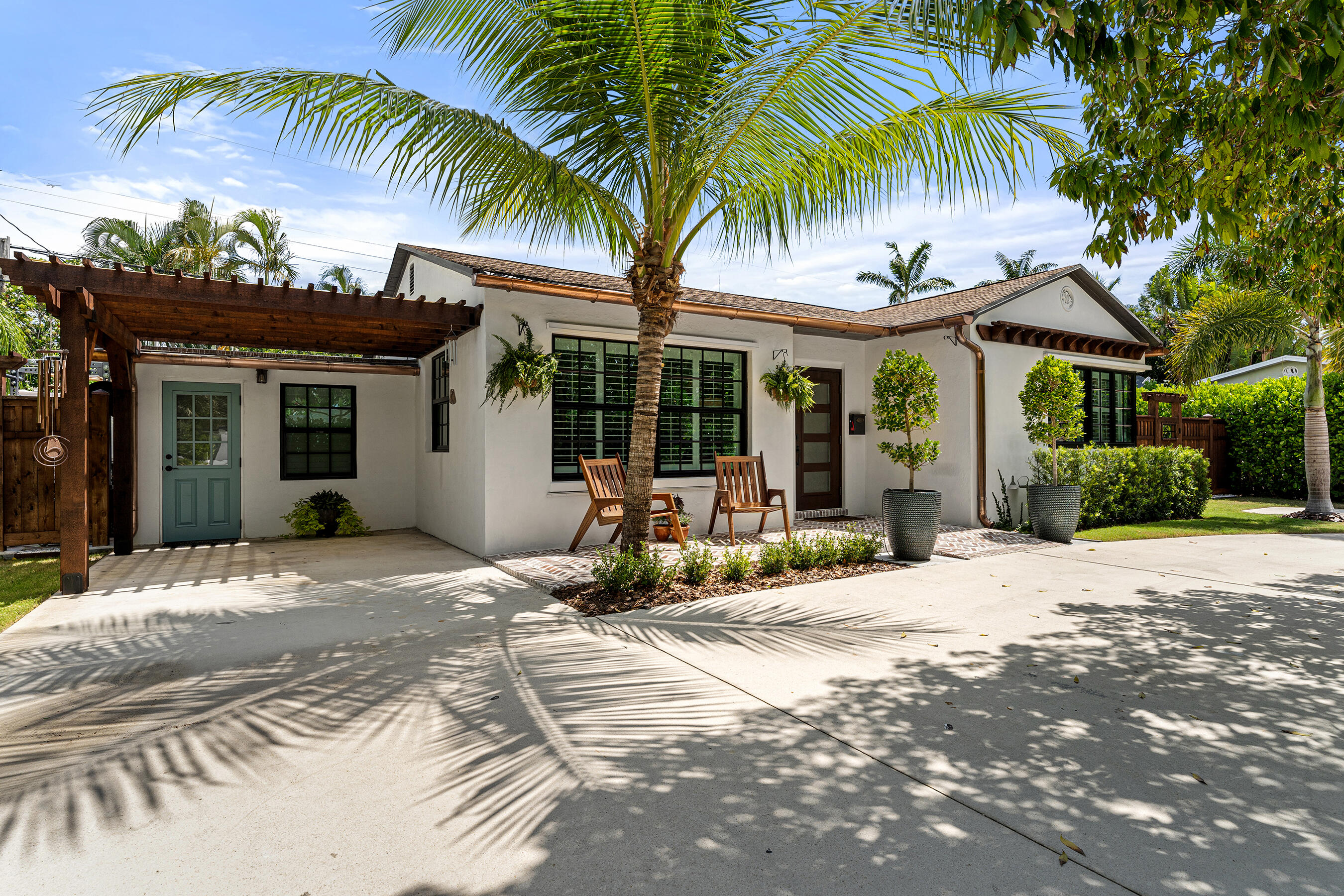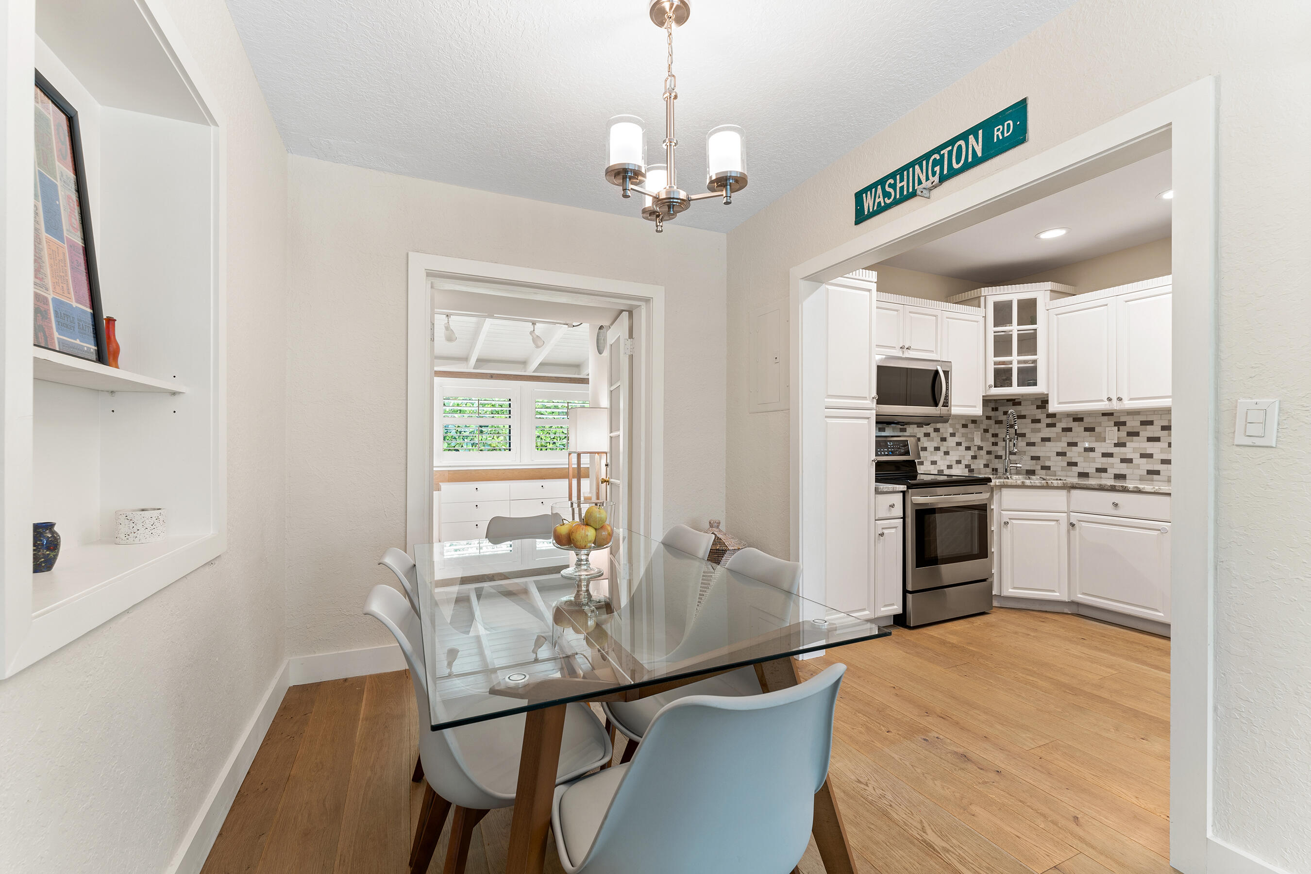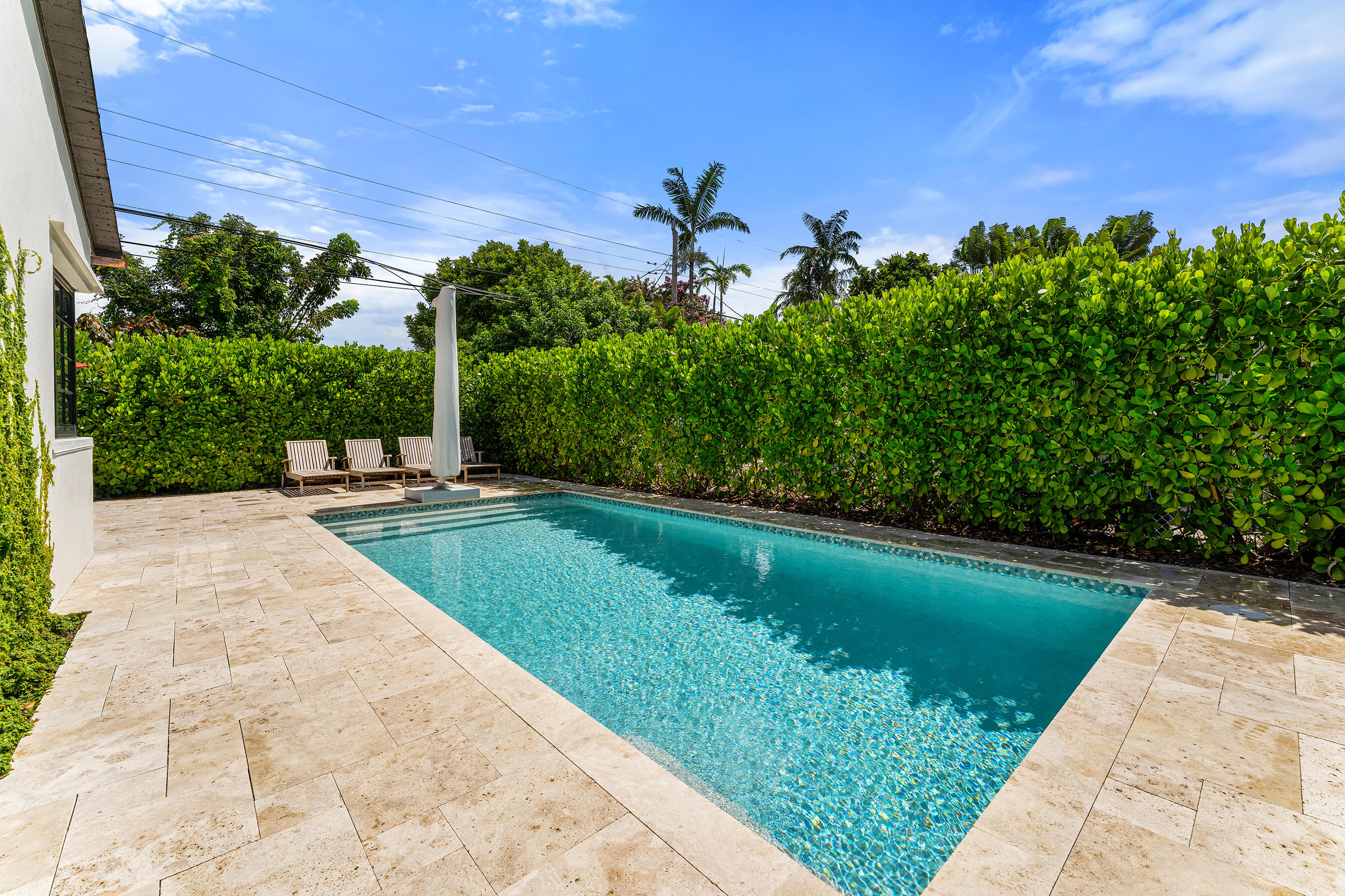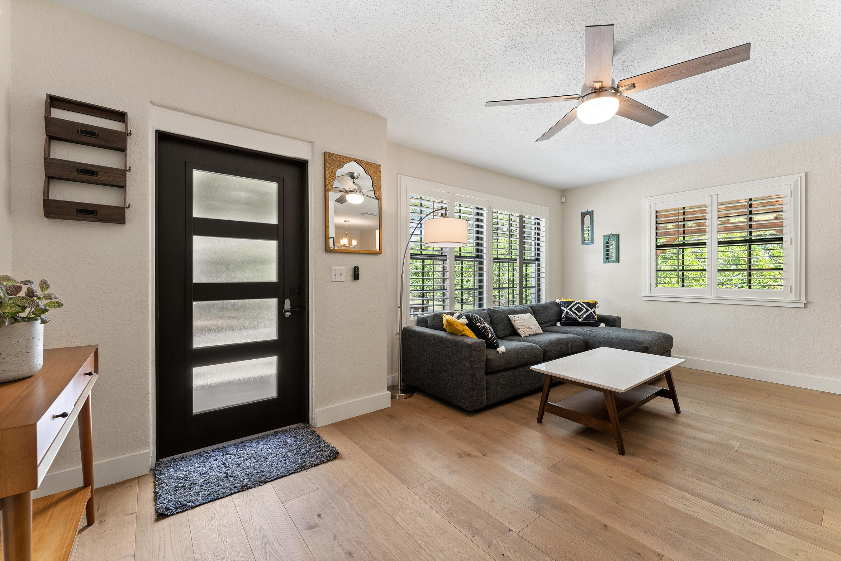 Beautifully Renovated & Centrally Located Home with Pool and Outdoor Oasis! Nestled in the highly sought-out SoSo neighborhood, this 3 bedroom, 2 bathroom residence sits on a perfectly manicured lot with lush landscaping, large circular driveway, and tastefully adorned exterior. Upon entering, you'll find European oak hardwood floors, plantation shutters, and impact windows & doors throughout. The kitchen showcases white cabinetry, granite countertops, tile backsplash, pantry, stainless steel appliances, and adjoining dining area. The primary bedroom suite is situated opposite of the 2 other bedrooms and features European oak wood accent walls, walk-in closet, and a recently updated en-suite bathroom. The primary en-suite bath comes equipped with dual sinks, glass shower enclosure, and...