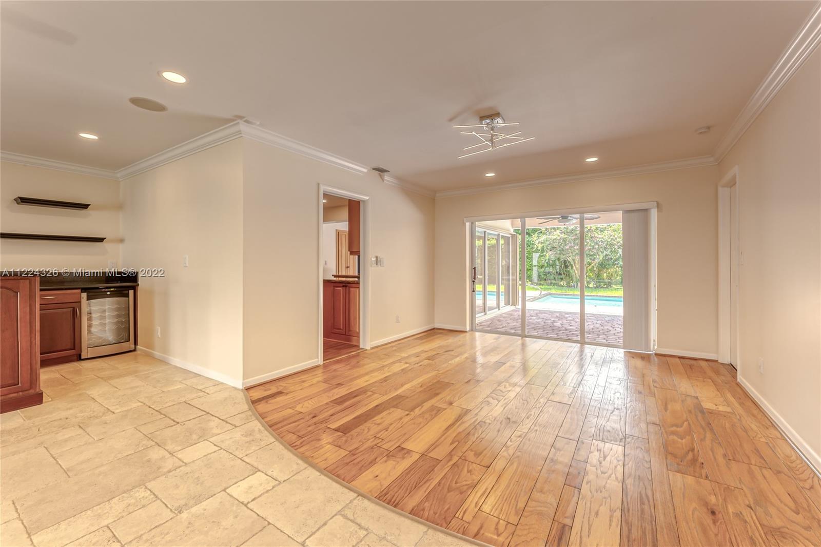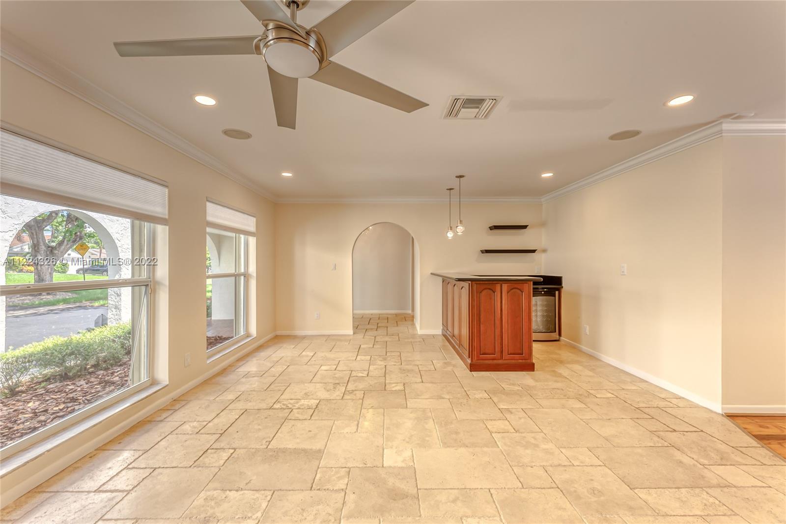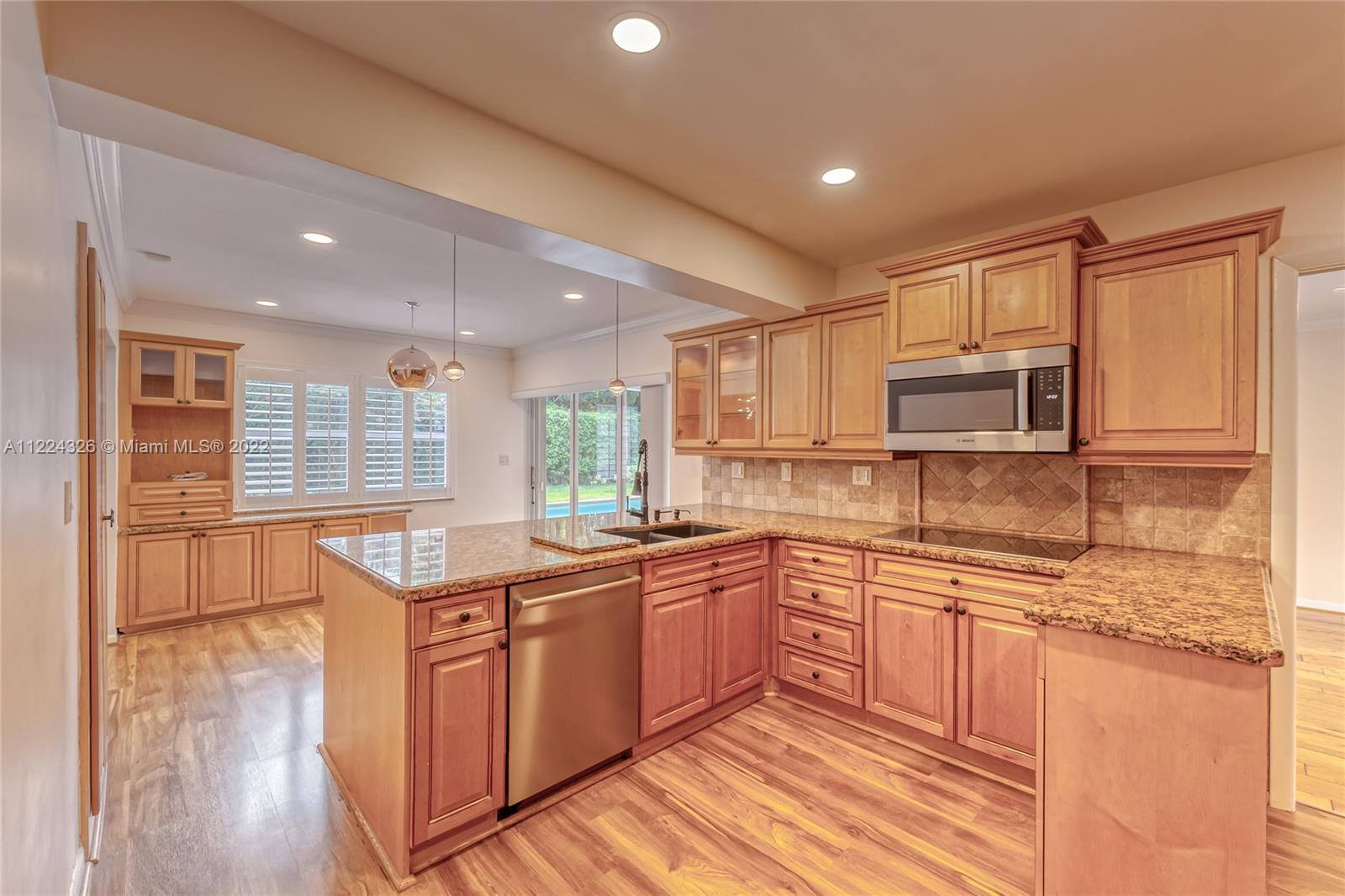 You do not want to miss this beautiful 4 bedroom/2.5 bath pool home in the heart of Royal Palm South. This home offers a newer roof (2016), a new A/C (2019), garage storage system, a security system, and a complete surround sound system. The kitchen provides Top-of-the-line appliances such as Bosch and Thermador, an eat-in kitchen area, wood cabinets, and granite countertops. You cannot miss the designer touches throughout the home, including the modern light fixtures, laminate flooring, plantation shutters, and high-end window coverings. Great for entertaining with spacious living and family rooms, beautiful custom-built bar including a wine fridge and refrigerator with lots of natural light. Lushly landscaped for privacy. Oversized pool.