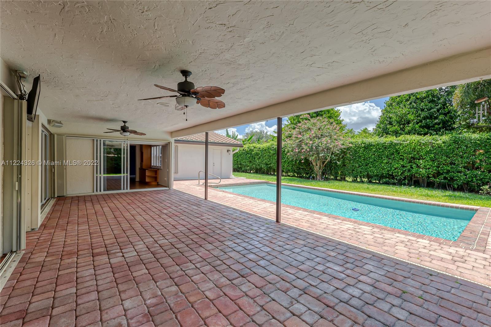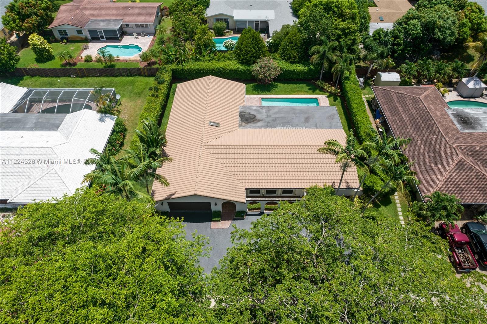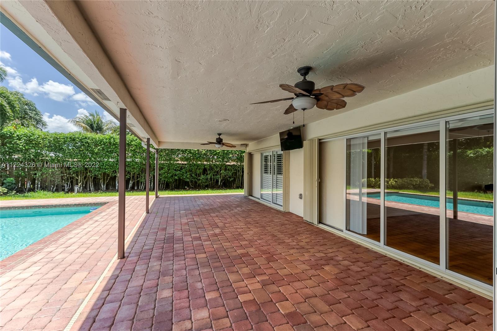 You do not want to miss this beautiful 4 bedroom/2.5 bath pool home in the heart of Royal Palm South. This home offers a newer roof (2016), a new A/C (2019), garage storage system, a security system, and a complete surround sound system. The kitchen provides Top-of-the-line appliances such as Bosch and Thermador, an eat-in kitchen area, wood cabinets, and granite countertops. You cannot miss the designer touches throughout the home, including the modern light fixtures, laminate flooring, plantation shutters, and high-end window coverings. Great for entertaining with spacious living and family rooms, beautiful custom-built bar including a wine fridge and refrigerator with lots of natural light. Lushly landscaped for privacy. Oversized pool.