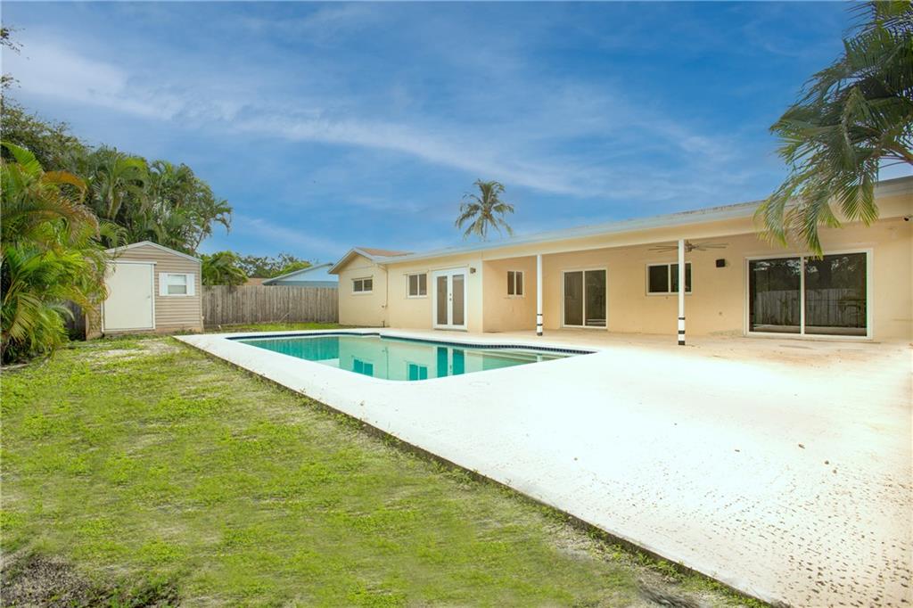 Palm Aire Village East: Larger & updated home. 4 bedrooms / 2 baths, 2 car garage, Fenced, Pool Home. Completed Renovations: Roof - 2018, A/C - 2020, Impact Windows & Doors-2020, Fence - 2018, Kitchen - 2020 with more updates 2022. Updates include: kitchen cabinets, countertops, dishwasher, stove, refrigerator, hood, sink, recessed lighting... new attic access & insulation, Bathroom... Bedrooms are very spacious and master has a large walk-in closet. Beyond the pool is a shed complete with electricity.