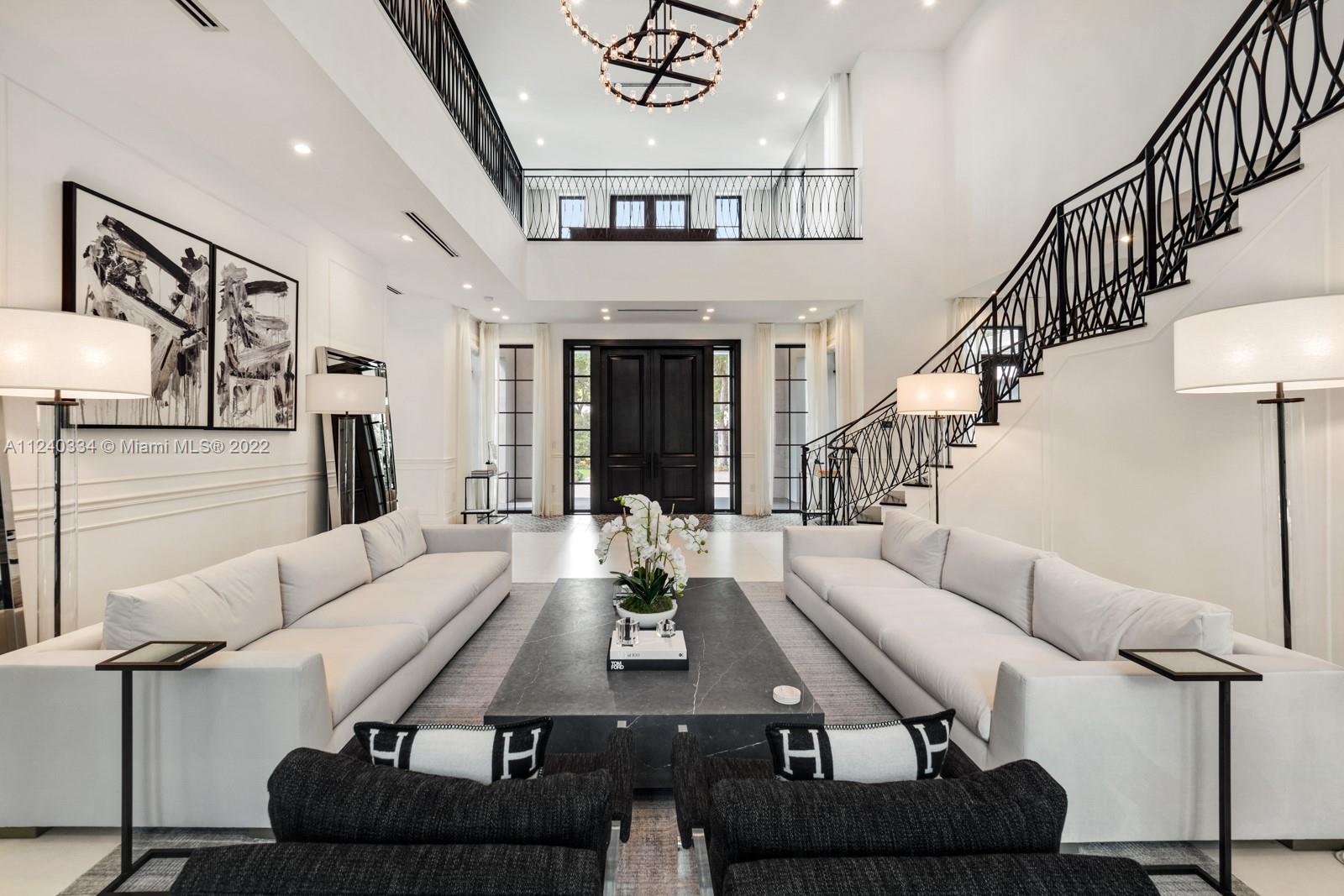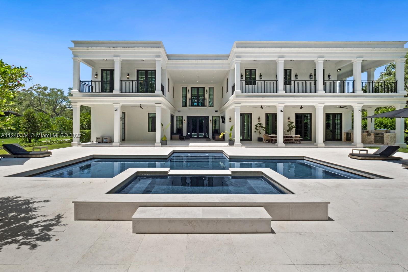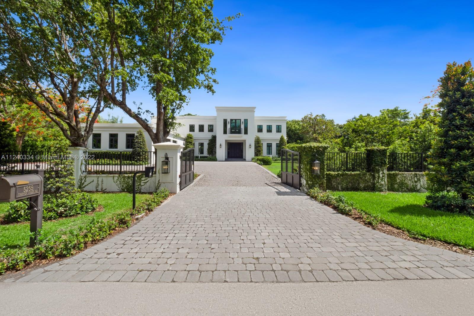 5255 Snapper Creek Road is located in the gated community of Snapper Creek Lakes. The home is move in ready and being offered furnished. Completed in 2020, radiating architectural sophistication and novelty, this highly sought-after corner lot features over 47,916 sf and is surrounded by lush landscaping and mature oaks providing privacy. Structurally designed as a solid bunker with poured concrete roof, cgi impact windows and doors while also being outfitted with elegant finishes and vaulted ceilings. The custom kitchen is outfitted with Wolf/Subzero appliances and quartz countertops. Grand master suite offers the upmost privacy with its own wing of the house, private balcony, and lavish spa bath. Secondary bedrooms are very generously sized, offer balconies, and en-suite bathrooms.