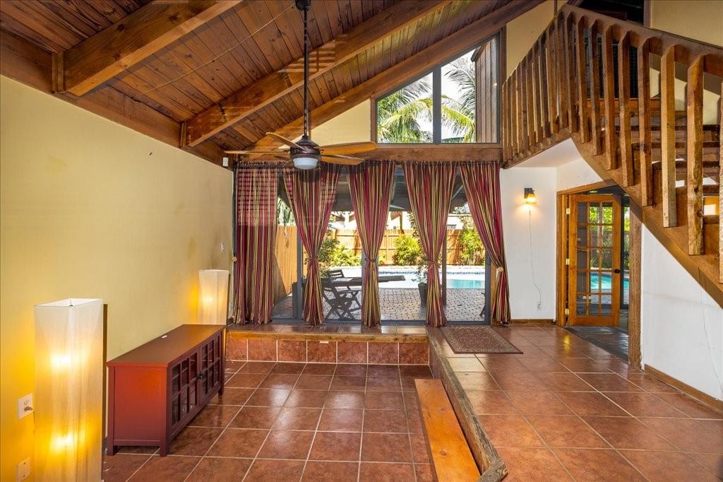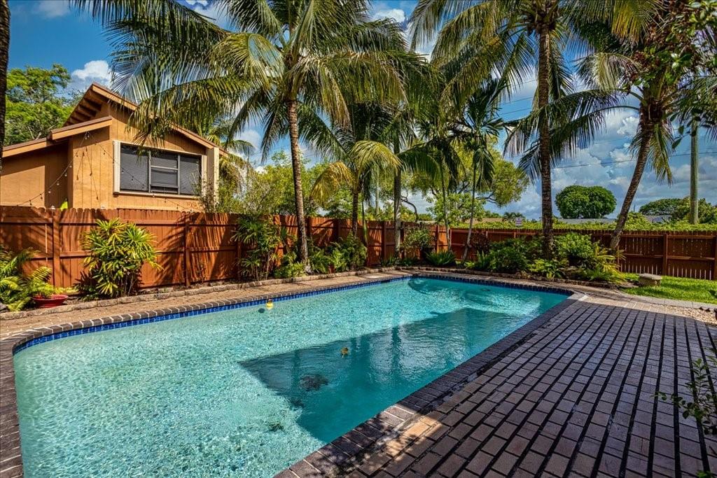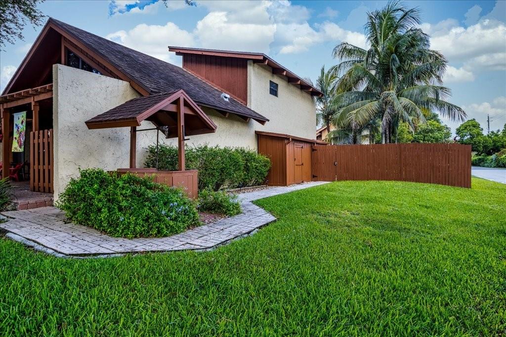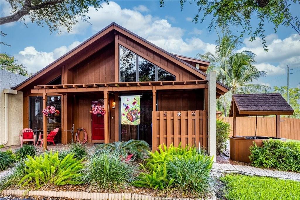 Rarely available, totally unique 3/2 with office/studio, and a loft. Vaulted wood ceilings that, feels like you are living in a ski chalet. Situated on a large beautifully landscaped corner lot. Living area opens up to a large crystal blue swimming pool, relax in the shade on the covered patio with your favorite drink. Over 20k in upgraded Cat 5 impact windows. Newer A/C and top of the line washer and dryer. Low, low HOA fee $78/mo. Has 2 sheds that are grandfathered in, and very private with fully fenced in backyard pool area. Has Community Pool, Tennis courts, dog parks (pet friendly community). Put your own stamp on this and make it your dream home.