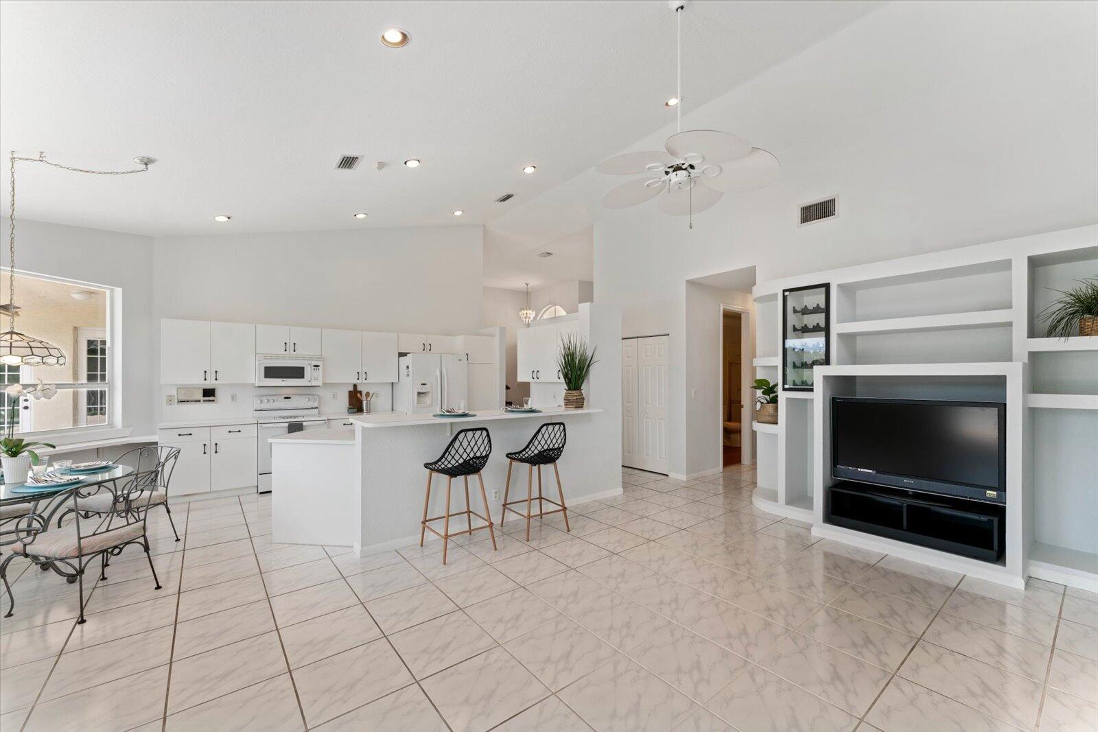 STUNNING VIEWS from this rarely available lakeside home in the gated community of Malibu Pointe in Silver Lakes. This extended 4 Bed/3 Bath Monaco floor plan has 2716 sq ft of living space with large formal dining, living room with French doors leading to the pavered patio, open concept living area includes kitchen and family room with counter seating and breakfast nook, the well-appointed Master bedroom has a huge walk-in closet and master ensuite, 3rd & 4th bedroom combined to include a bedroom with seating and a dedicated work area away from distractions from the rest of the home that can easily be converted back to separate rooms, high ceilings throughout add natural light and the large windows showcase the panoramic lake views, New Roof 2016, newer a/c & water heater,