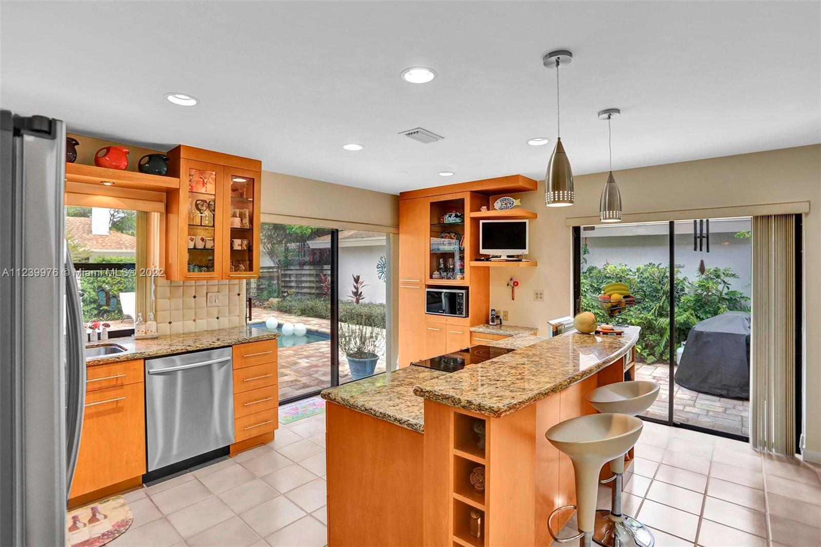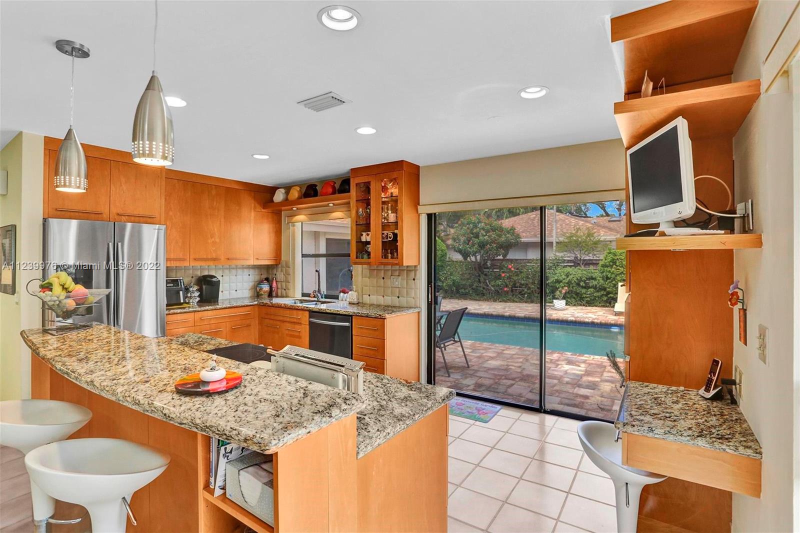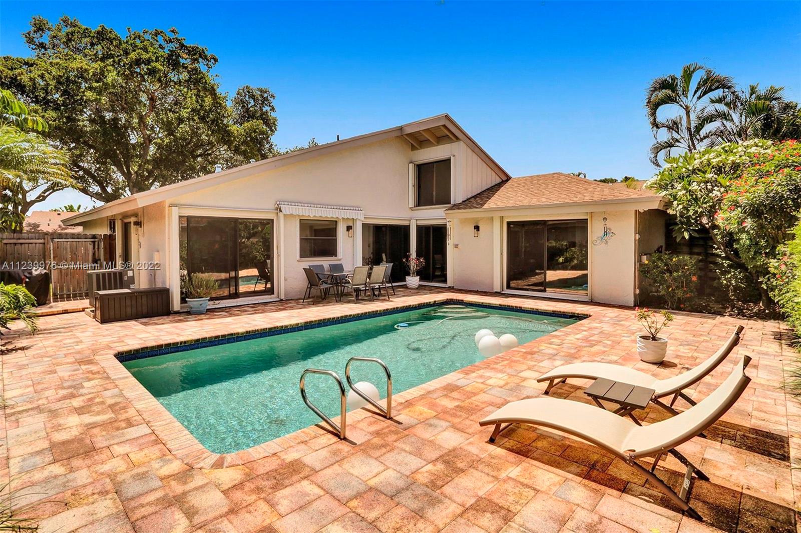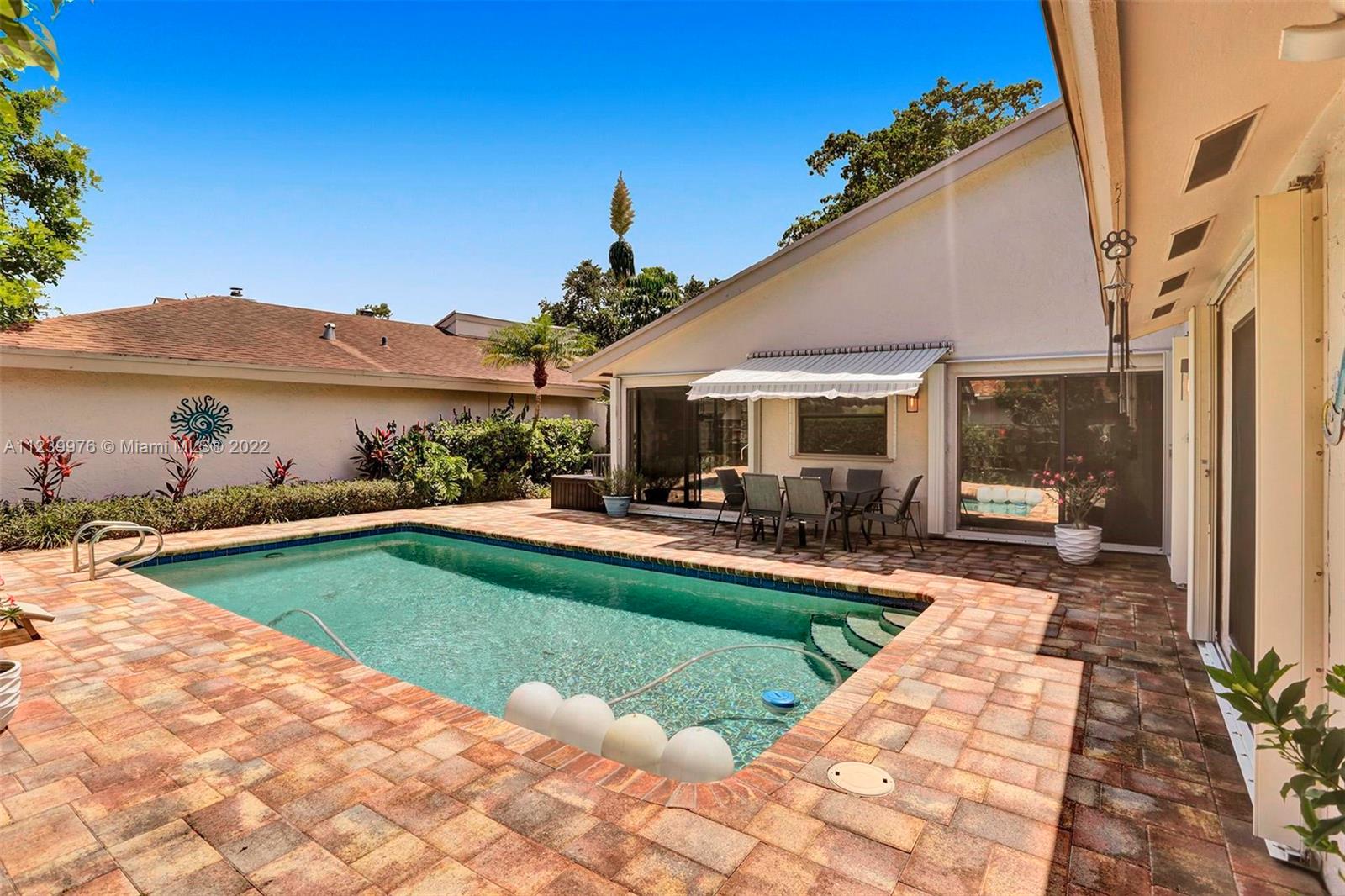Beautiful 3/2.5 on quiet tree lined street in the Greens of Emerald Hills, a gated community. Split floor plan, with vaulted ceilings, & huge skylight provide for a wonderful open feeling & bright house. Renovated open kitchen with island, granite counter tops, custom cabinetry, & SS appliances are perfect for entertaining. Lush & tropical backyard has beautiful brick pavers, retractable awning, & pool that are wonderful for family get togethers, & BBQ’s. Hurricane shutters, & brand-new hurricane front door. LONGEST DRIVE-WAY in community! 5 -minute walk to Publix, Panera Bread, Starbucks, & restaurants. Walking distance to synagogues. 10 min. drive to Hollywood Bch. Maint. fee includes HOMEOWNER’s INS., lawn service for the front of the house, Cable TV, etc. ***See BROKER REMARKS***