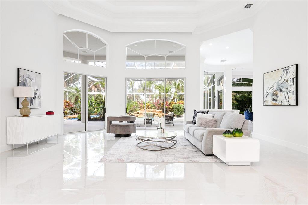 Stunning Tropical Paradise, Chic, New and Renovated, One story, 3 bdrm, 3 ba, plus office and 3 car garage situated on almost 3/4 acre. Light filled rooms, clean lines, soaring ceilings, casual and stylish inviting spaces blend seamlessly offering areas for intimate or larger-scale gatherings. Private views of lush landscaping spacious pool area, with serene waterfall. Light and bright with porcelain floors, quartz counter tops through-out, LED recessed lighting, cabana bath, over-sized laundry room and many more updates in this exceptional home. The outdoor areas offer stunning tranquil views, a secluded oasis surrounded by tropical landscaping, inviting pool and spa, perfect for relaxing or entertaining.