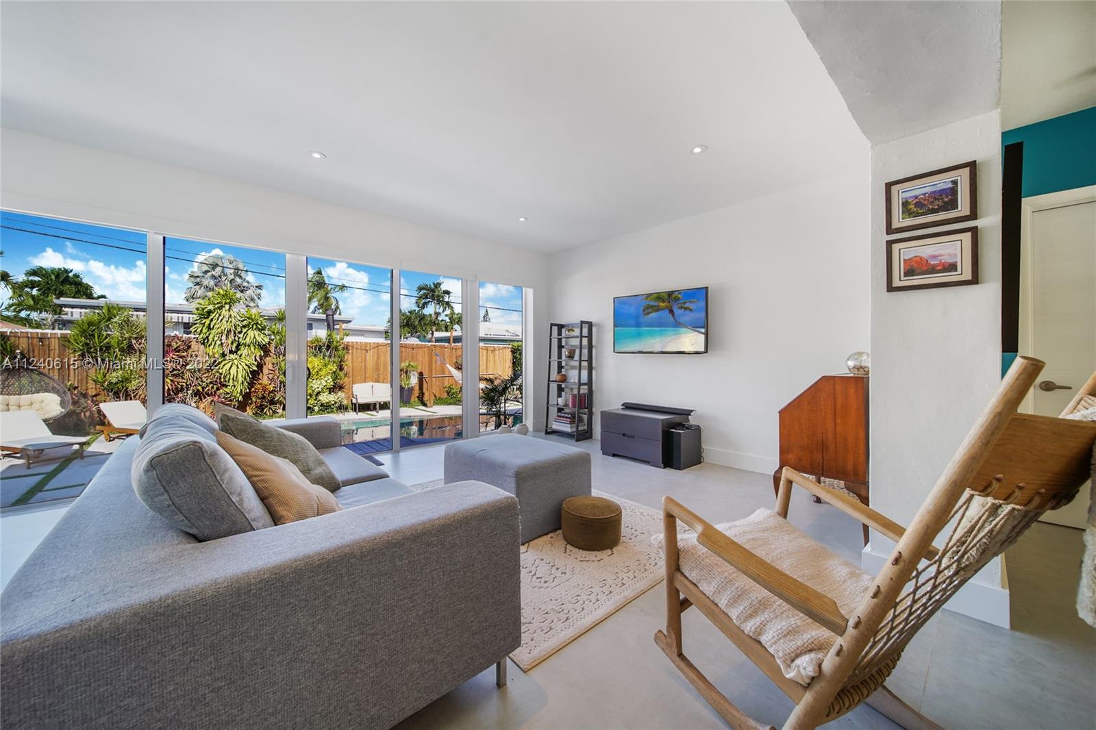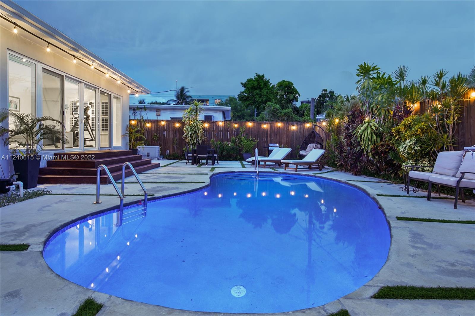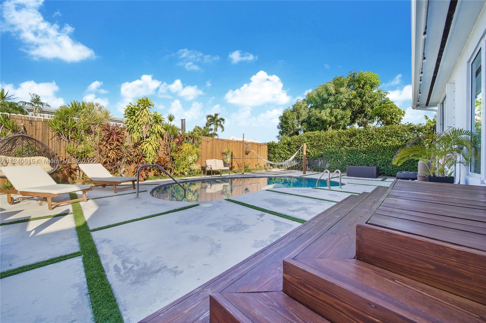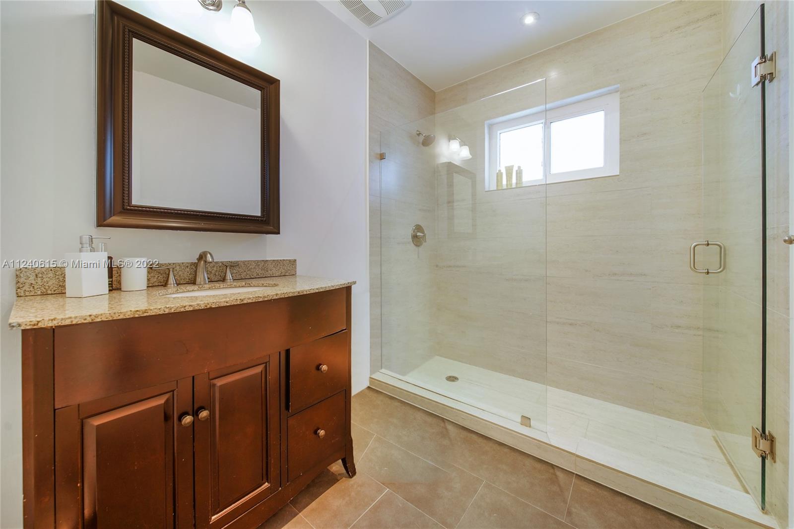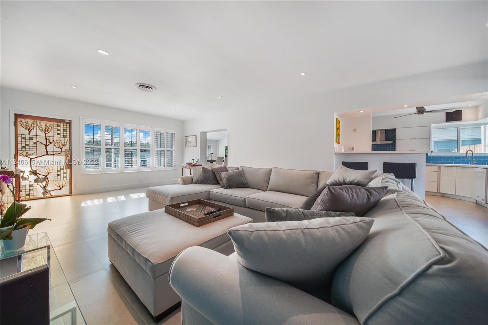 Beautifully remodeled pool home with lots of natural daylight, open-plan layout is spacious w/ plenty of different areas to relax. The home features a family room/den that overlooks pool area w/ sliding doors that open up into the backyard. Primary bedroom w/ en-suite bathroom is separate from the other two bedrooms making it the perfect layout. The two other bedrooms share second bathroom. Roof was replaced last year, & the AC, water heater, impact windows & sliding glass doors were also replaced recently. The kitchen & bathrooms were remodeled & feature a high-end luxury design w/ modern cabinets & appliances. The property has large floor tiles throughout (excluding the bedrooms) & recessed lighting. Driveway is circular & has sufficient space for 2 cars+. Home also has a gas generator.