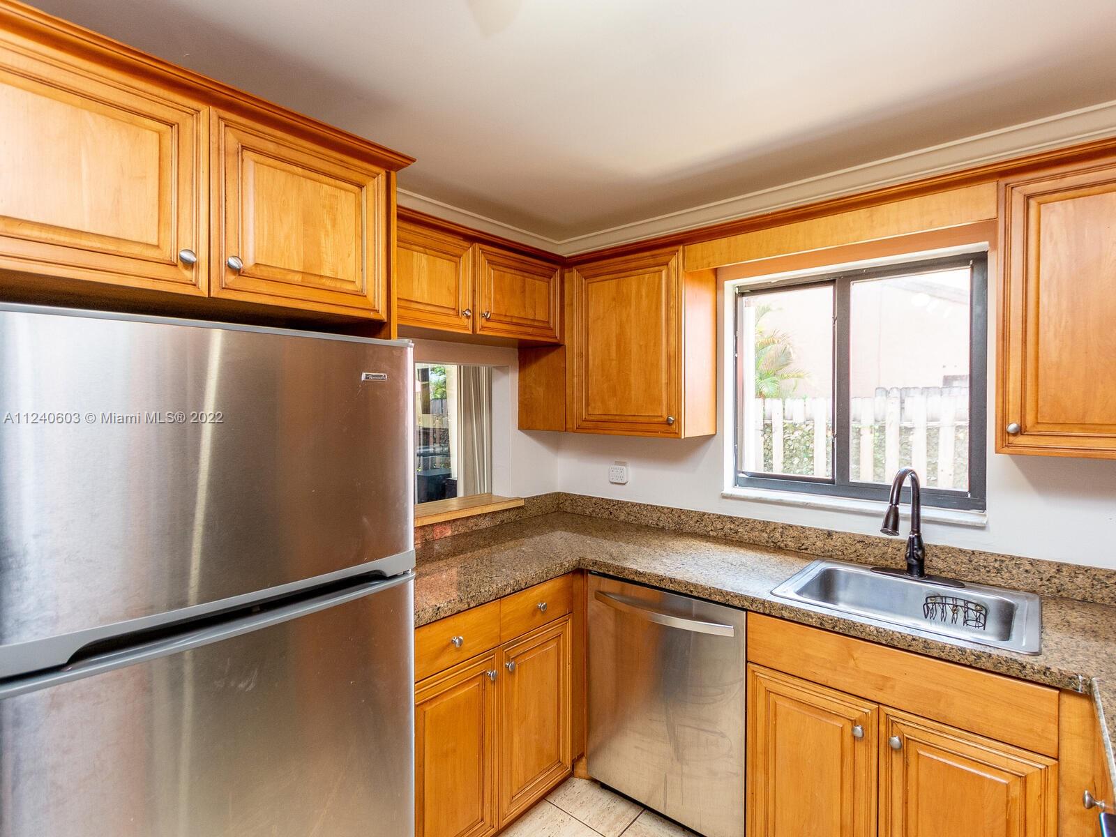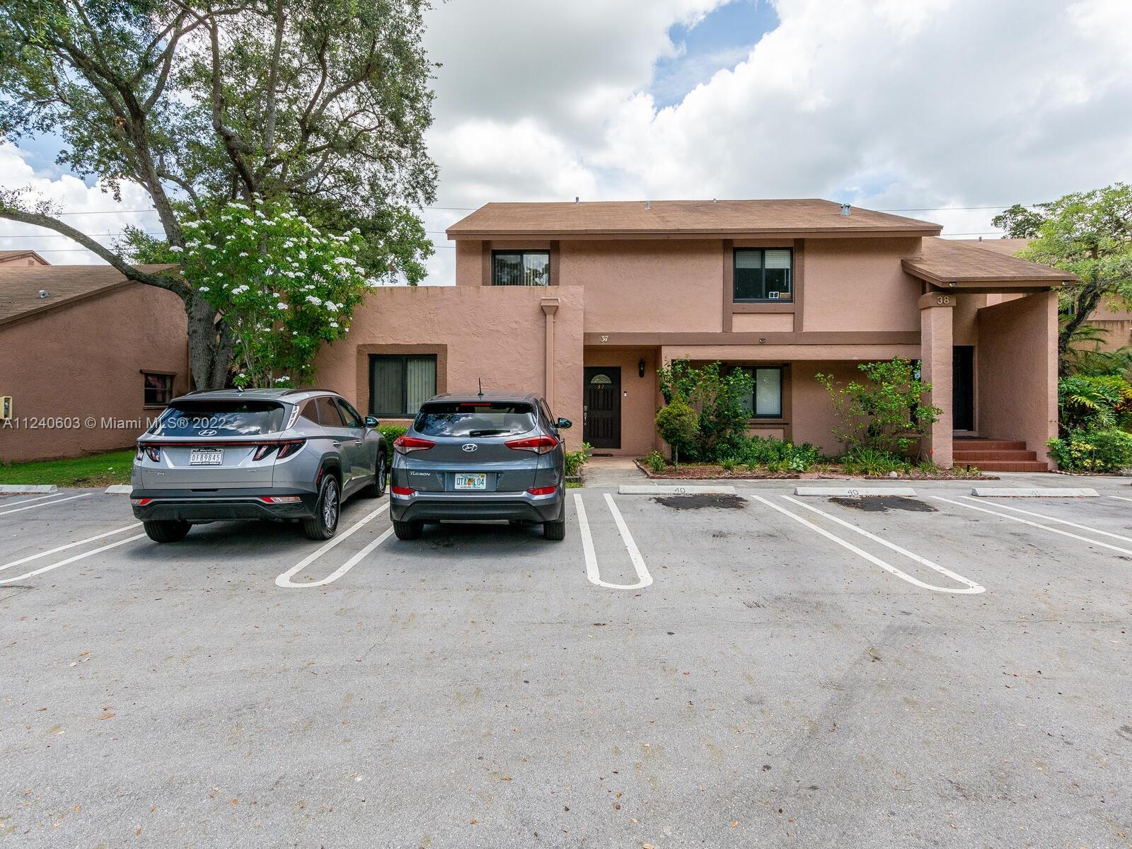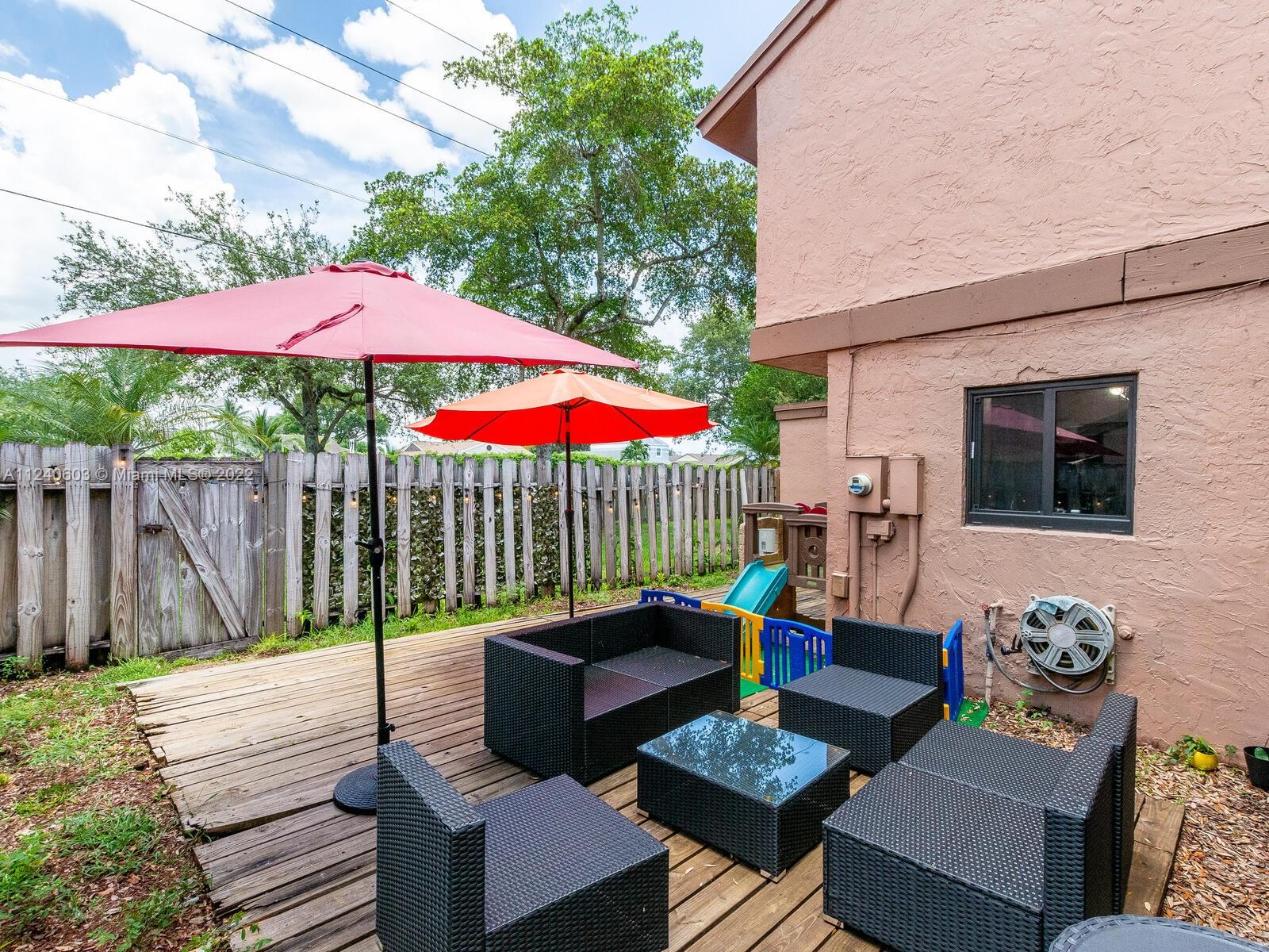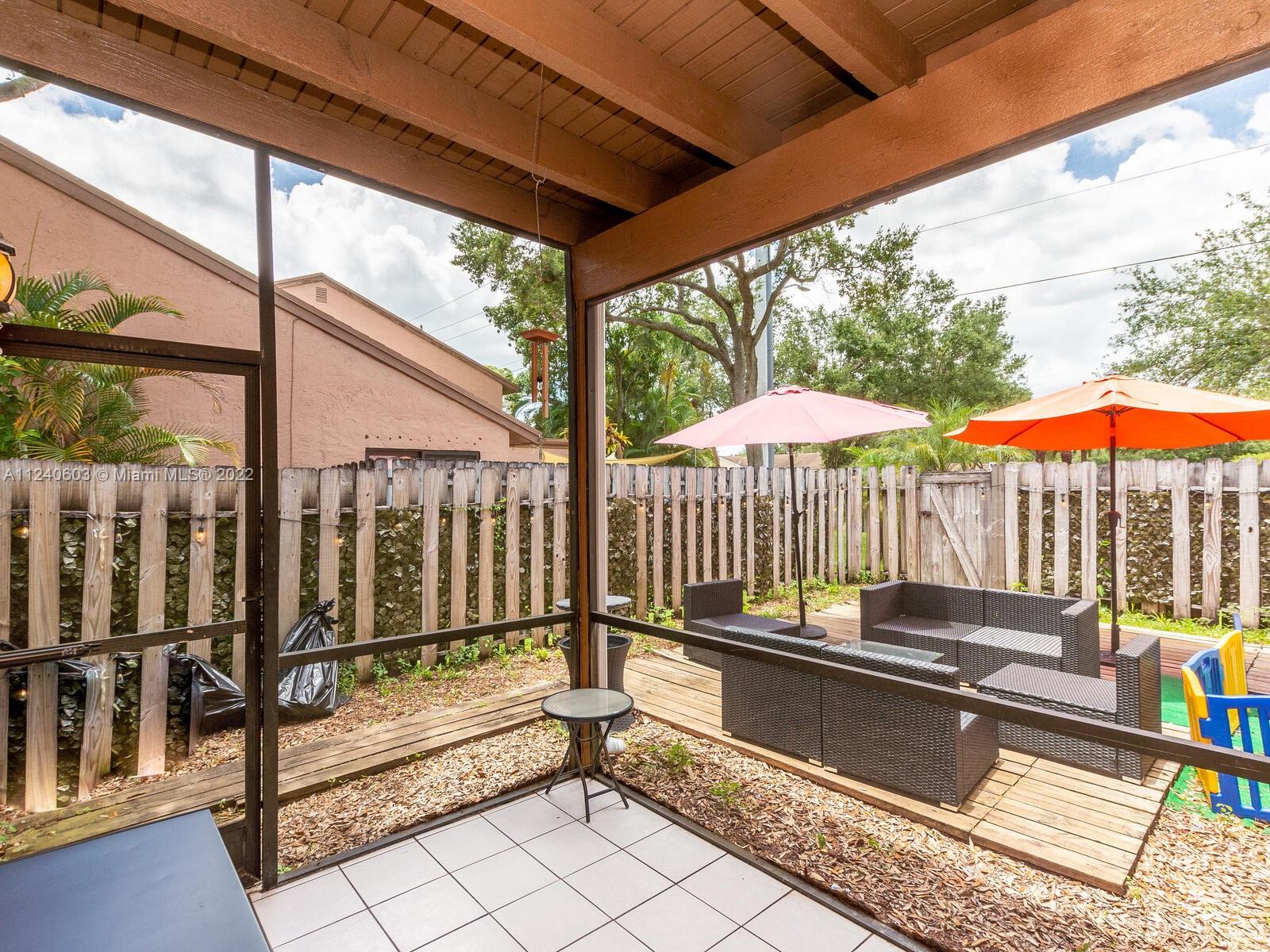 Corner unit with 3 bedrooms and 2 bathrooms with 1 bedroom and 1 full bathroom downstairs. The house has impact windows, new roof, wood floors downstairs and carpet in the bedrooms, granite countertops, stainless steel appliances. Big screened patio with wood deck and fenced backyard.