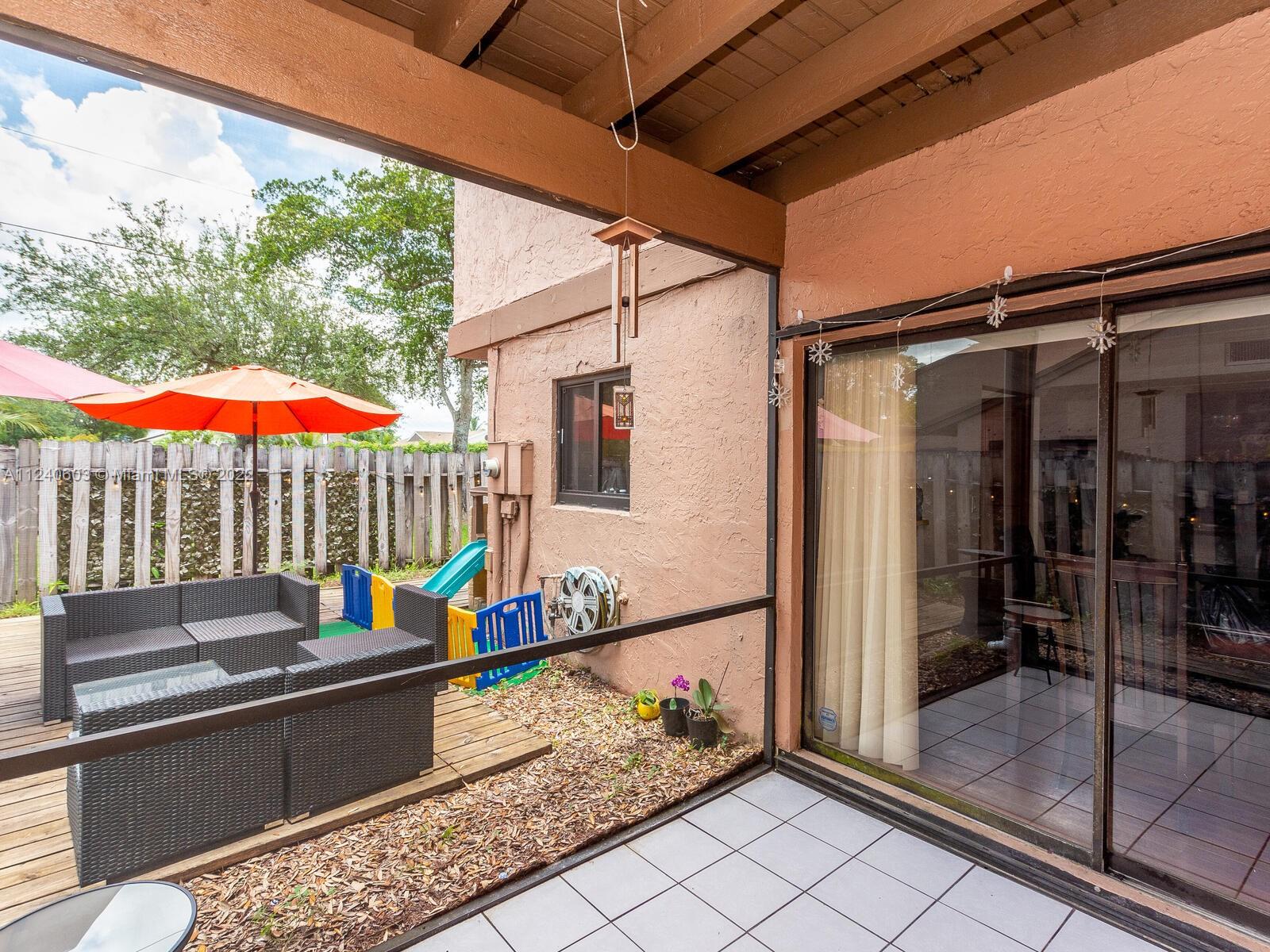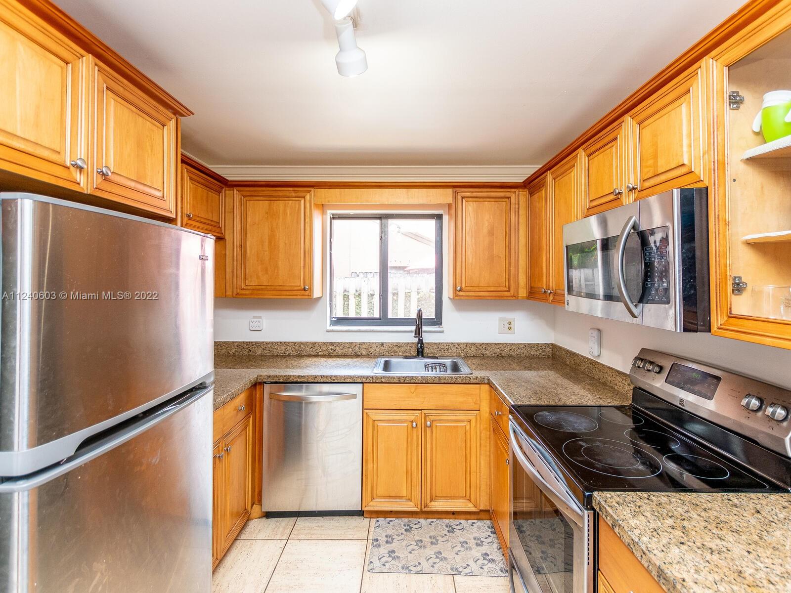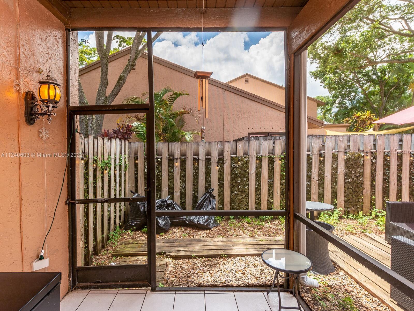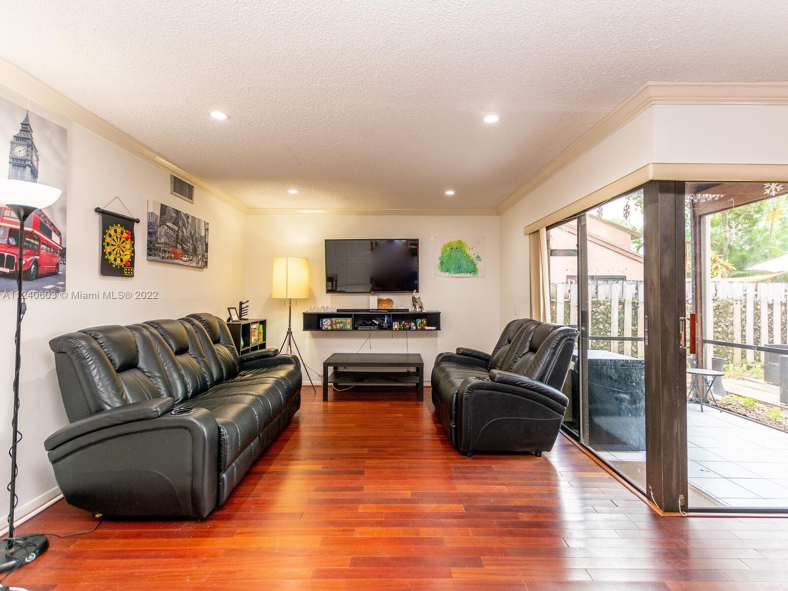 Corner unit with 3 bedrooms and 2 bathrooms with 1 bedroom and 1 full bathroom downstairs. The house has impact windows, new roof, wood floors downstairs and carpet in the bedrooms, granite countertops, stainless steel appliances. Big screened patio with wood deck and fenced backyard.