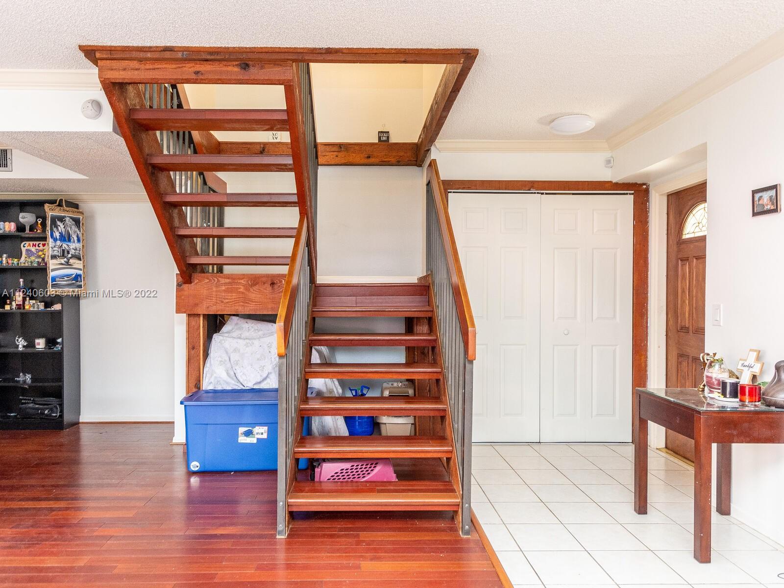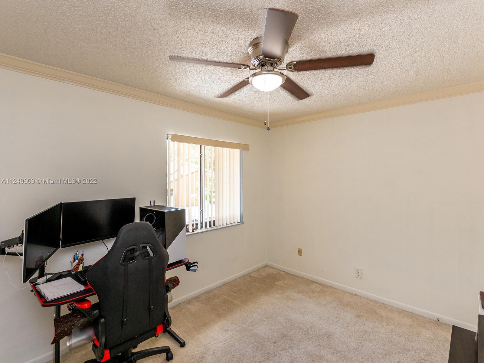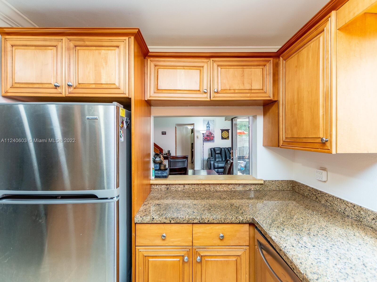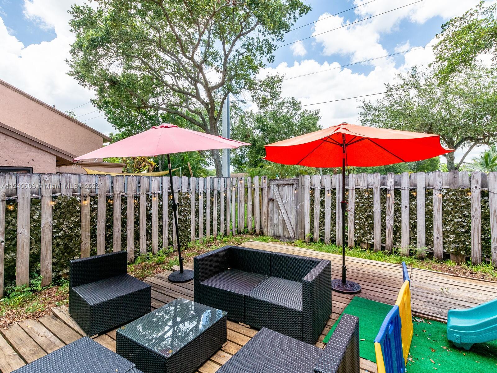 Corner unit with 3 bedrooms and 2 bathrooms with 1 bedroom and 1 full bathroom downstairs. The house has impact windows, new roof, wood floors downstairs and carpet in the bedrooms, granite countertops, stainless steel appliances. Big screened patio with wood deck and fenced backyard.