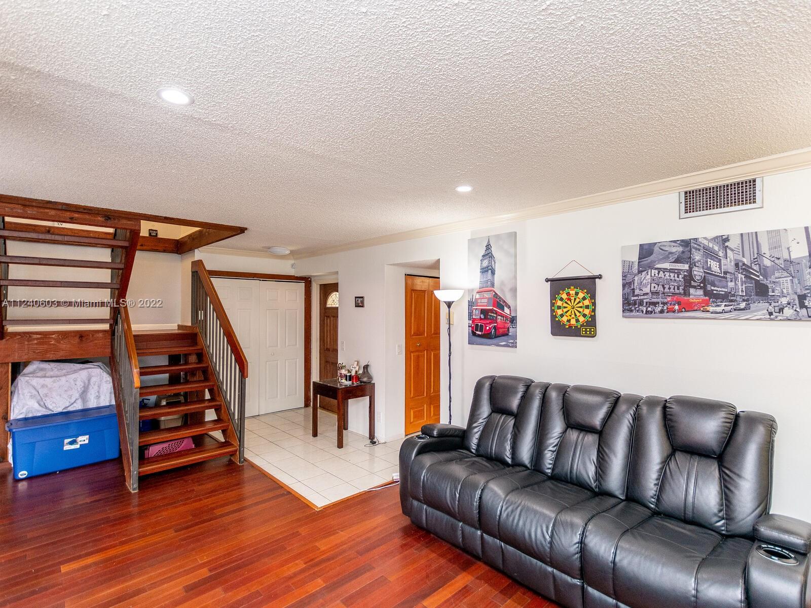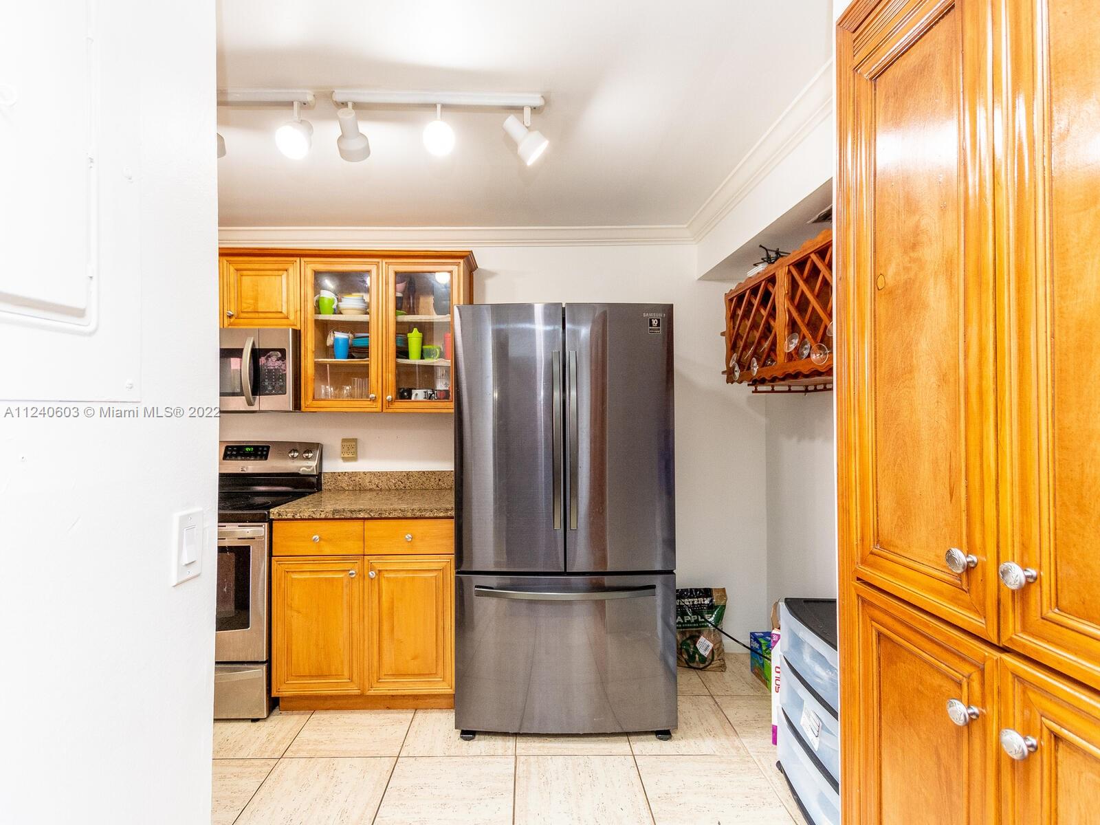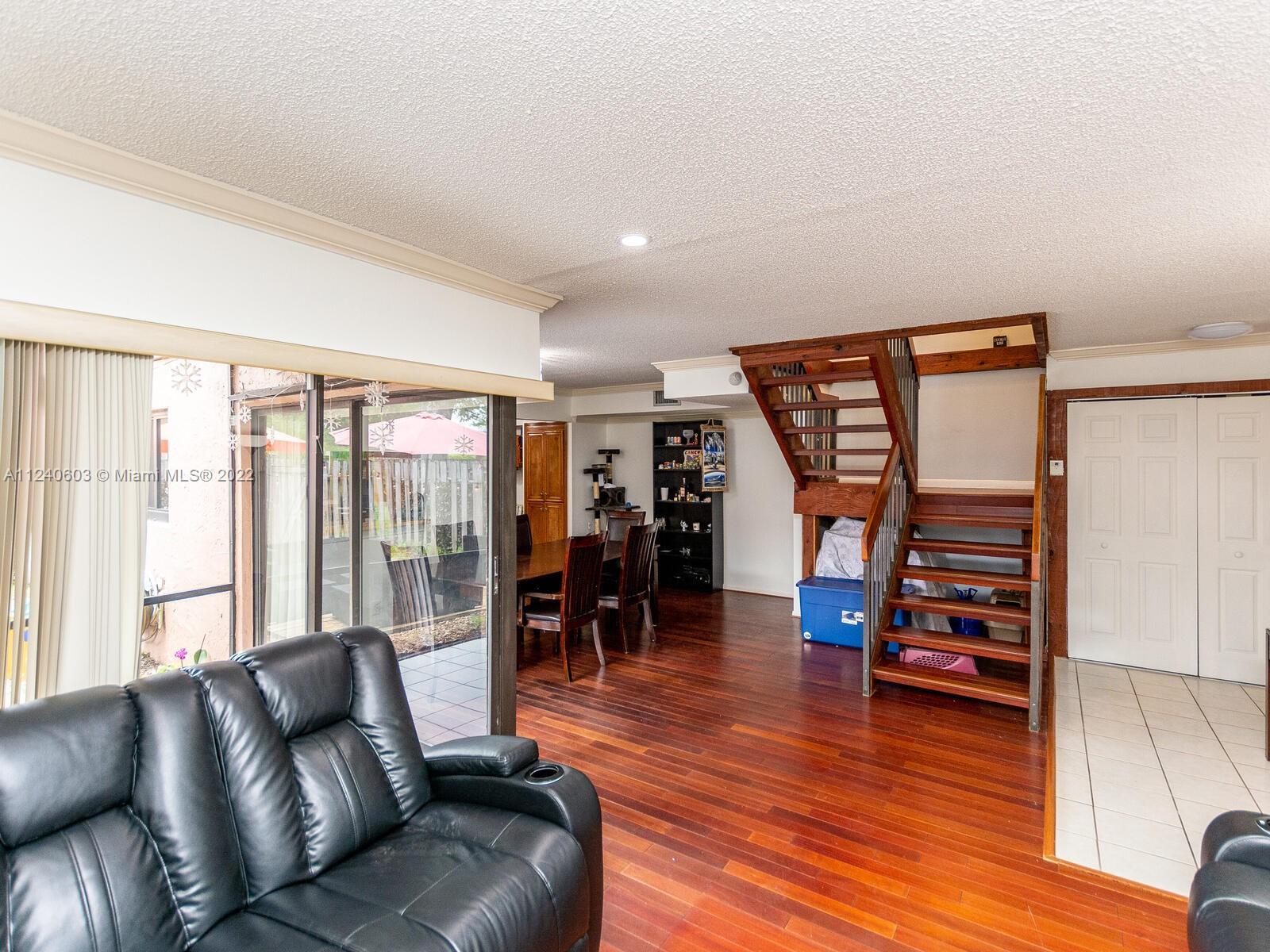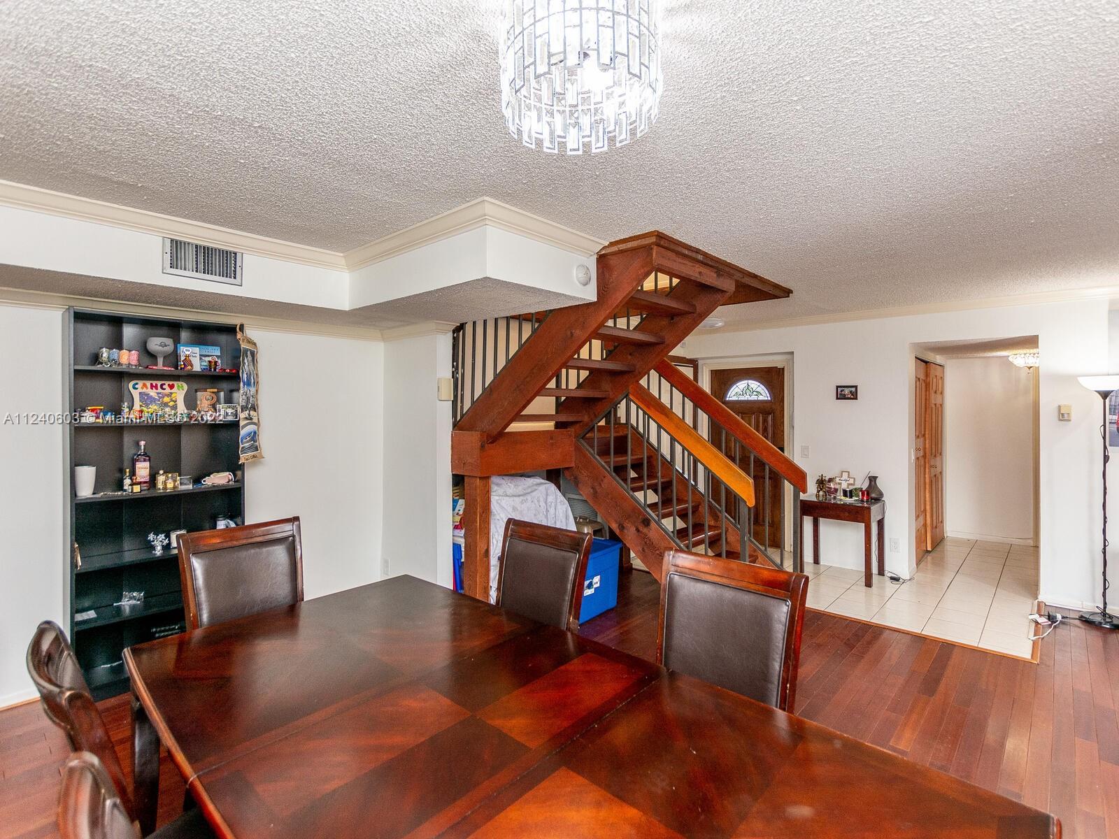 Corner unit with 3 bedrooms and 2 bathrooms with 1 bedroom and 1 full bathroom downstairs. The house has impact windows, new roof, wood floors downstairs and carpet in the bedrooms, granite countertops, stainless steel appliances. Big screened patio with wood deck and fenced backyard.