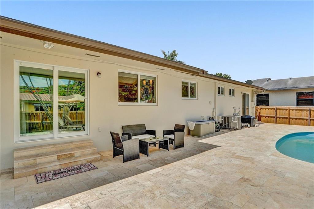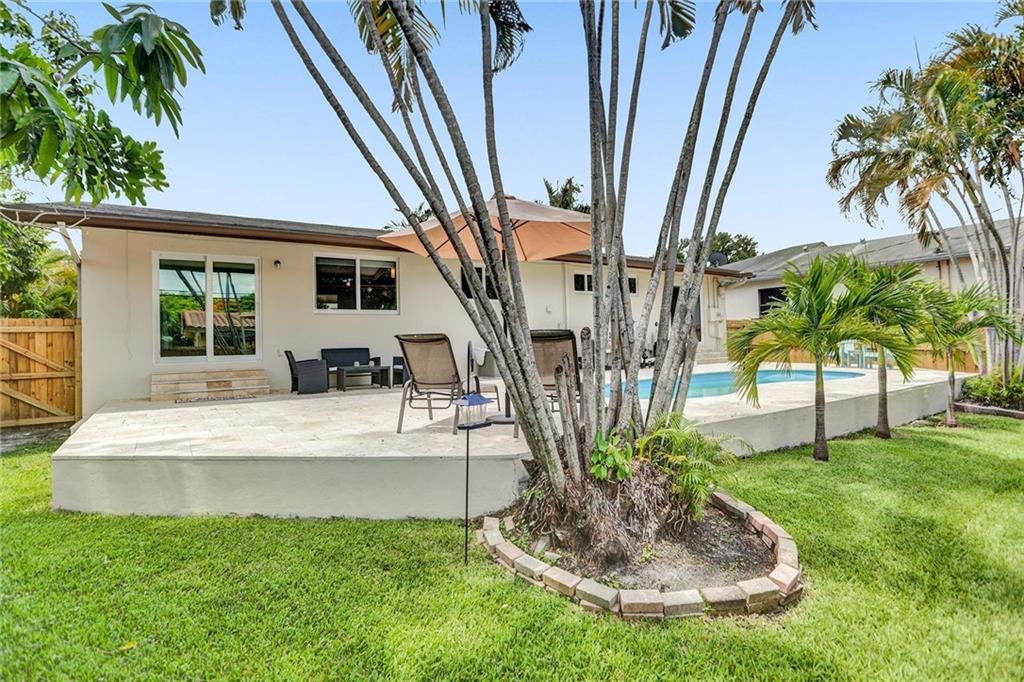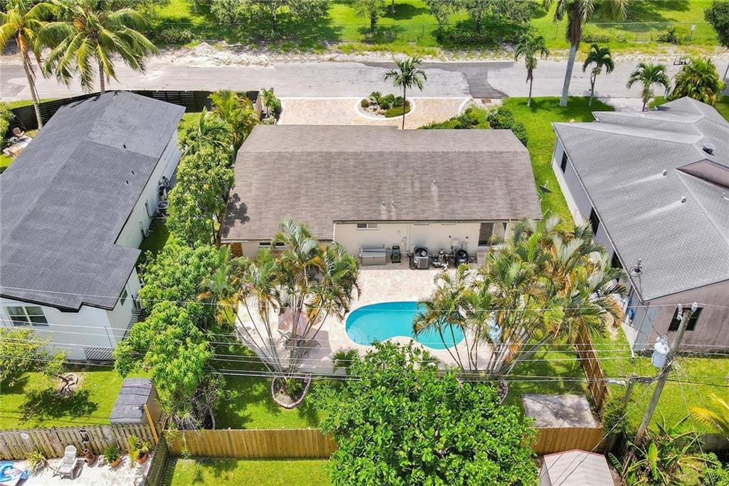 Exceptional location in Edgewood that offers quick access to and from Ft Lauderdale airport, I95, 595, downtown, Las Olas Blvd., and the beach. Located on a quiet cul-de-sac, dead end street. The home offers 1,378 SQ FT under air, 3 bedrooms, 2 baths, and a 1 car garage with storage shelves and cabinets. Parking for 5 additional cars in the driveway. No HOA. Bring your boat or RV. Views of Edgewood Passive Neighborhood Park out your front windows and a short walk to the park’s north entrance.You will love spending time in this backyard with a heated pool surrounded by a 700+ sq. ft. travertine patio. Concrete slab for a shed. Nest thermostat, Nest keyless front door lock and doorbell, and Nest motion activated security cameras with floodlights in front and back.