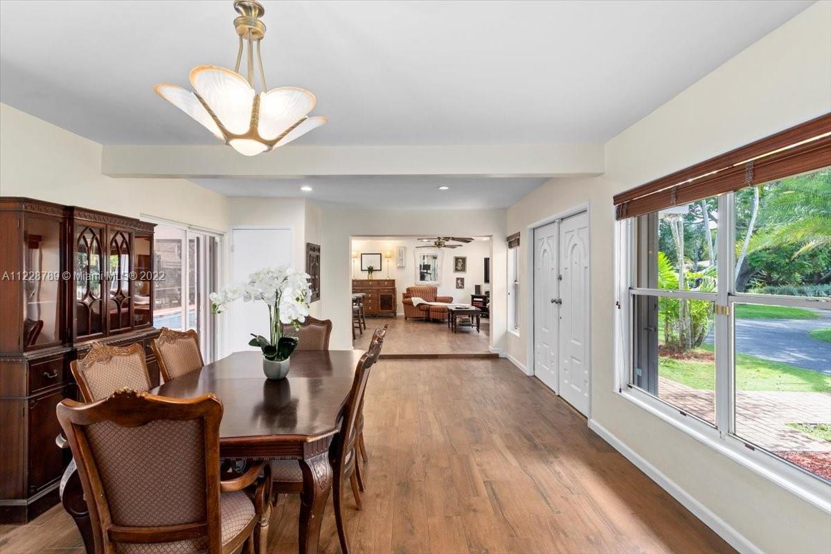 Picturesque Pinecrest updated family pool home on serene street. Spacious 3/2 + office open floor plan w/2521 adj SF. Perfect for gatherings w/plenty of room leading to lush green gardens, sparkling screened pool on 15,000 SF prime central Pinecrest land. Updated kitchen w/gas stove, spacious peninsula seating adjoining family room. 2012 updated baths & primary bdrm suite w/ impact glass & private office/gym/nursery. Porcelain & wood floors, all new PVC plumb, 2020 new tile roof. Full house Gener w/1k gal propane tank. 2013 AC + split unit. Super nice curb appeal w/cir drive, 2 car gar & laundry. Comb of impact glass & accordion shutters throughout. All work permitted. Central loc w/2 min drive to all Palmetto schools, church, synagogue, markets, Pinecrest parks & Community Center nearby.
