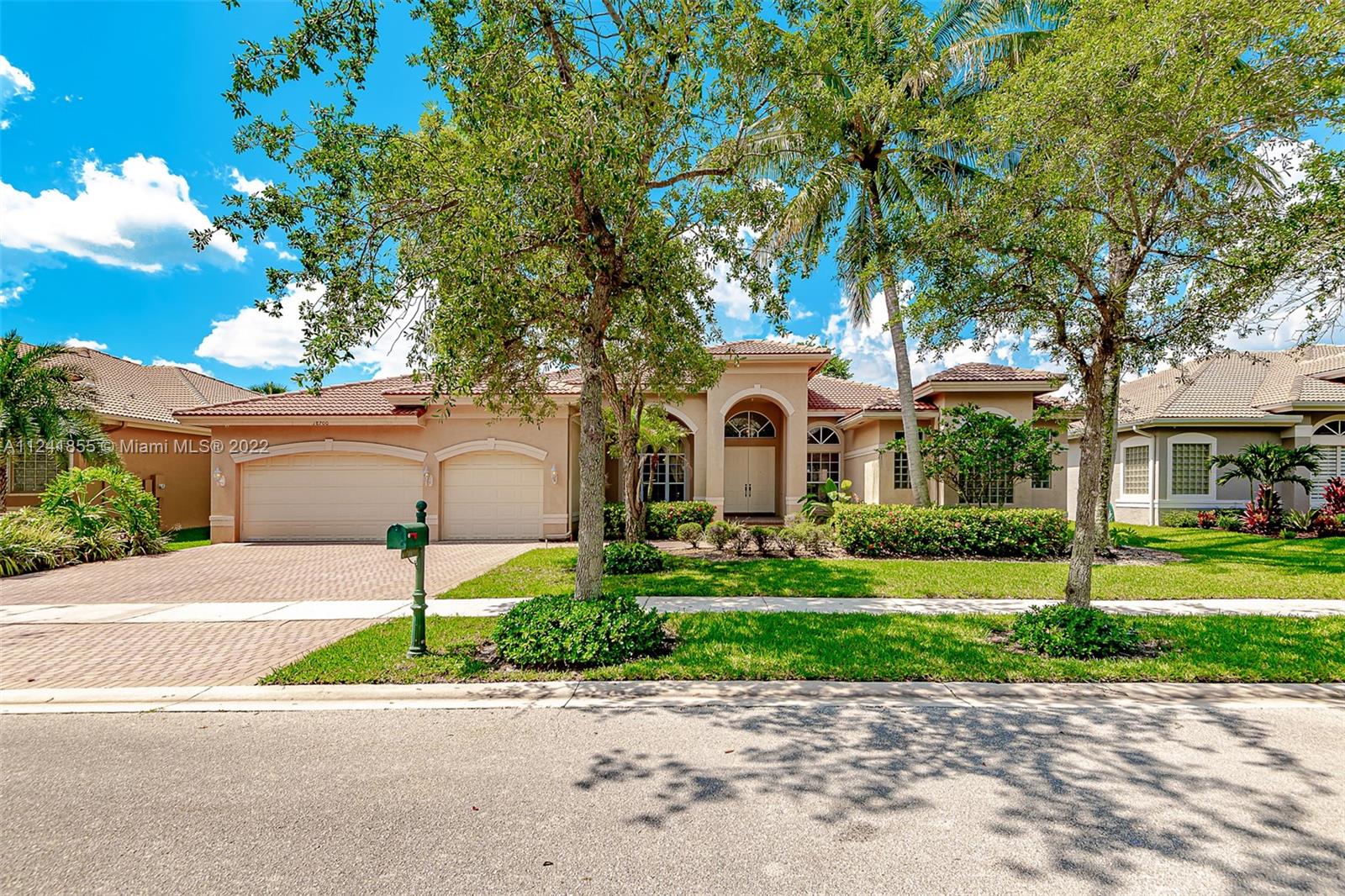 Beautiful one-story pool home in resort style gate community at Sunset lakes with 5 bedrooms, 3.5 baths, Den office and pool.