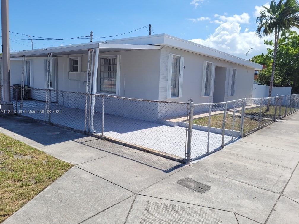 Location, Location in excellent neighborhood, Brimming with untapped potential, this charming West Hialeah corner lot-home features 2 bedrooms, 1 bathroom, a spacious living room, Storage, New roof, new kitchen with stainless steels appliances, ceramic tile floors, central A/C, ample parking, fenced for privacy, close proximity to South Beach, Downtown Miami, FTX Arena, Marlins Park, Miami International Airport, and more. Hurry up. this house won't last long!!!!