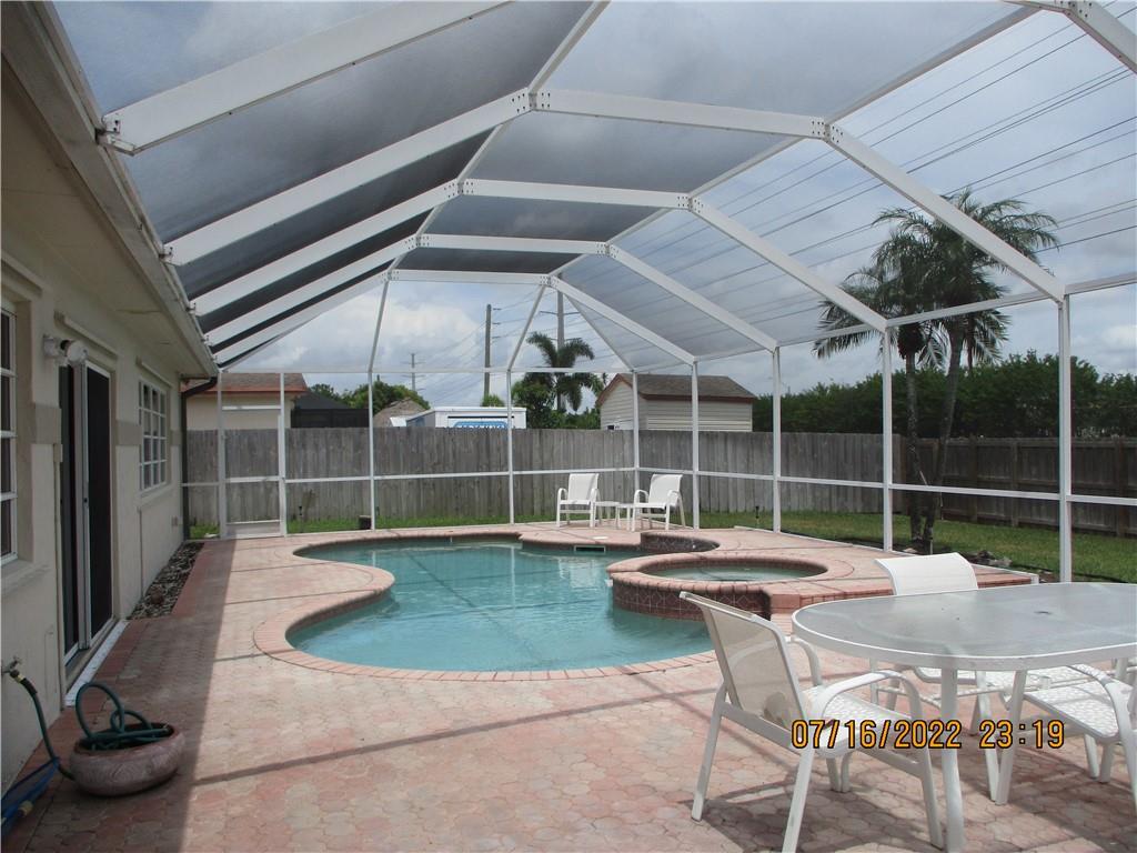 FANTASTIC 3 BEDROOM 2 BATH WITH POSSIBLE 4TH BEDROOM OR MOTHER-IN-LAW SUITE. GREAT POOL AREA WITH JACUZZI AND DOMED SCREEN ENCLOSURE ( JUST RE-SCREENED) TILE ROOF (2005) AND PAVER DRIVEWAY AND PATIO AREA. SECURITY SYSTEM AND CAMERAS.