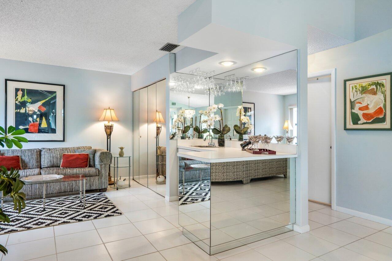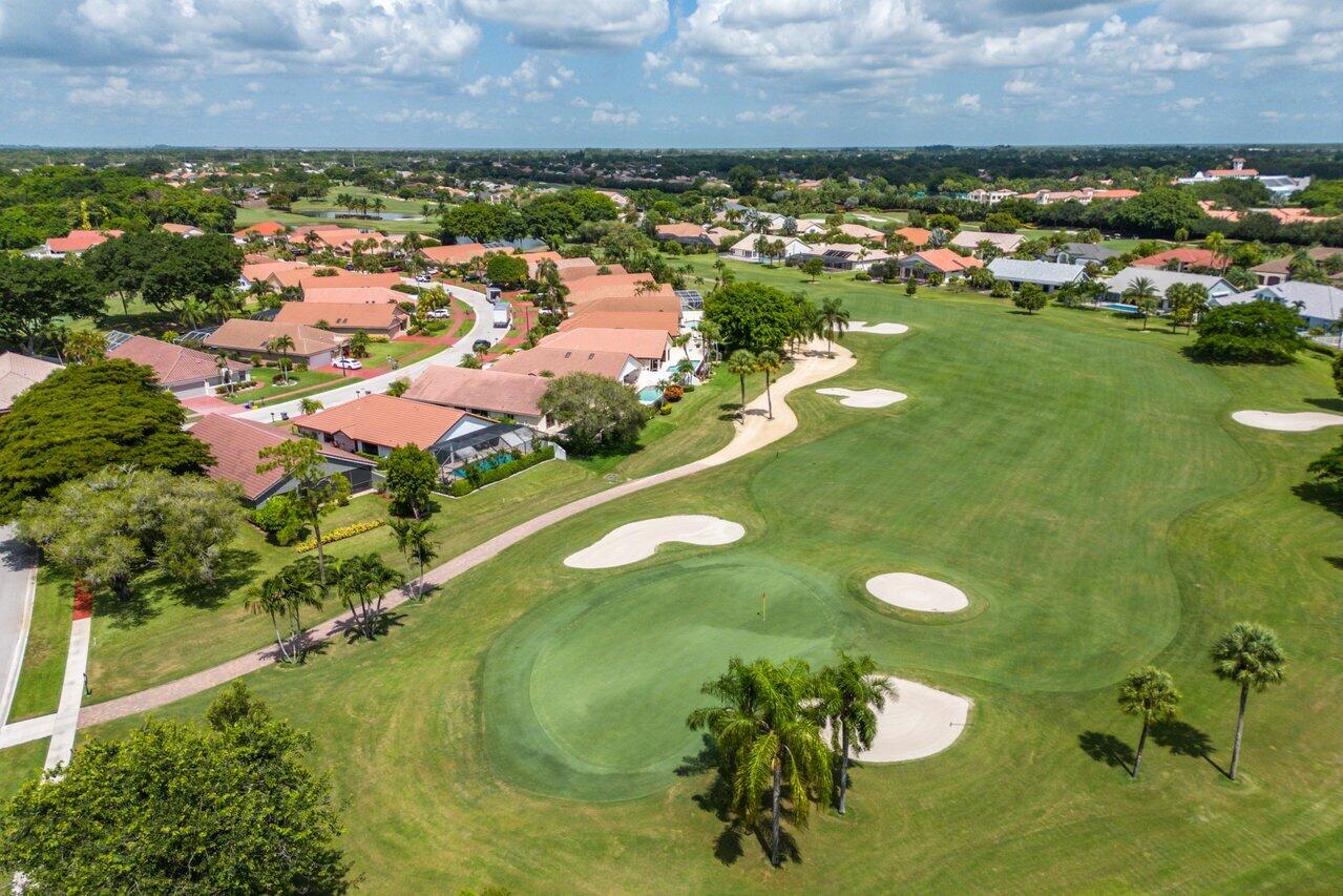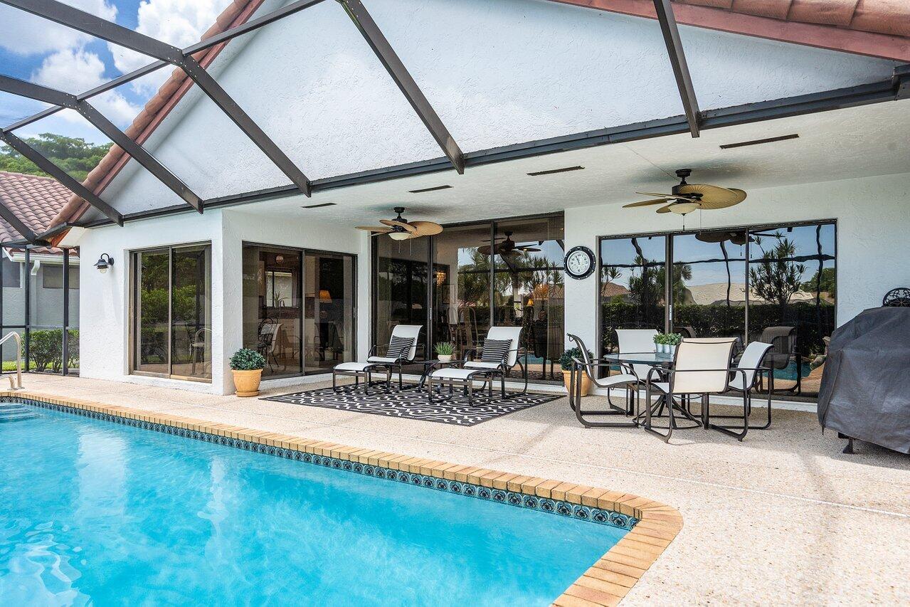 This wonderful home offers a great open floor plan, with a bright and very spacious living room, a dining room, eat-in kitchen, two bedrooms, two bathrooms, a den (that can EASILY BE CONVERTED IN AN OFFICE OR THIRD BEDROOM), two car garage, and a completely renovated kitchen with granite countertops and stainless-steel appliances. All the windows are equipped with 'Madico Safety and Security Tinted Window Film', which helps the house from UV and to stay cooler, and offers a high level of protection against natural disaster. In house security system connect to community security. You will also enjoy the indoor/outdoor lifestyle that this house offers, with an all screened-in wonderful pool and patio area. The Country Club has been going through an incredible multi-million dollars renovation