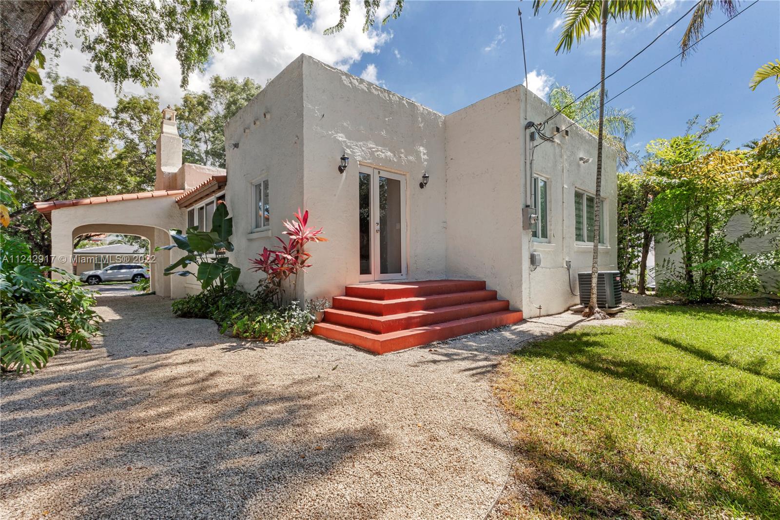 Renovated Old Spanish offering vintage charm and character along with every modern convenience! Front porch with sitting area. Living room with original red brick fireplace. Split bedroom floorpan with 2 bedrooms / 2 bathrooms and den/sunroom. Newer kitchen with ample storage and bathrooms. Wood floors throughout. Hurricane impact windows offer abundant natural light and views of the gardens. 1 Car Carport. Situated on a 7,522 sf lot on a quiet tree-lined street and only 1 block from the Granada Golf Course. Short distance to the Coral Gables Country Club, Downtown Gables, Miracle Mile, Venetian Pool, Salvador Park, Tennis & everything the City Beautiful has to offer!