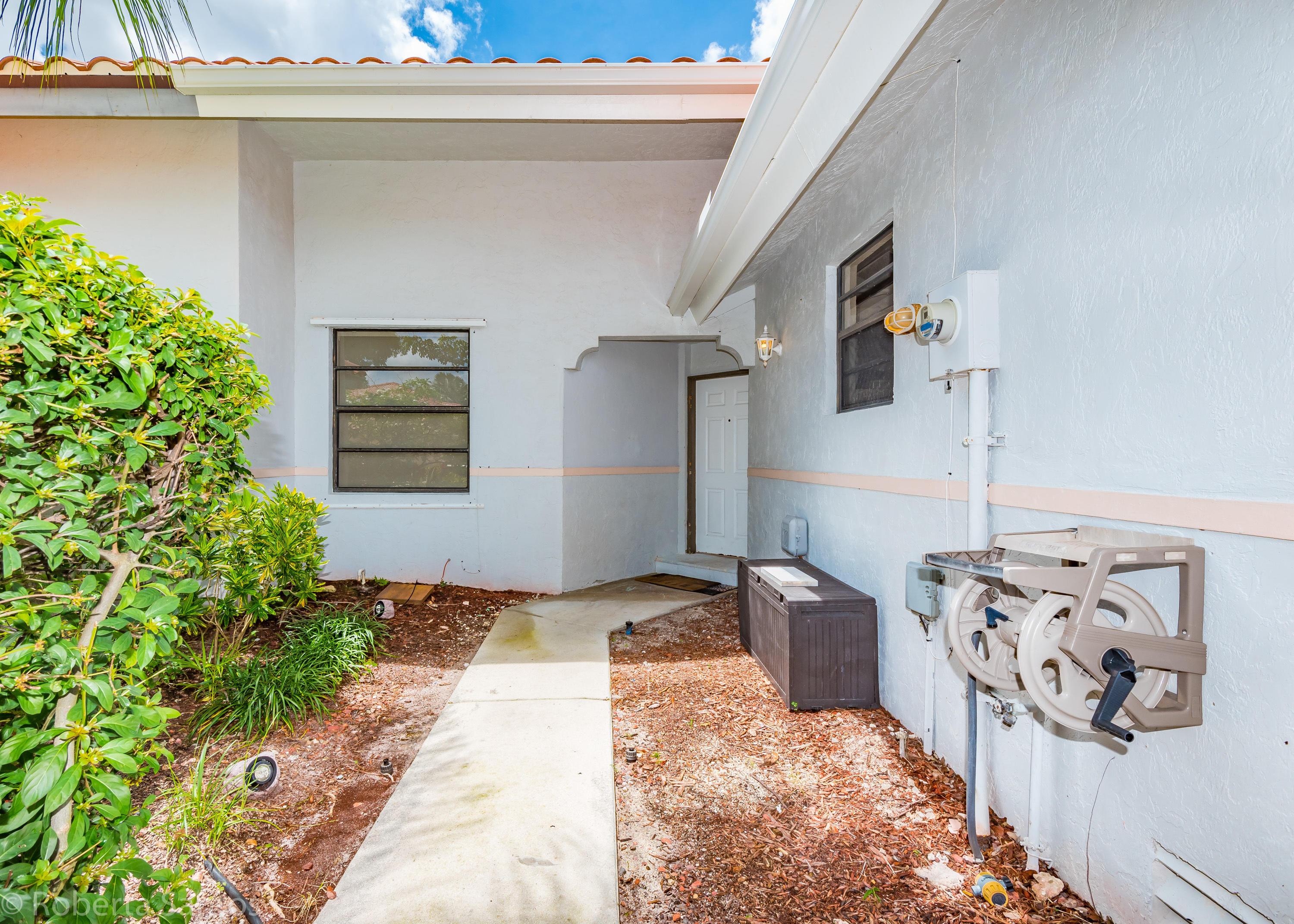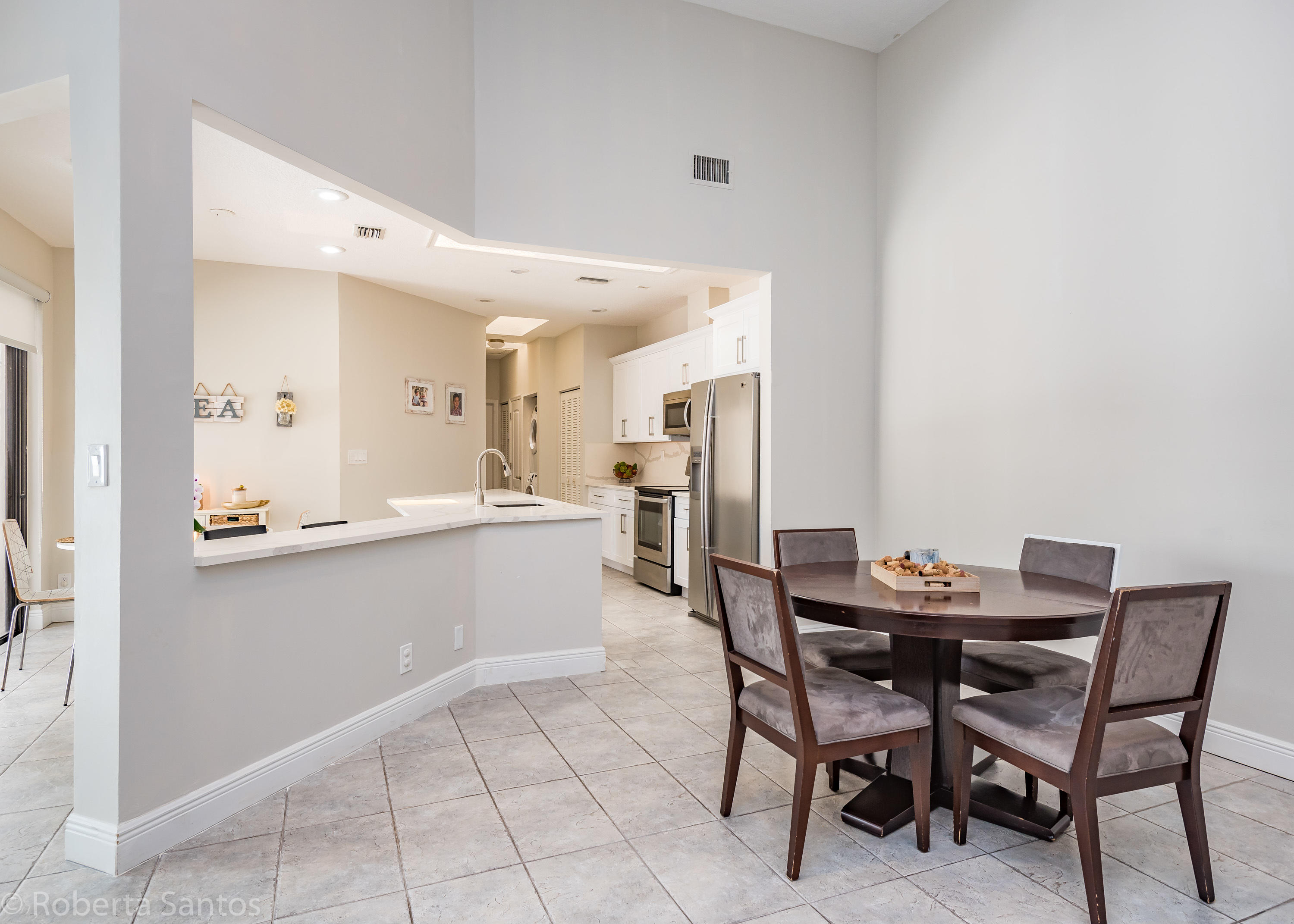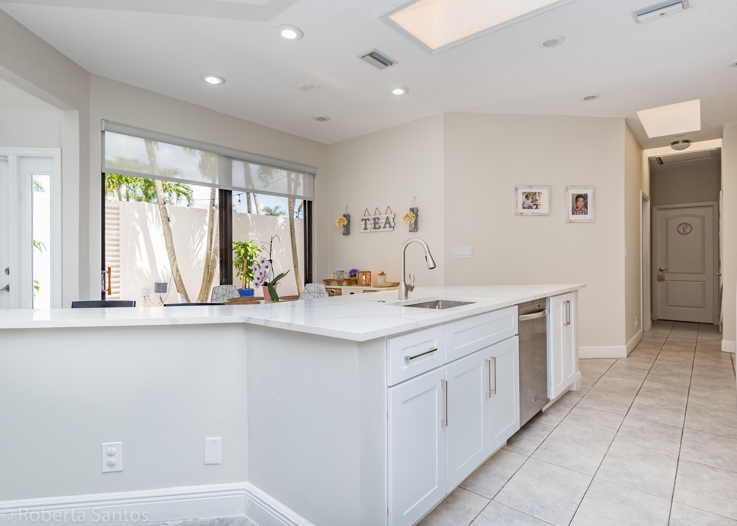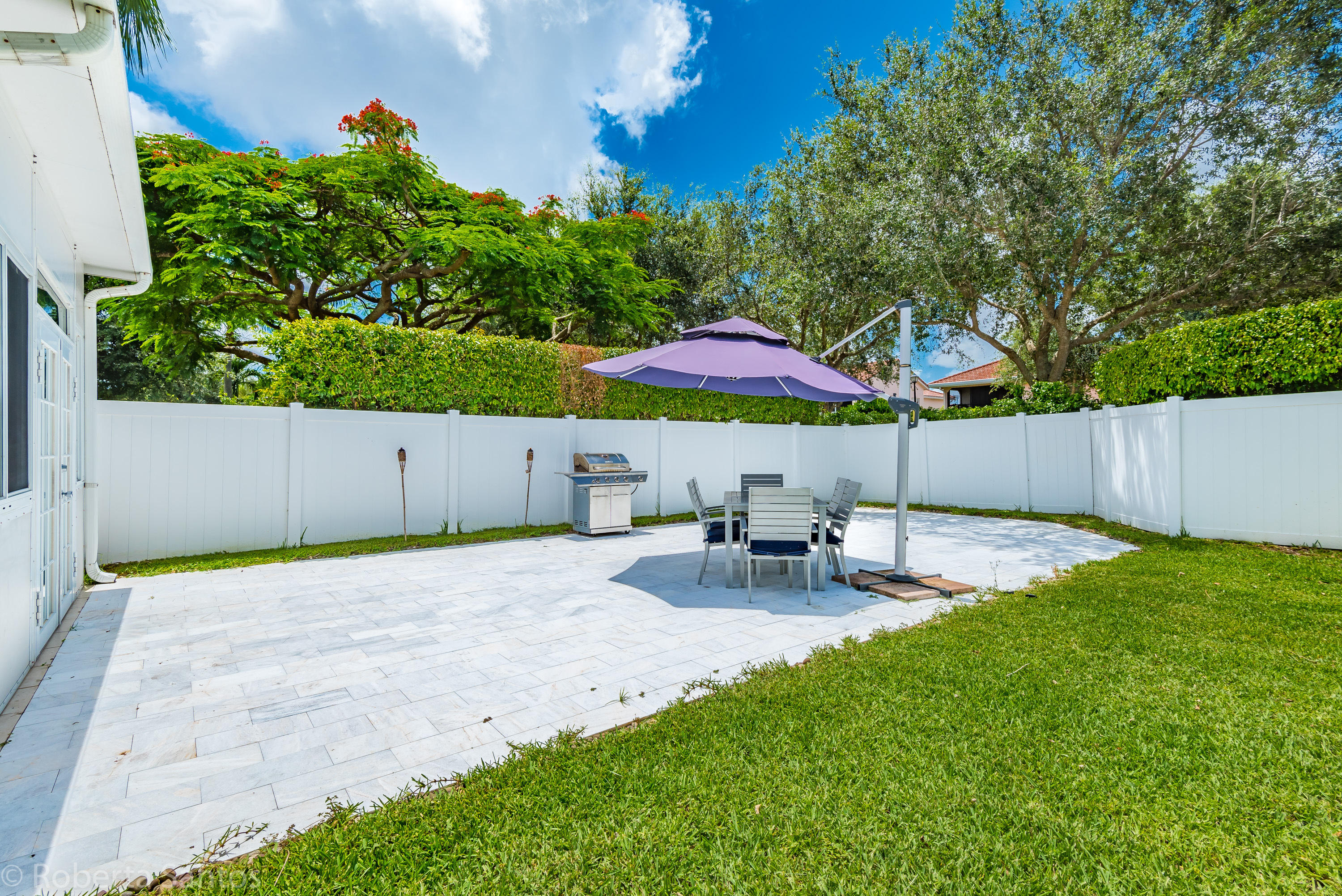 ABSOLUTELY GORGEOUS! Enter this fully renovated 3 bedroom, 2.1 bath villa! Open the front door to a tropical paradise! Professionally paved with marble & landscaped 19 x 13 courtyard with timer for night lighting. Upon entering through the double custom glass front doors this light and bright spacious home will make you feel welcome, featuring a brand new kitchen, matching quartz counters and backsplash, vaulted ceilings, neutral tile throughout the living areas, 2 car garage, and a BONUS 18x18 air conditioned Florida room, oversize corner lot with room for a pool in the backyard. Villa San Remo is an all-age community with a resort style clubhouse, pool, gym, tennis, basketball & playground located in an A-rated school district. Manned gated security.