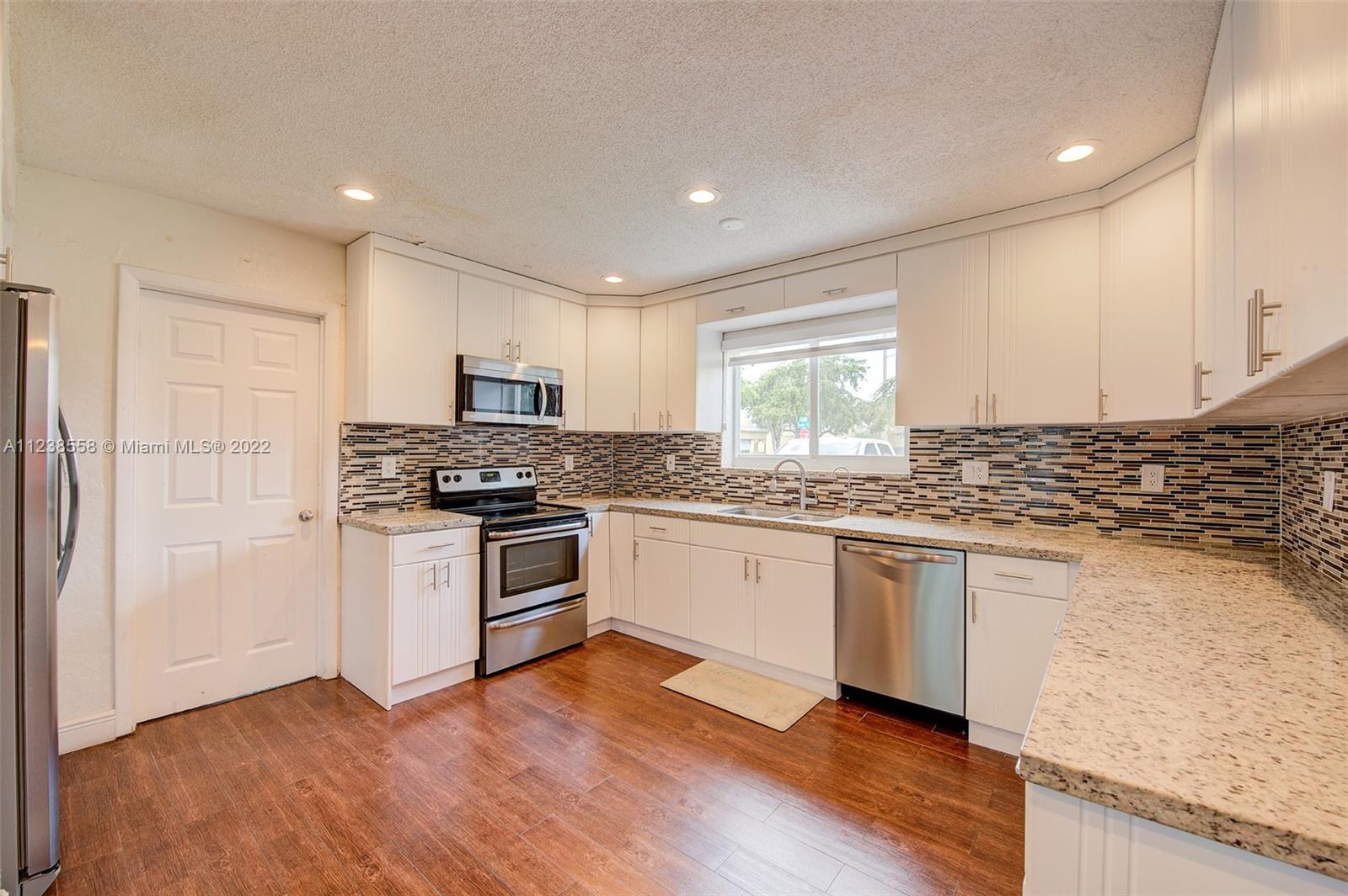 Spectacular remodeled 3/2 home with a bonus room, new from the bottom up, sitting on a 9,000+ sqft oversized corner lot. Newer roof (replaced in 2012), new kitchen, bathrooms, wood floors, and doors throughout the home. Freshly painted inside & out. Kitchen features new custom cabinetry with granite counter-tops, and brand new S/S appliances. Tons of storage space, 2 sheds in the backyard, along with a beautiful large pool. New landscaping in the front and backyard. Hurry, this home won't last long!