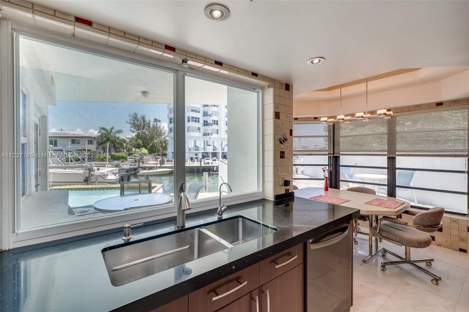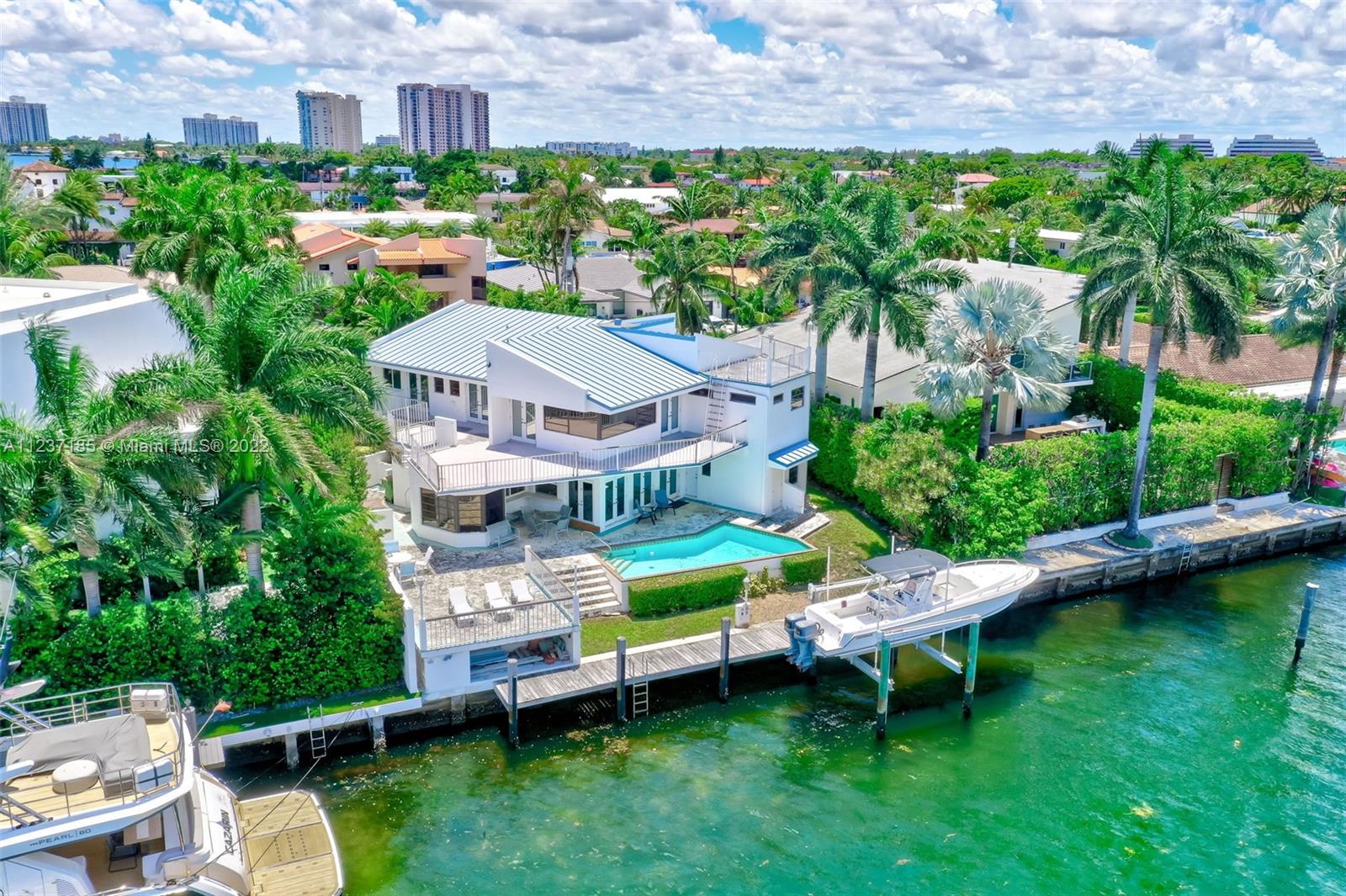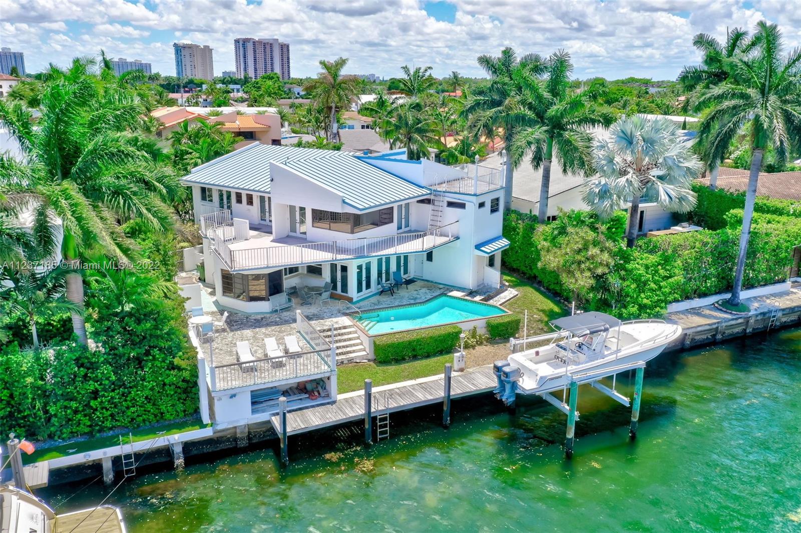 Canal front home located in the 24 hour guard-gated community of Sans Souci Estates. This distinctive residence has 4 large bedrooms, 3 baths, family room with access to the waterfront pool, office / den, spacious eat-in kitchen with cooking island, giant master suite with walk-in closet, formal living and dining rooms, and 2 car garage. Outside, you are just one house from the bay with wide water views, wrap-around balcony, pool, dock, boat lift, and direct ocean access just minutes away with no fixed bridges. While the neighborhood is peaceful, secluded, and secure - Miami Beach, Bal Harbor, Aventura, Wynwood, Design District, downtown Miami, shopping, and restaurants are all close by. This is the perfect home for South Florida living.