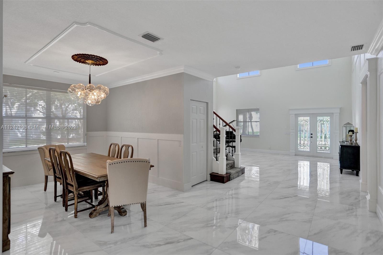 HIGHLY RENOVATED FROM TOP TO BOTTOM. MODERN WHITE KITCHEN W/ BRAND NEW 2021 STAINLESS STEEL APPLIANCES, QUARTZ COUNTERTOPS, AND DECORATORS BACKSPLASH. 24X24 WHITE PORCELAIN FLOORING IN LIVING AREAS. DOUBLE FRENCH DOORS LEAD TO A PRIVATE YARD, FULLY FENCED W/ PVC PRIVACY WHITE FENCE AND SPACIOUS PATIO. FULL BED AND BATH FIRST LEVEL. ALL BATHS RENOVATED IN A CONTEMPORARY STYLE. OVERSIZED OWNER'S SUITE W/ SITTING AREA AND LUXURIOUS BATH, VESSEL TUB, AND SHOWER. WOOD FLOORS IN ALL BEDROOMS. FRESHLY PAINTED INTERIOR. GRAND TWO-STORY LIVING ROOM, EXTENSIVE CROWN MOLDINGS, WAINSCOTING, AND PLANTATION SHUTTERS. THREE-CAR GARAGE W/ EPOXY FLOOR. FRESHLY PAINTED EXTERIOR. HURRICANE PROTECTION. 2 BRAND NEW A/C 2022. WALK TO THE COMMUNITY POOL AND SCHOOLS. GATED COMMUNITY.